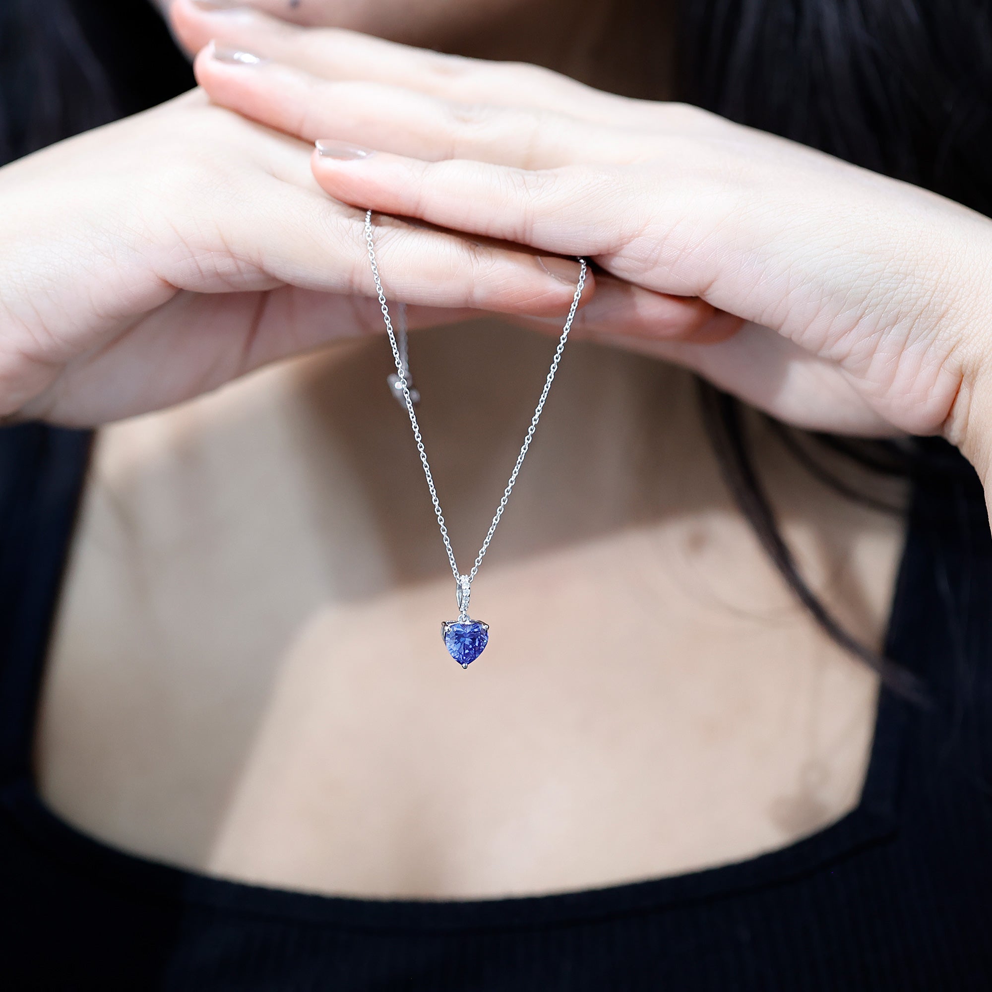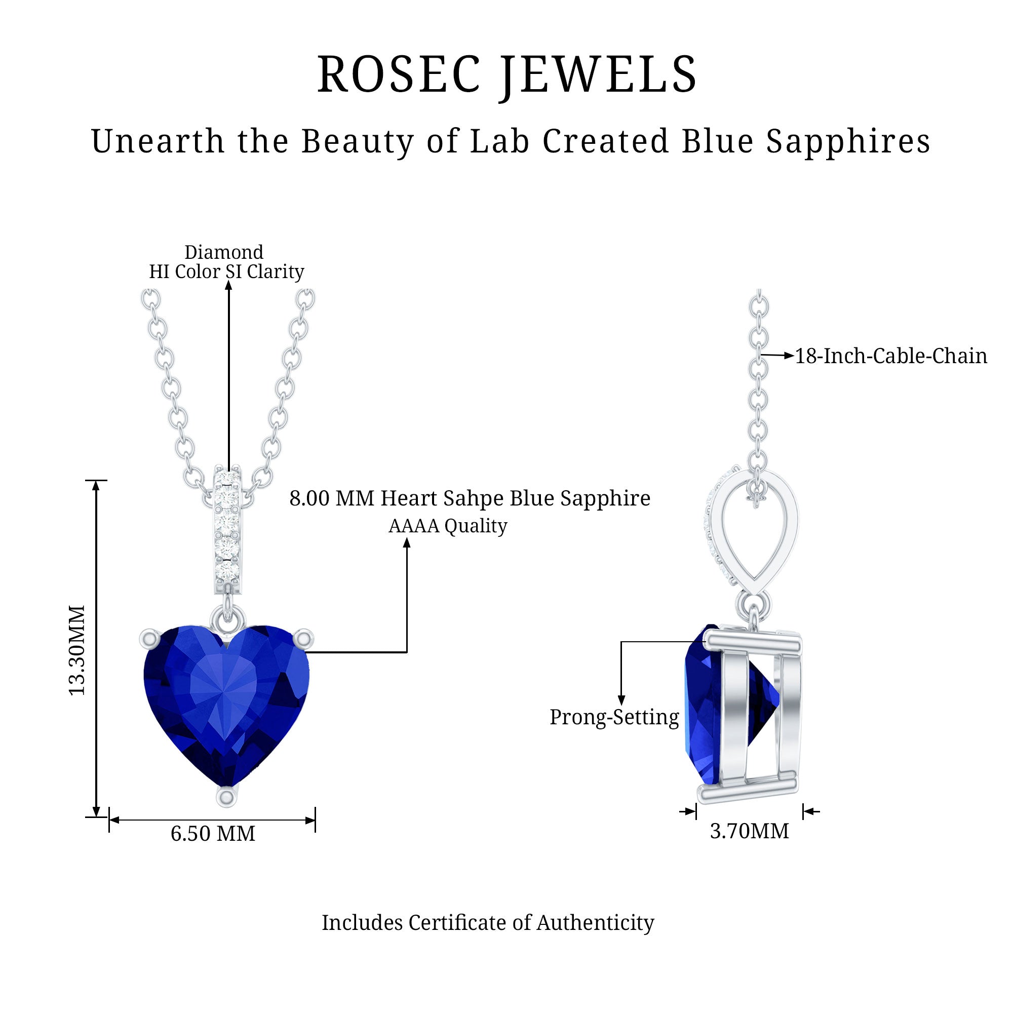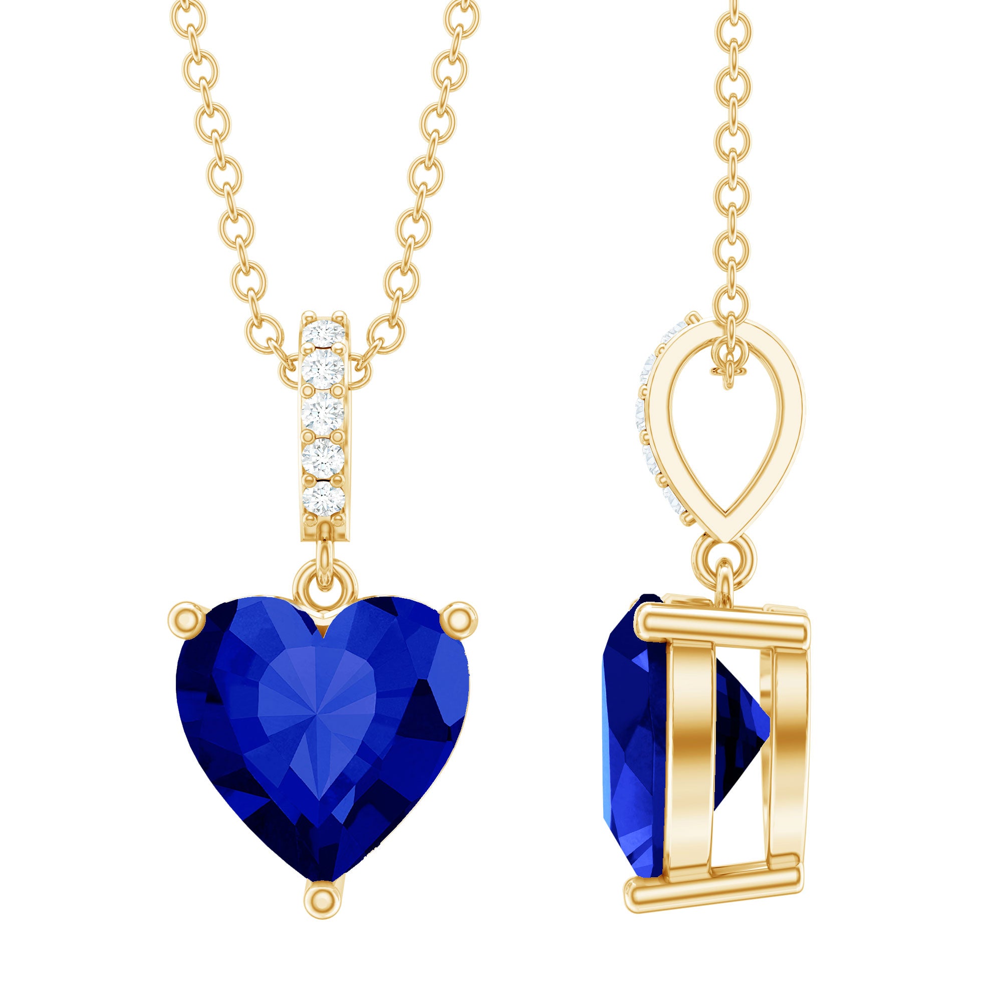 Heart Shape Created Blue Sapphire Solitaire Pendant with Diamond Accent Bail