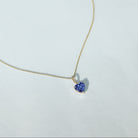 Embrace the breathtaking beauty of this exquisite drop pendant, where a heart-shaped created blue sapphire takes center stage within a dazzling diamond halo. The mesmerizing created blue sapphire captures the spotlight with its magnificence, while graduating round diamonds gracefully enhance its central presence, lending an aura of sophisticated elegance to the design.