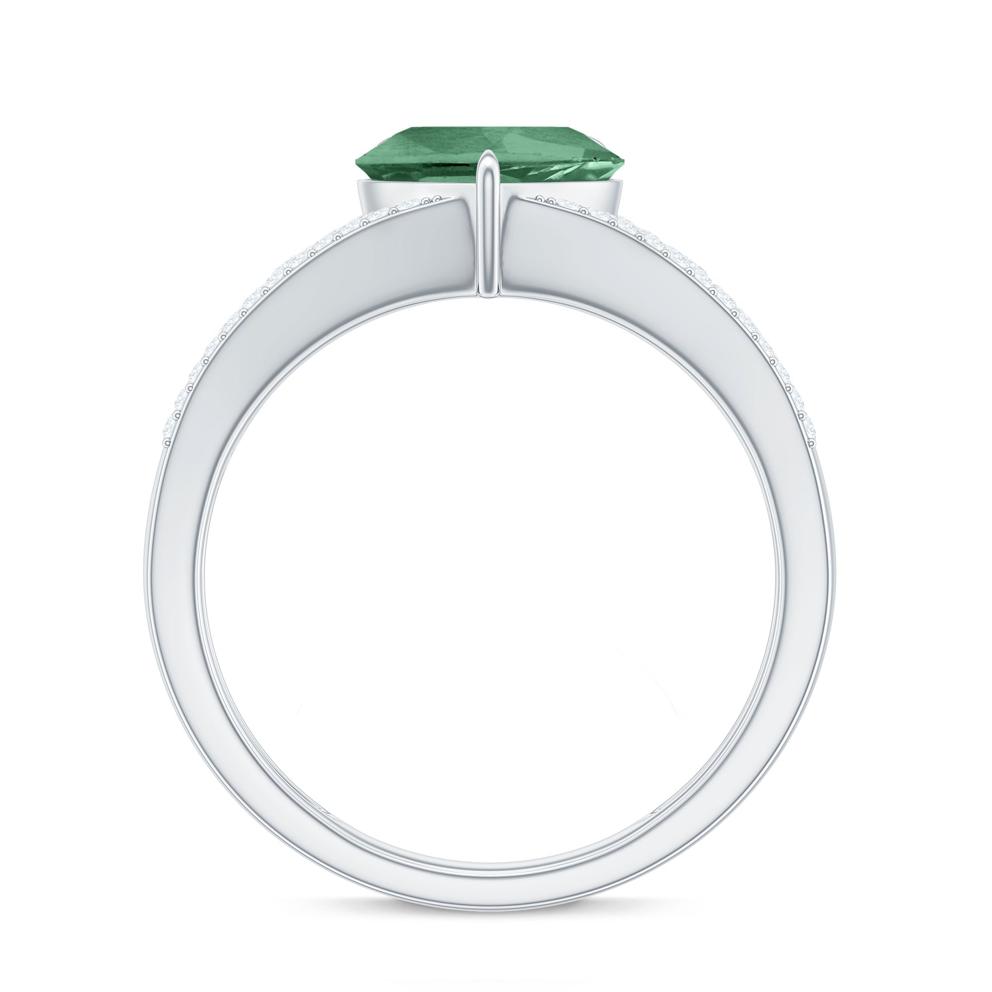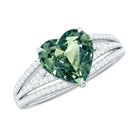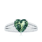 Heart Shape Created Green Sapphire and Diamond Engagement Ring