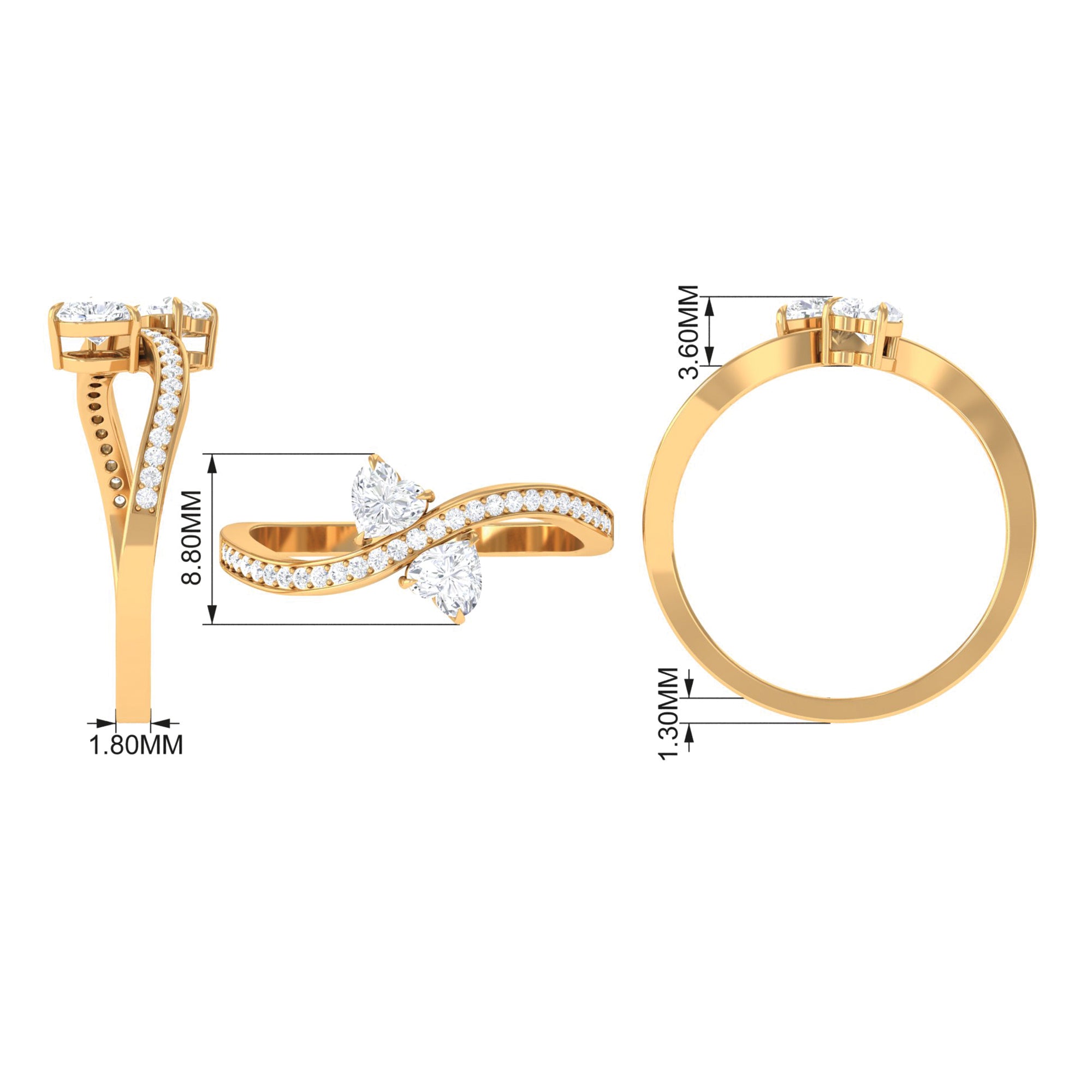 Heart Shape Cubic Zirconia Toi Et Moi Engagement Ring