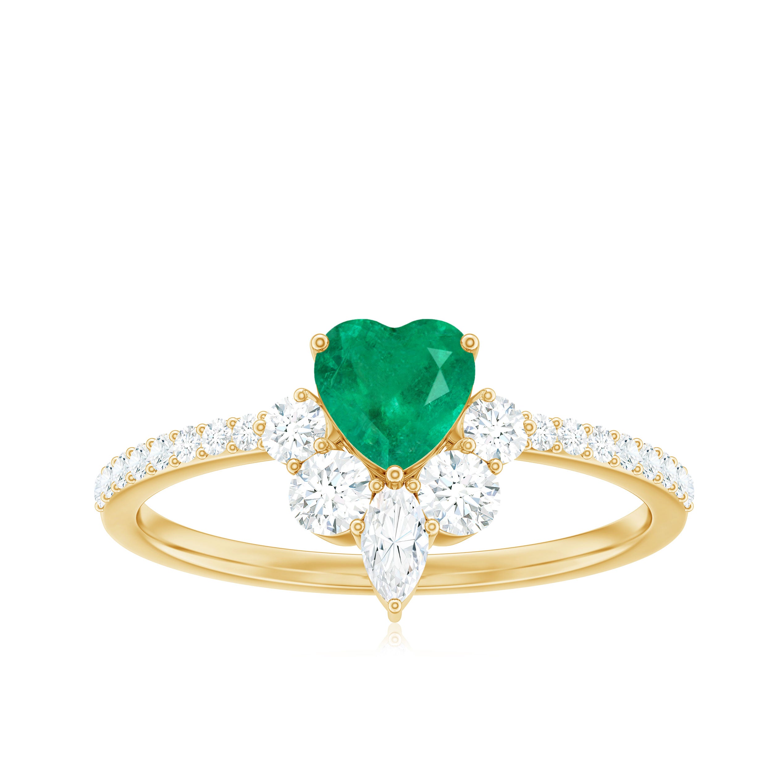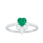 Handcrafted with perfection, this captivating Heart Promise Ring is a stunning symbol of devotion and affection. At the center of this Promise Engagement Ring is a 5 mm Heart Shape Emerald set in Prong Setting, glowing with a vibrant, captivating green that instantly draws the eye. Encircling the AAA Quality Emerald, a delicate Half Halo of Marquise and Round Shape Diamond stones adds a touch of celestial sparkle. The slim band is studded with tiny Diamond stones, giving the ring a shimmer that catches the light with every movement. Designed to embody romance and timeless elegance, this Emerald Heart Ring is ideal for expressing a heartfelt promise, celebrating a meaningful milestone or simply showing someone they hold your heart. Presented in a signature jewelry box and available in a variety of sizes, this Emerald Diamond Ring is a cherished keepsake, a testament to enduring love and intimate connection. This Emerald Proposal Ring transforms every gesture into a sparkling reminder of passion, commitment and the beauty of sharing a piece of your heart forever.