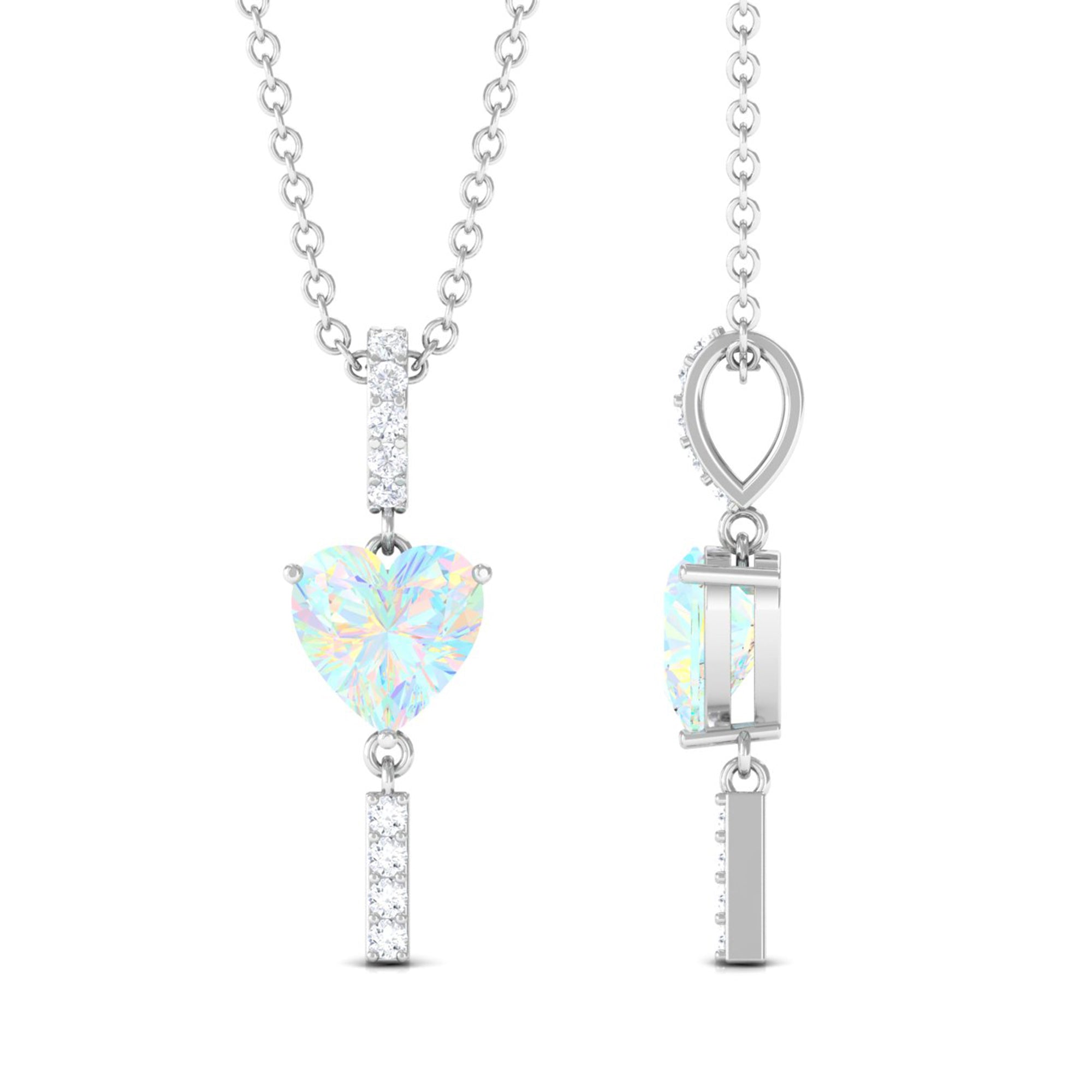 Heart Shape Ethiopian Opal Drop Pendant Necklace with Diamond