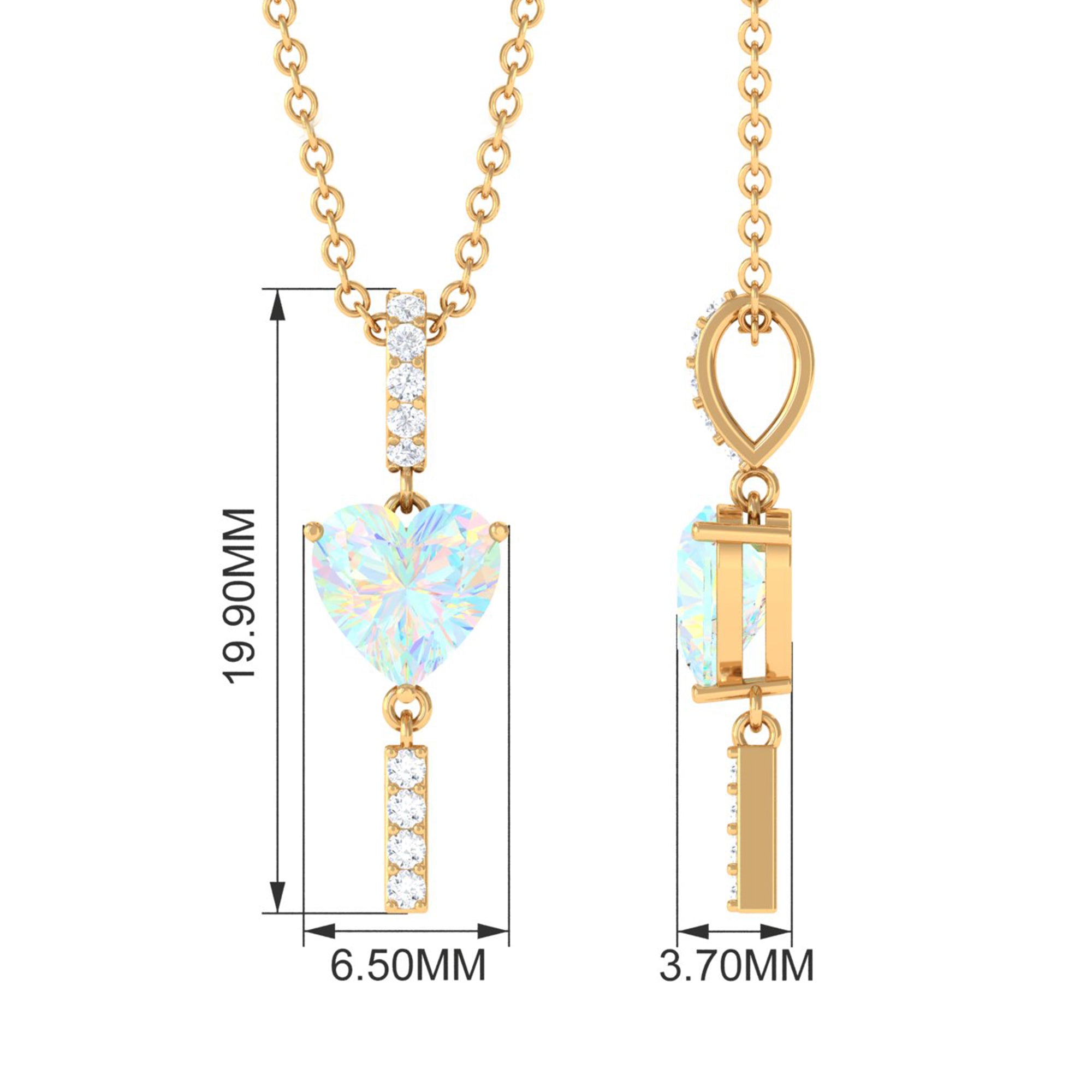 Sparkling in the amidst this Heart Shape Ethiopian Opal securely held in Prong Setting gives a luxurious appeal to this Pendant. The Round Diamond set as Drop on the bar looks just fab on Solitaire Pendant. For every occasion or for every night out this Opal Pendant is a perfect jewelry thus creates a unique look.