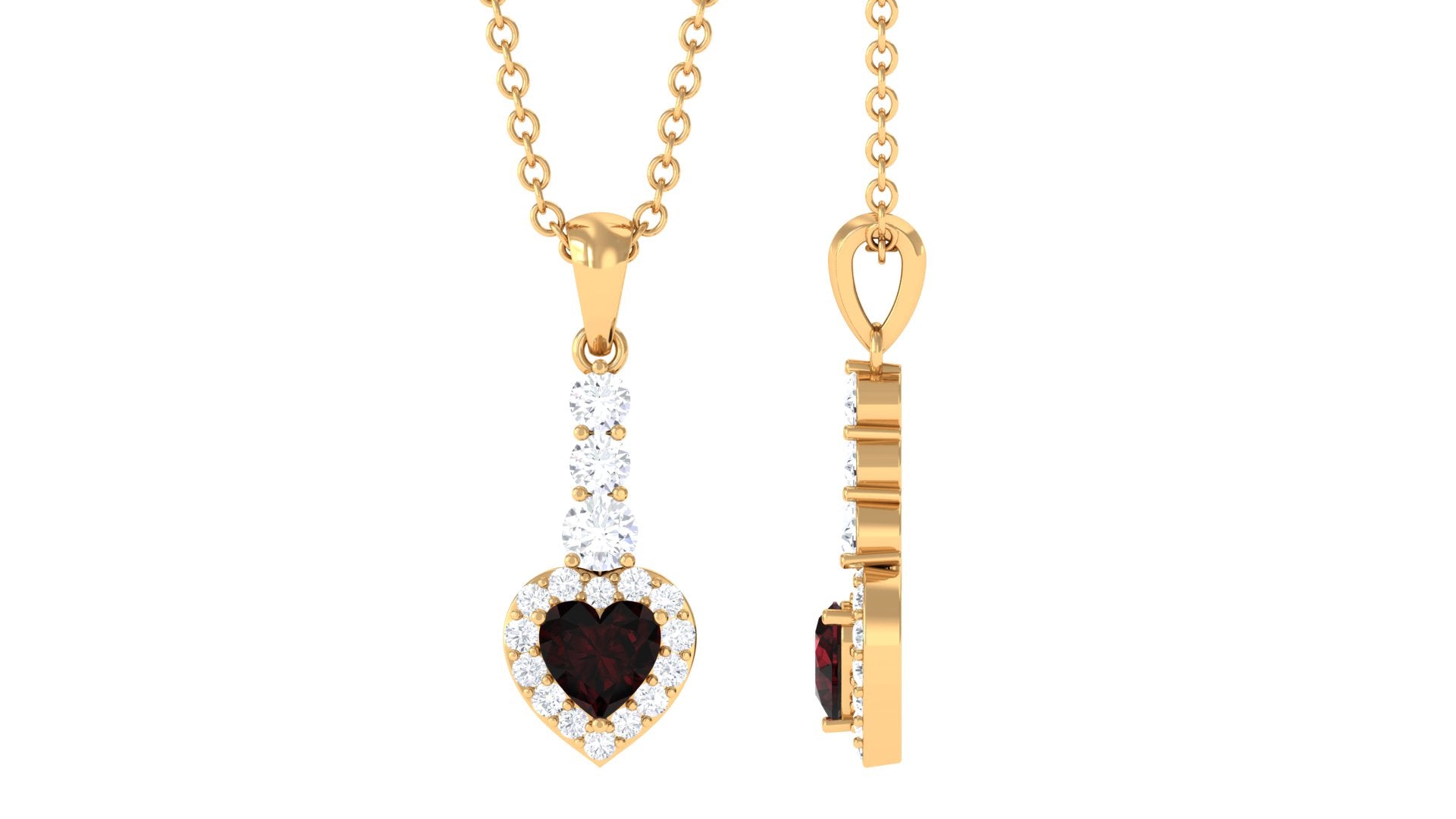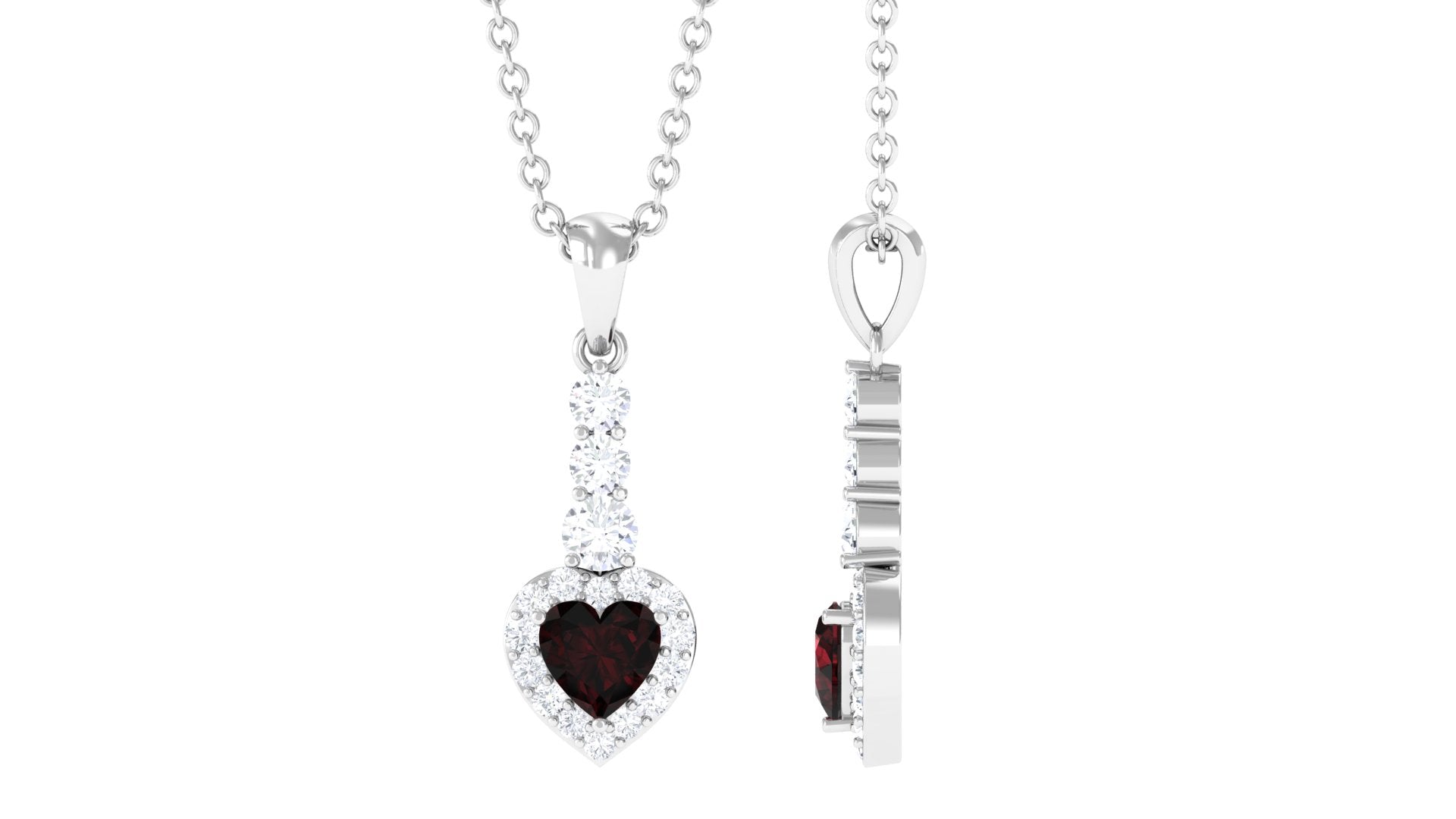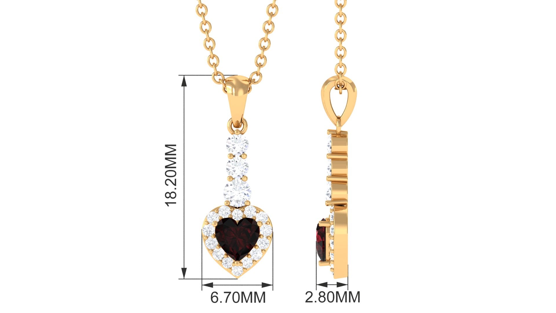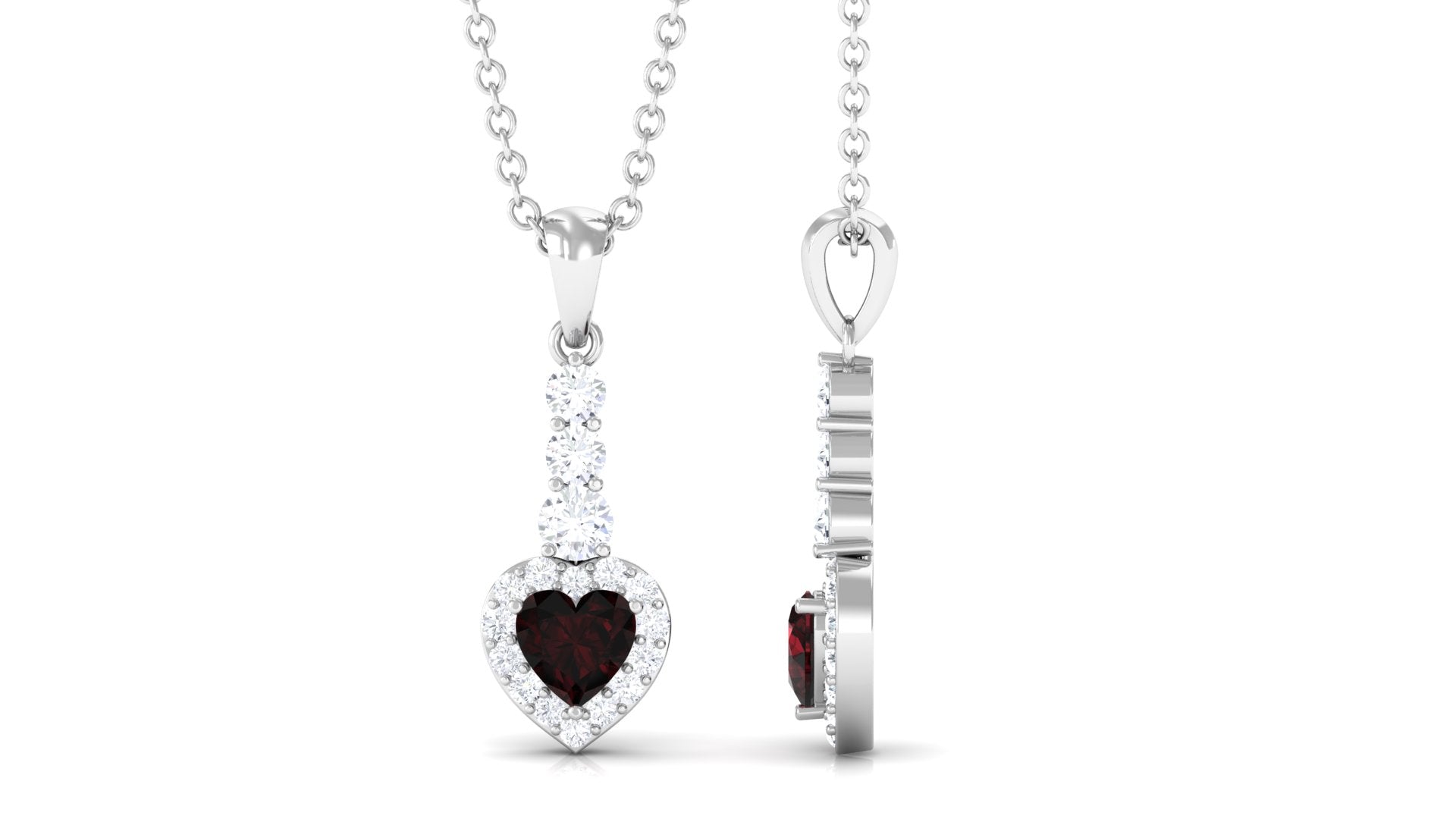 The beautiful Heart Shape Garnet in Prong Setting with Diamond on the Heart frame and studded over the top makes this Heart Pendant necklace an eye-catching piece of jewelry that for sure you will let you get lots of compliments. This Garnet Necklace also makes a suitable bridal jewelry option.