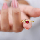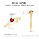 Embrace eternal love with our Heart Promise Ring, a ring as timeless as your love. Adorned with Heart-Shaped Created Ruby meticulously set in prong setting along with Round Moissanite embracing the beauty of twisted shank. Make every moment sparkle with the brilliant touch of this Created Ruby Ring showcasing both elegance and sophistication. If you are looking for a unique piece to enchant her eyes then grab this Ruby Heart Ring crafted with proper care and precision.