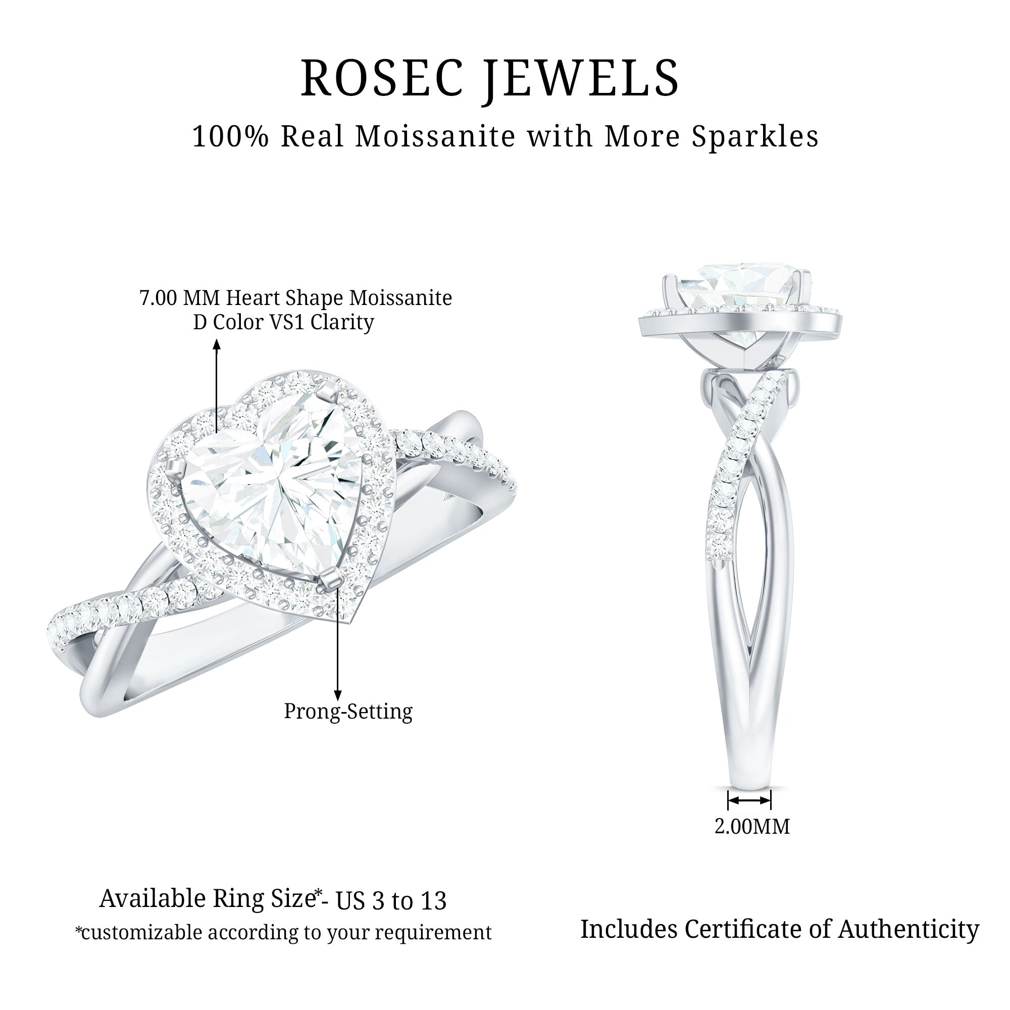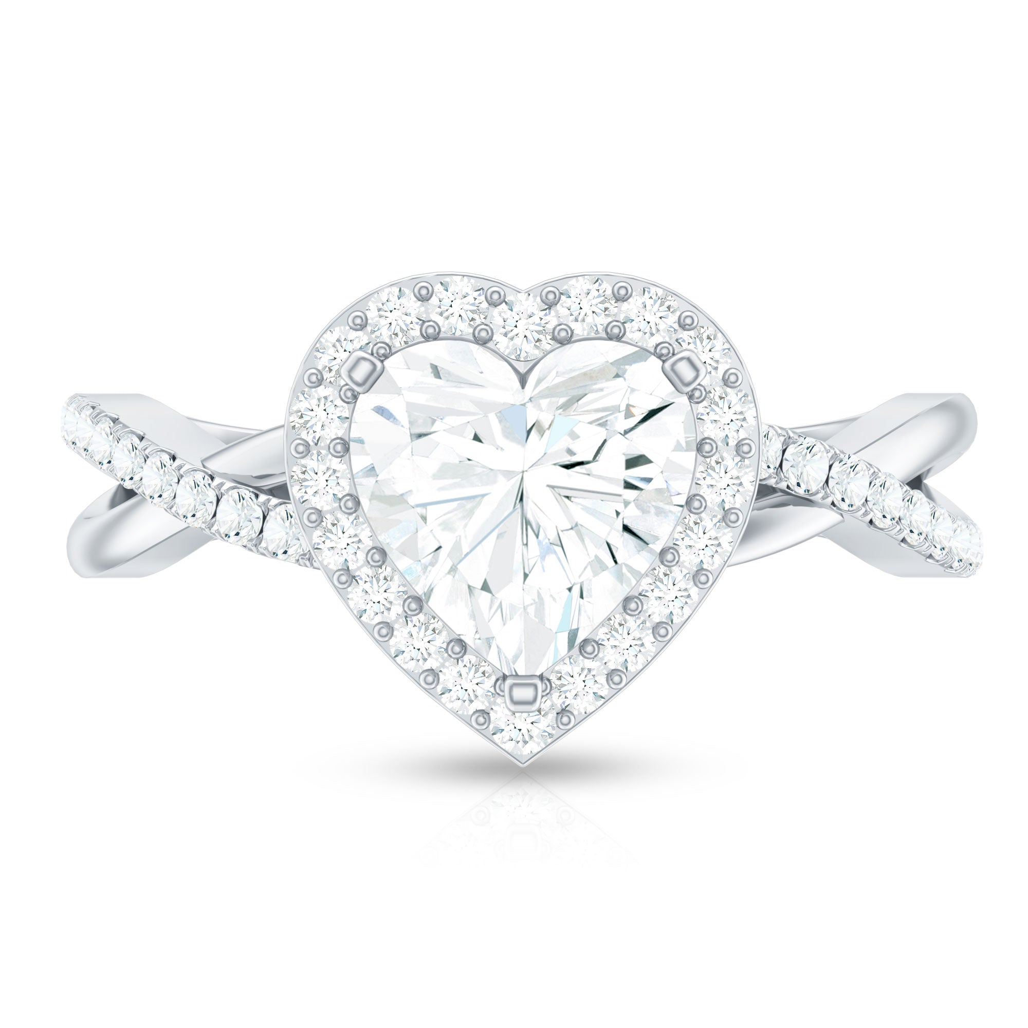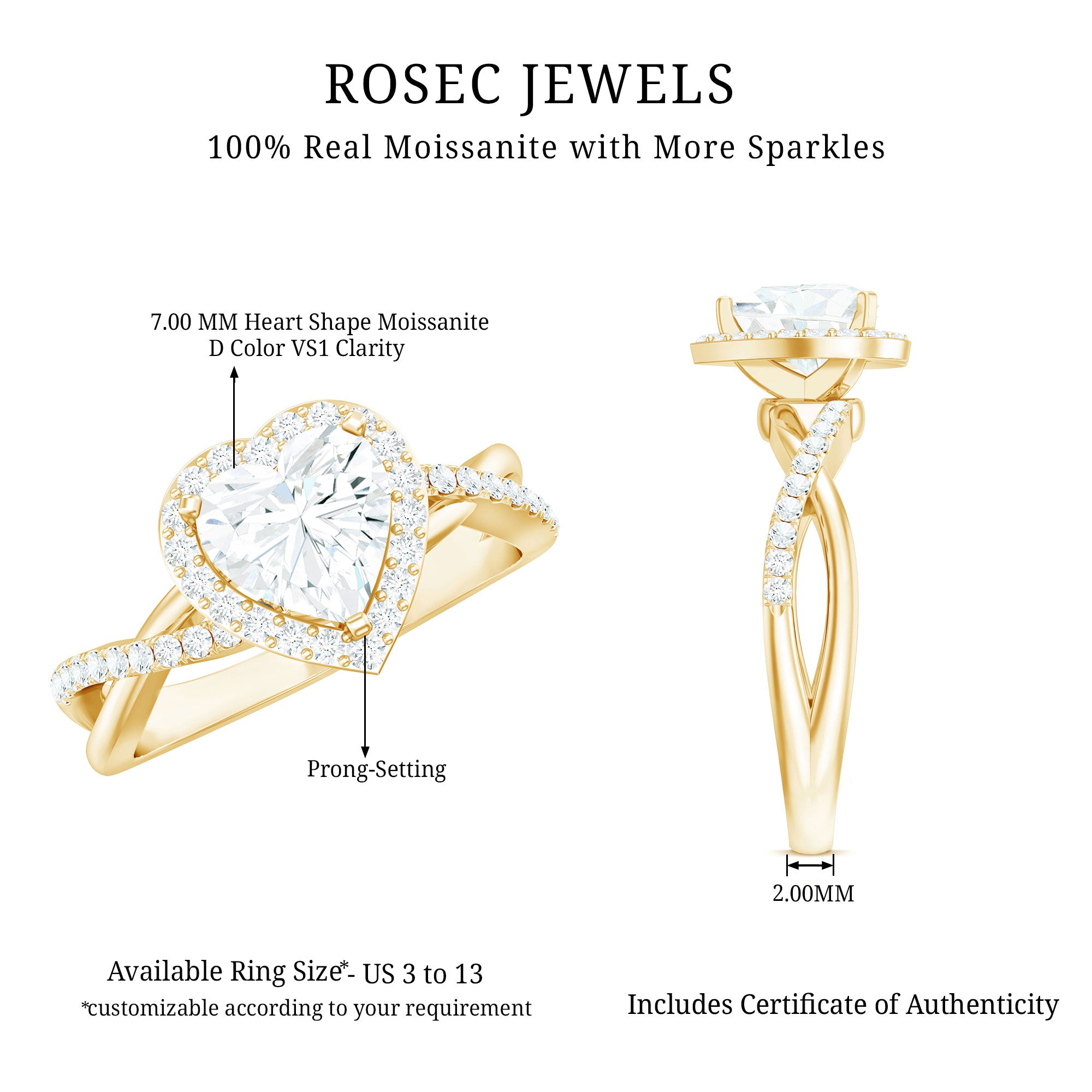 Heart Shape Moissanite Halo Engagement Ring with Criss Cross Band