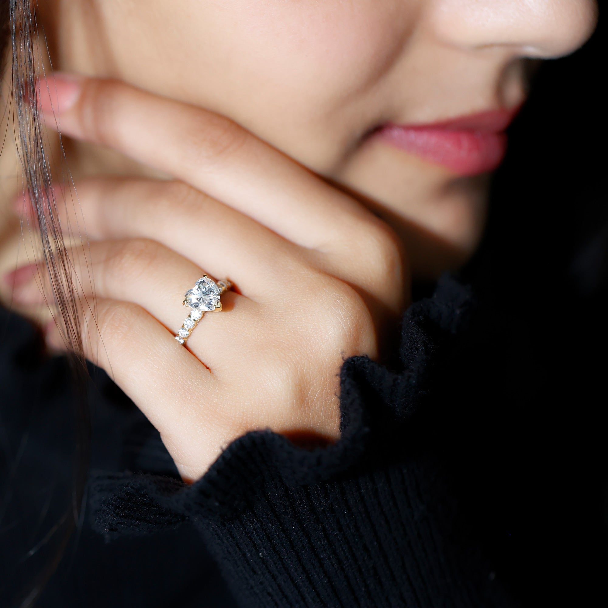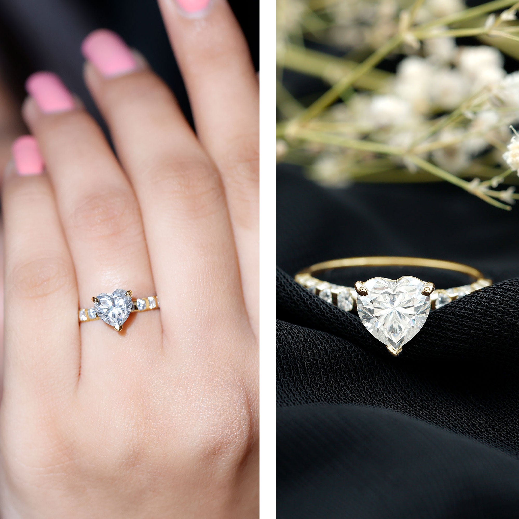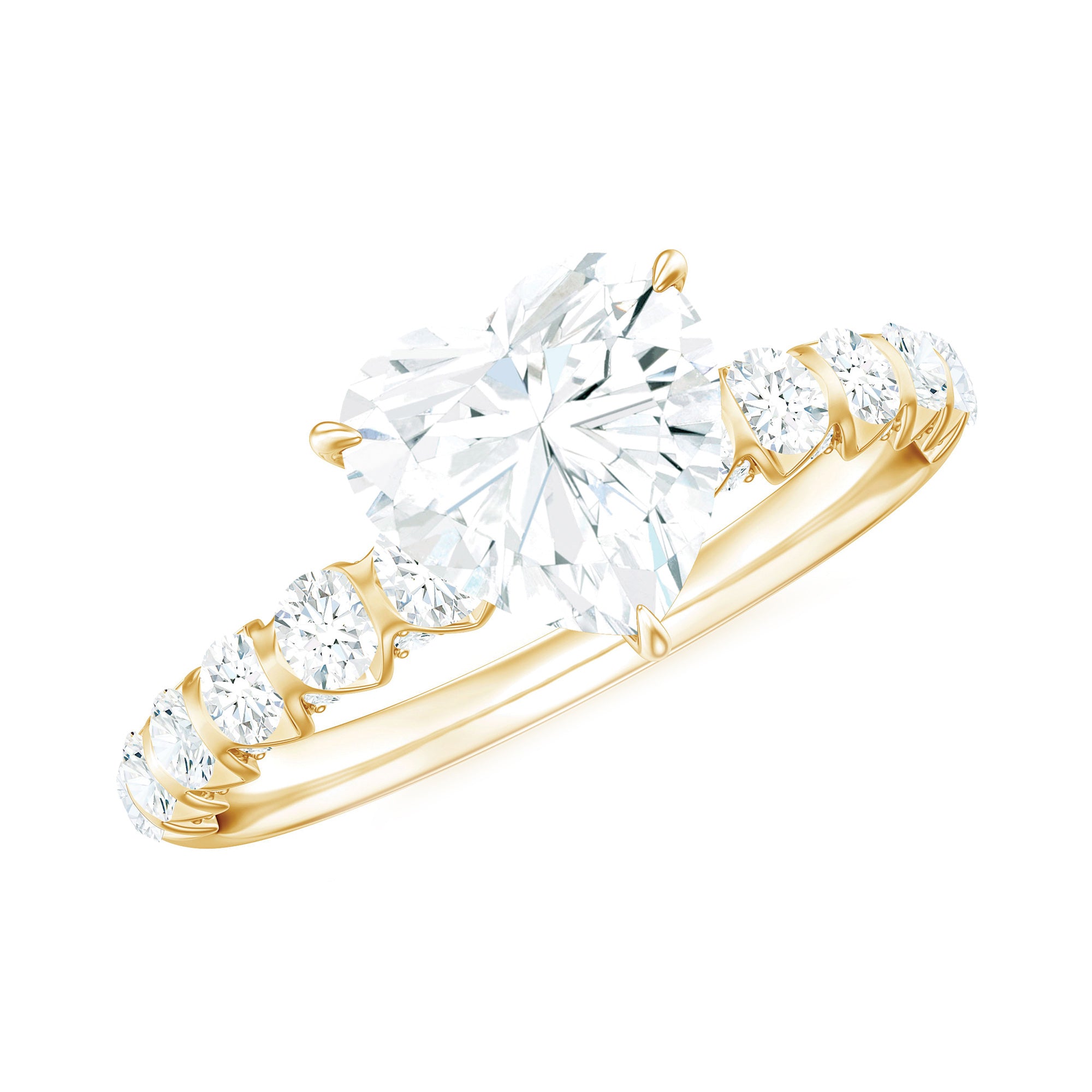 Heart Shape Moissanite Solitaire Engagement Ring With Side Stones