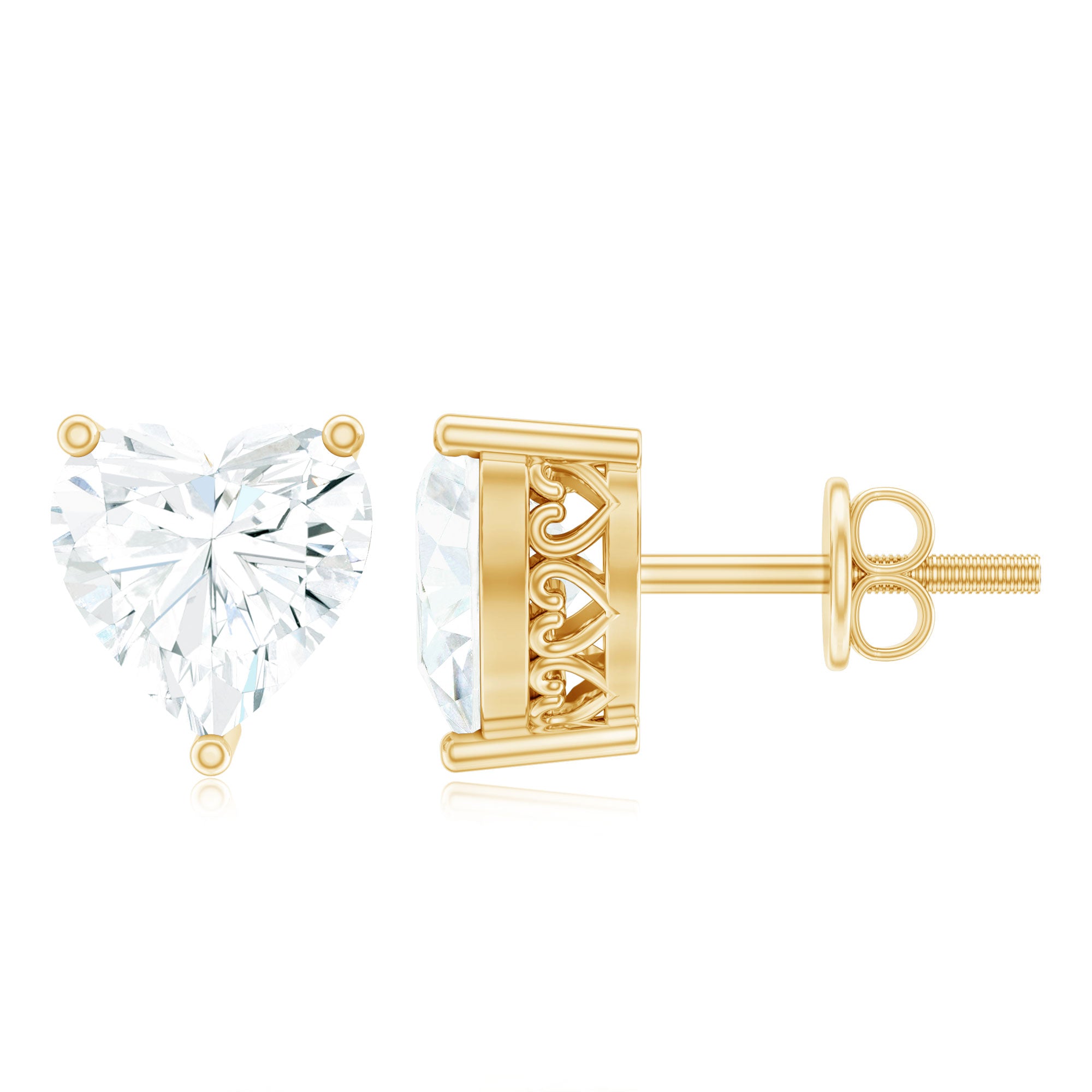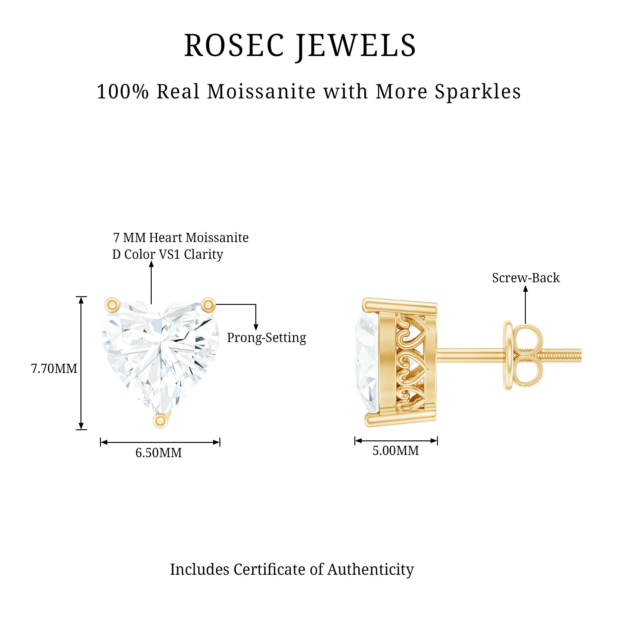 Sparkle and shine with these cute and pretty Certified Moissanite Stud Earrings. They feature 7 MM Heart Shape Moissanite in Prong Setting as Solitaire on Stud Earrings. Radiating a marvelous elegant appeal these Heart Stud Earrings are mesmerizing jewelry for the one close to your heart. Get ready to draw compliments with these that makes perfect for everyday wear or your evening date too. Even if you are among the ones who just love all things hearts then these Heart Studs make a great present for yourself.