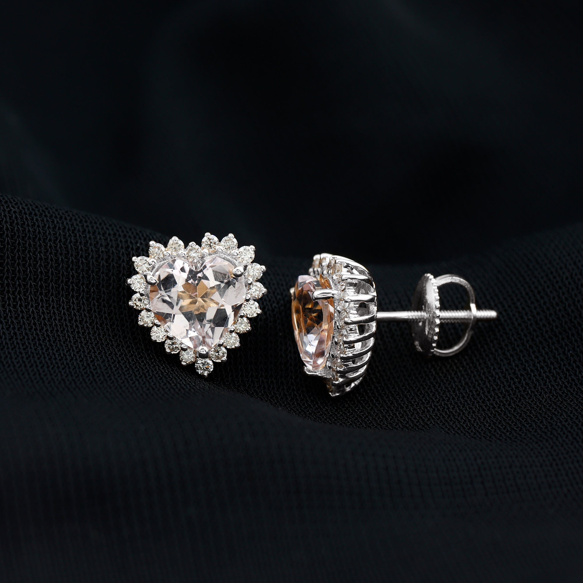 Heart Shape Morganite Halo Stud Earrings with Diamond