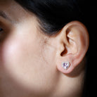 Turn heads and make a bold statement with these striking Stud Earrings. The centerpiece of each earring is a dazzling 7 MM Heart Shape Morganite Solitaire, elegantly enhanced by a halo of sparkling Round Brilliant Diamond. These exquisite Statement Stud Earrings are designed to captivate and leave a lasting impression wherever you go.