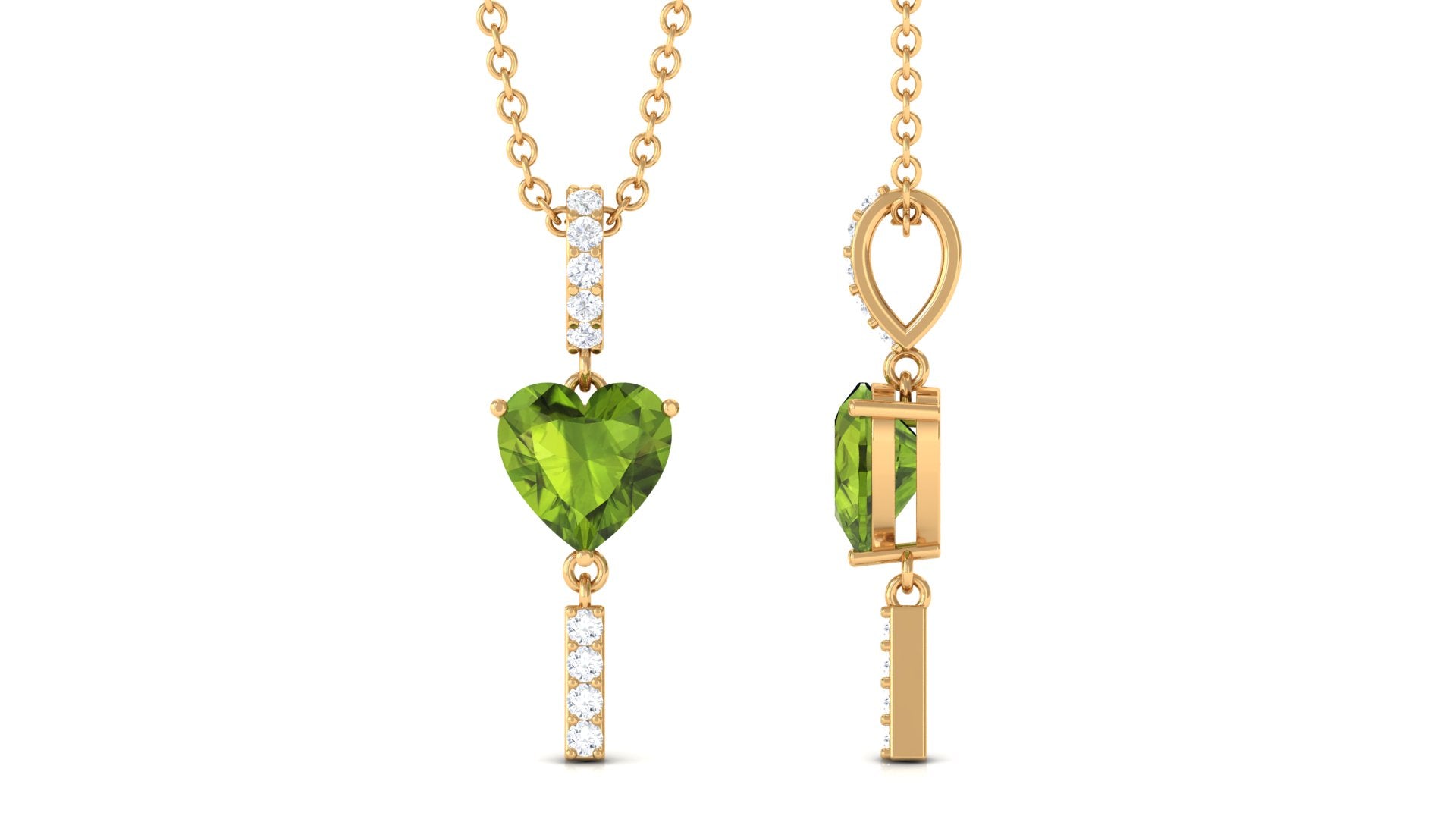 Heart Shape Peridot and Diamond Bar Drop Pendant