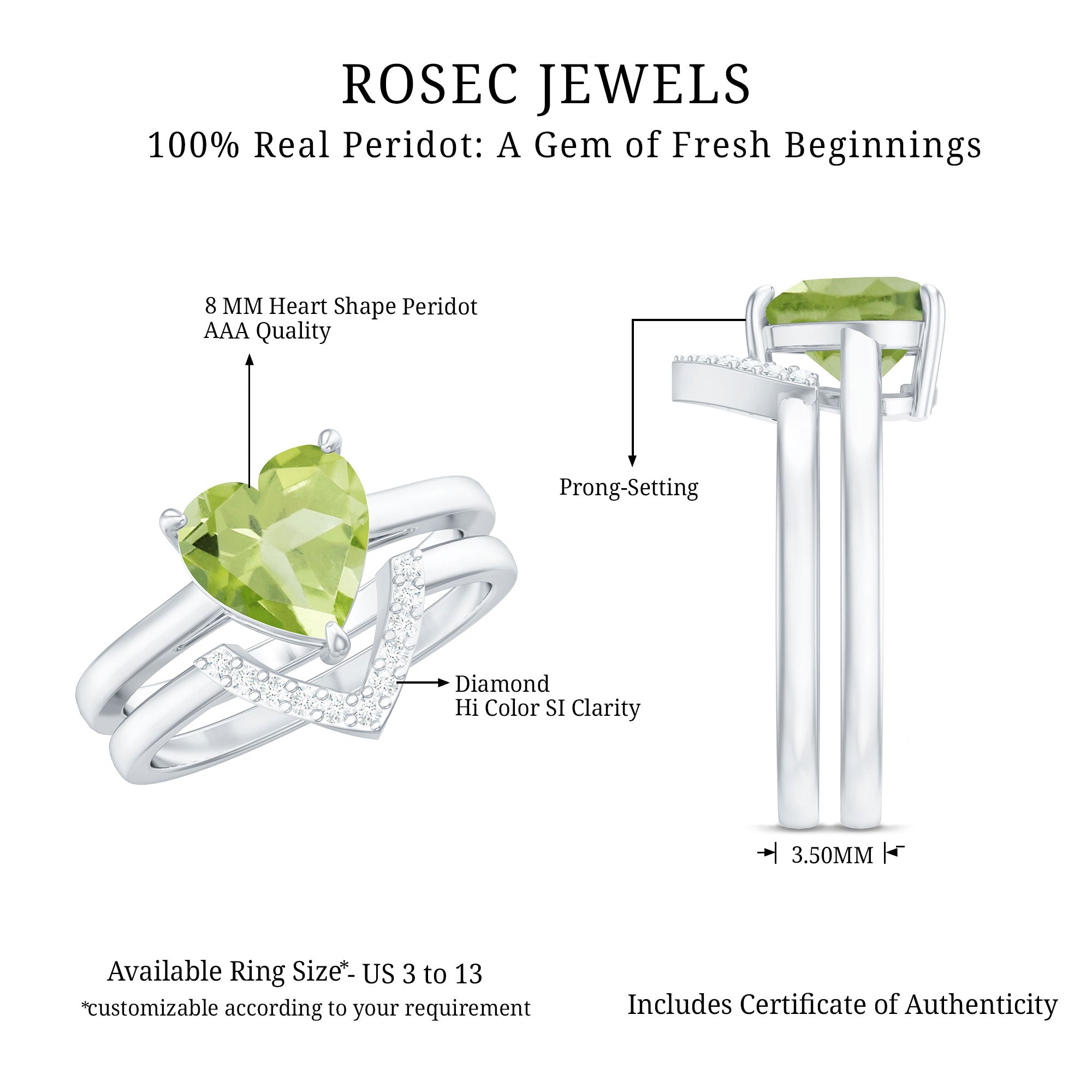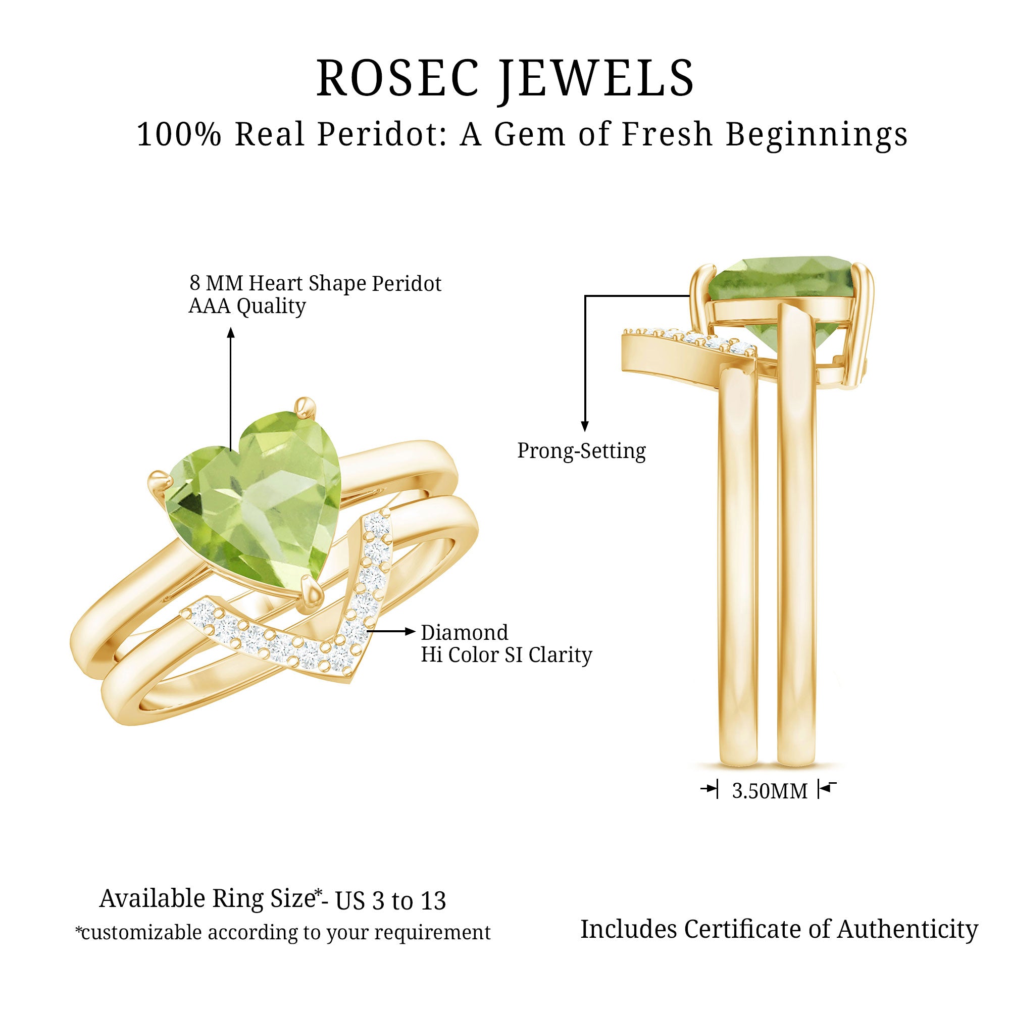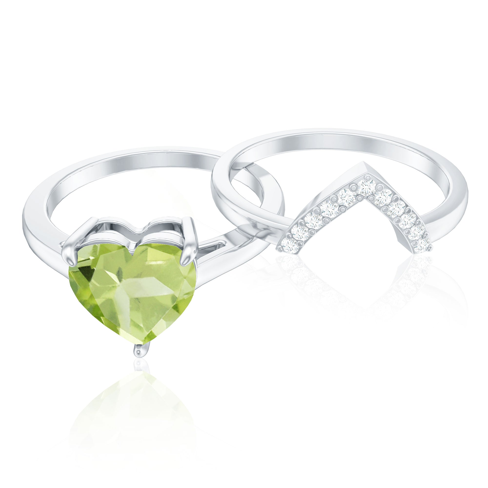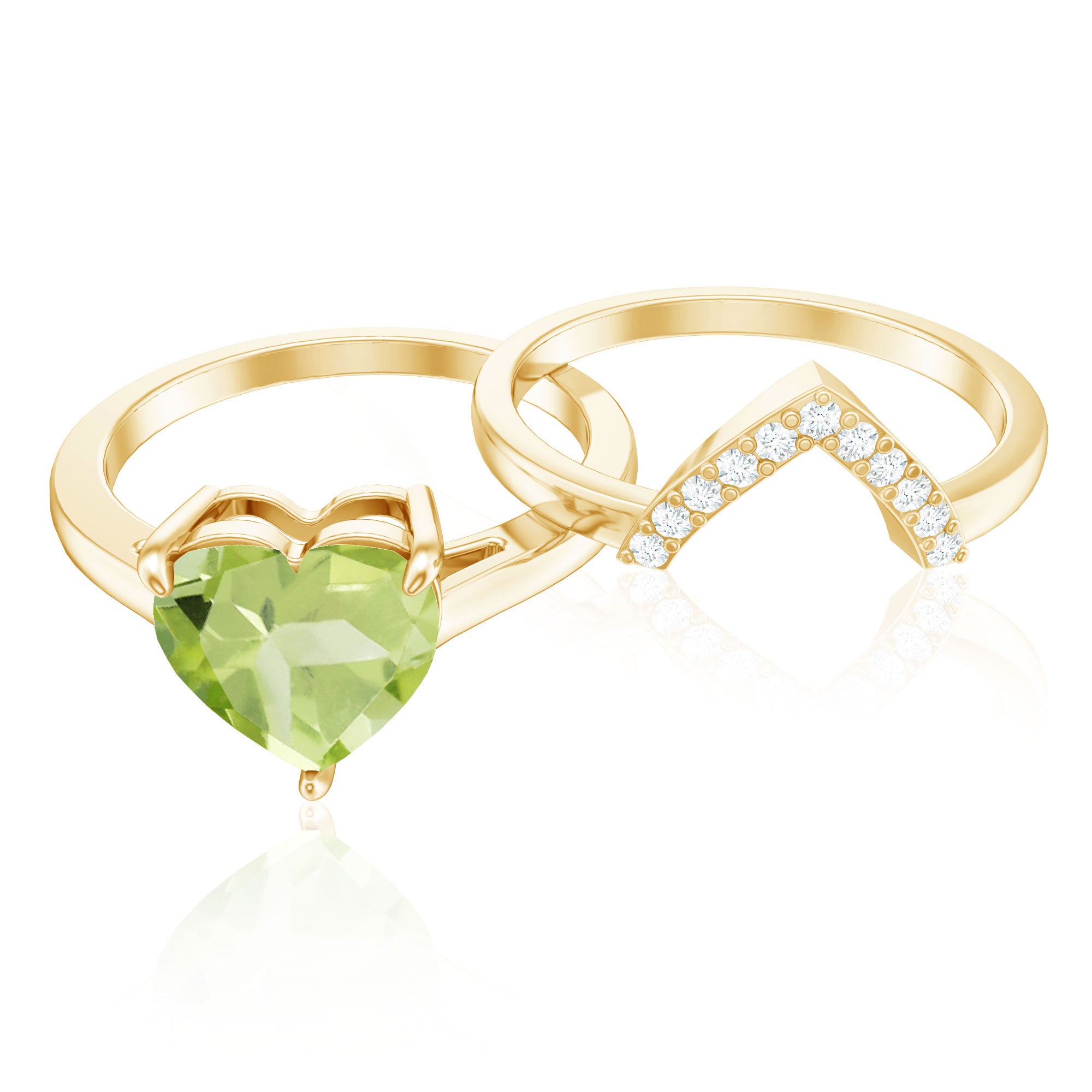 Capture the essence of love with this Heart Shape Peridot and Diamond Ring Set, a symbol of affection and devotion, crafted to sparkle eternally.