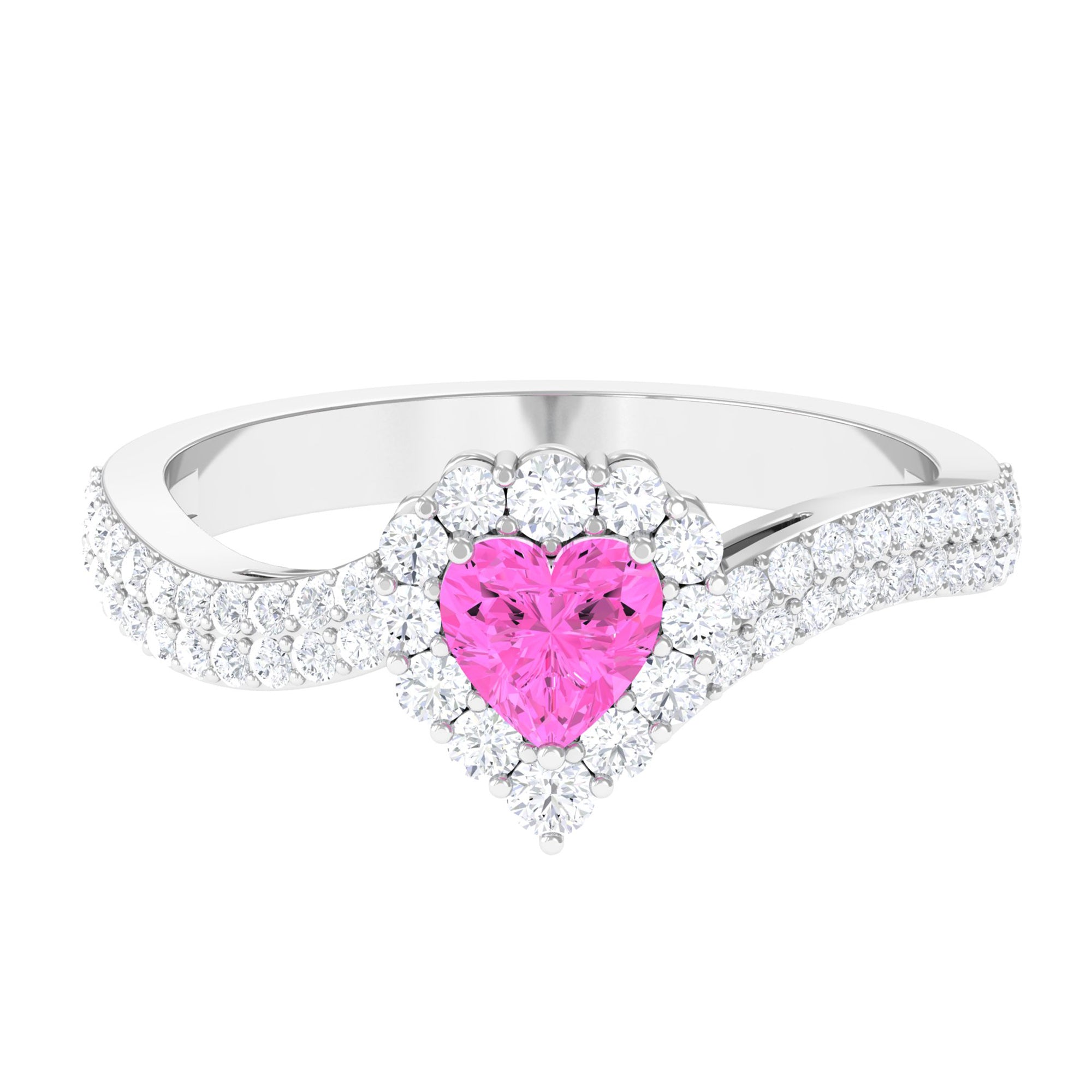 Heart Shape Pink Sapphire and Diamond Bypass Engagement Ring
