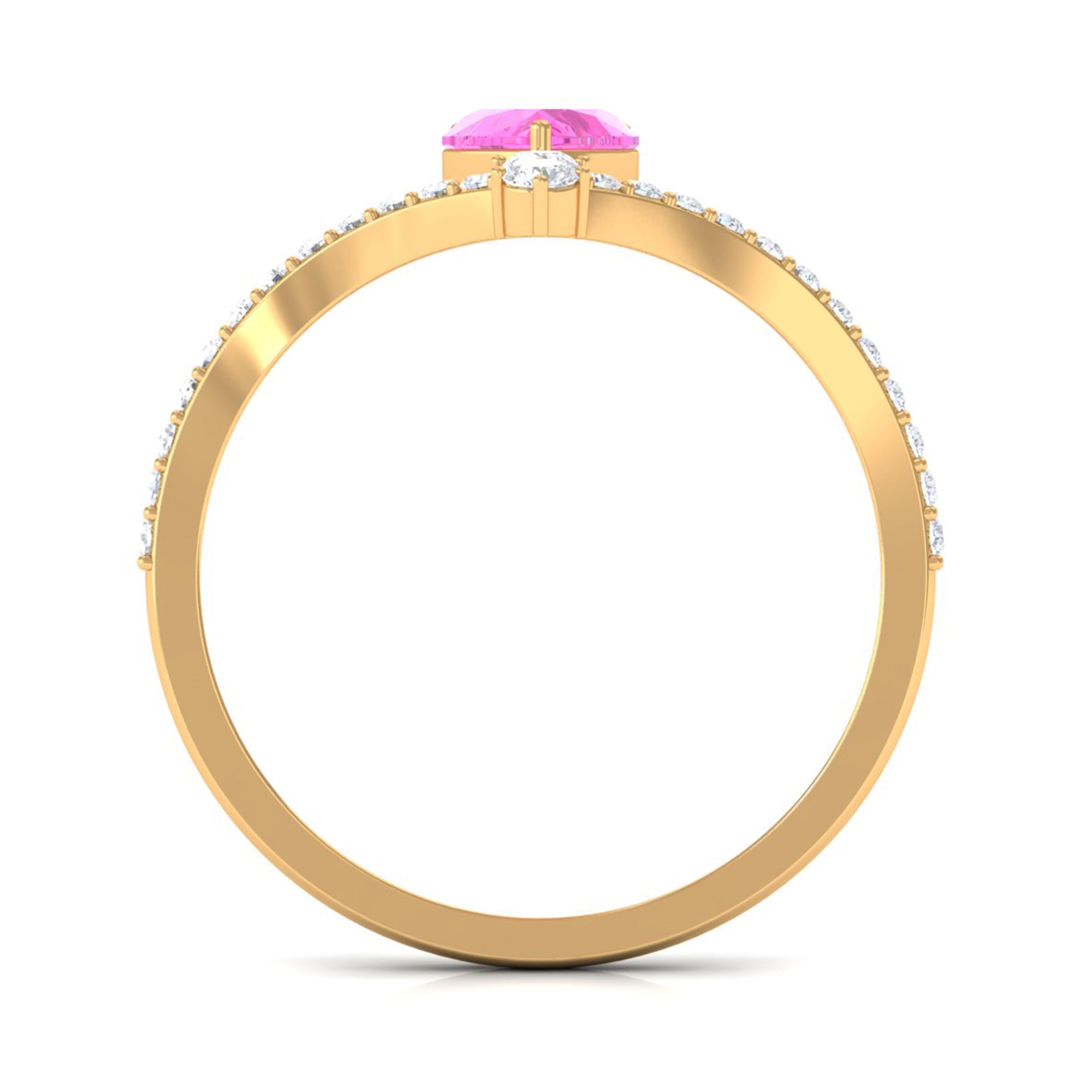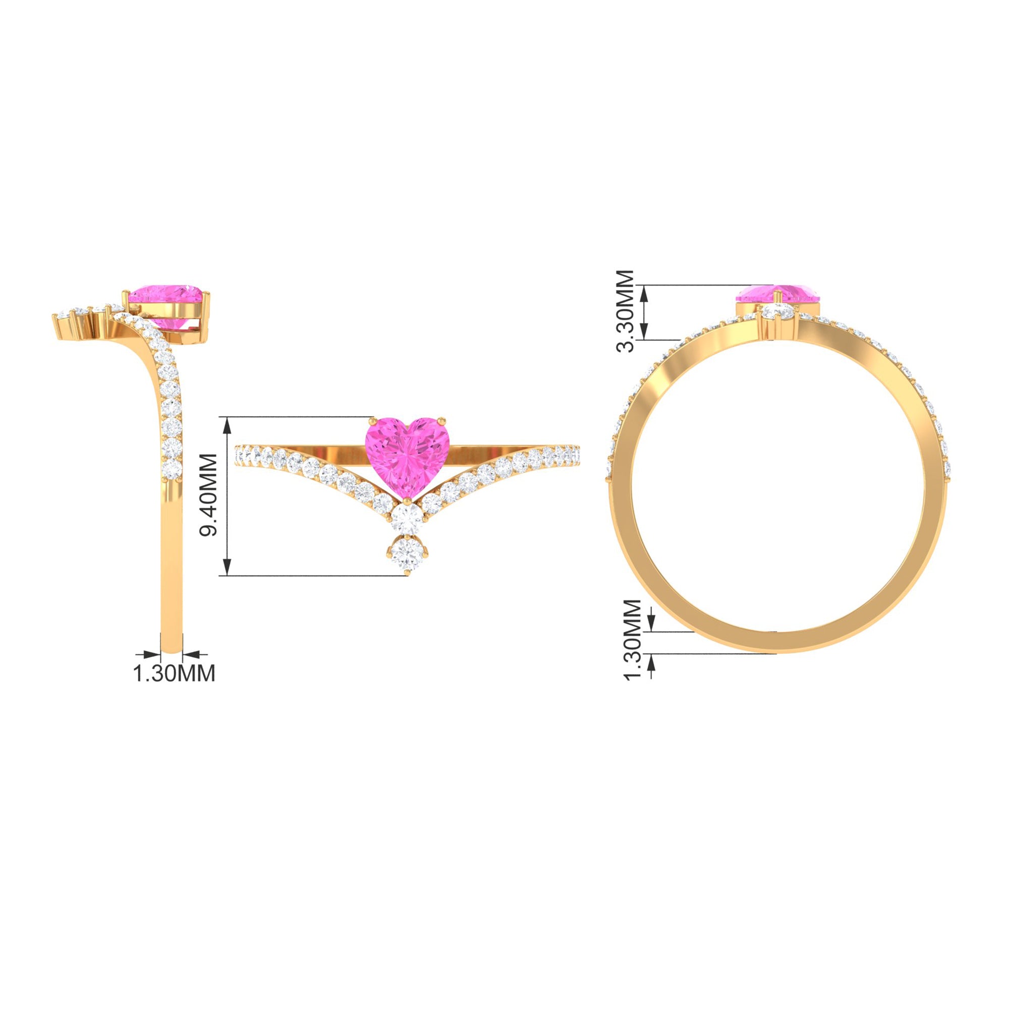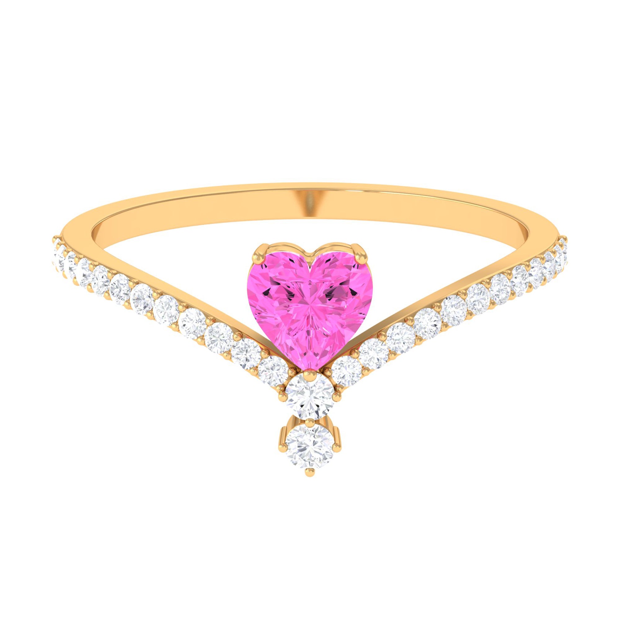 Heart Shape Pink Sapphire Solitaire Ring with Diamond
