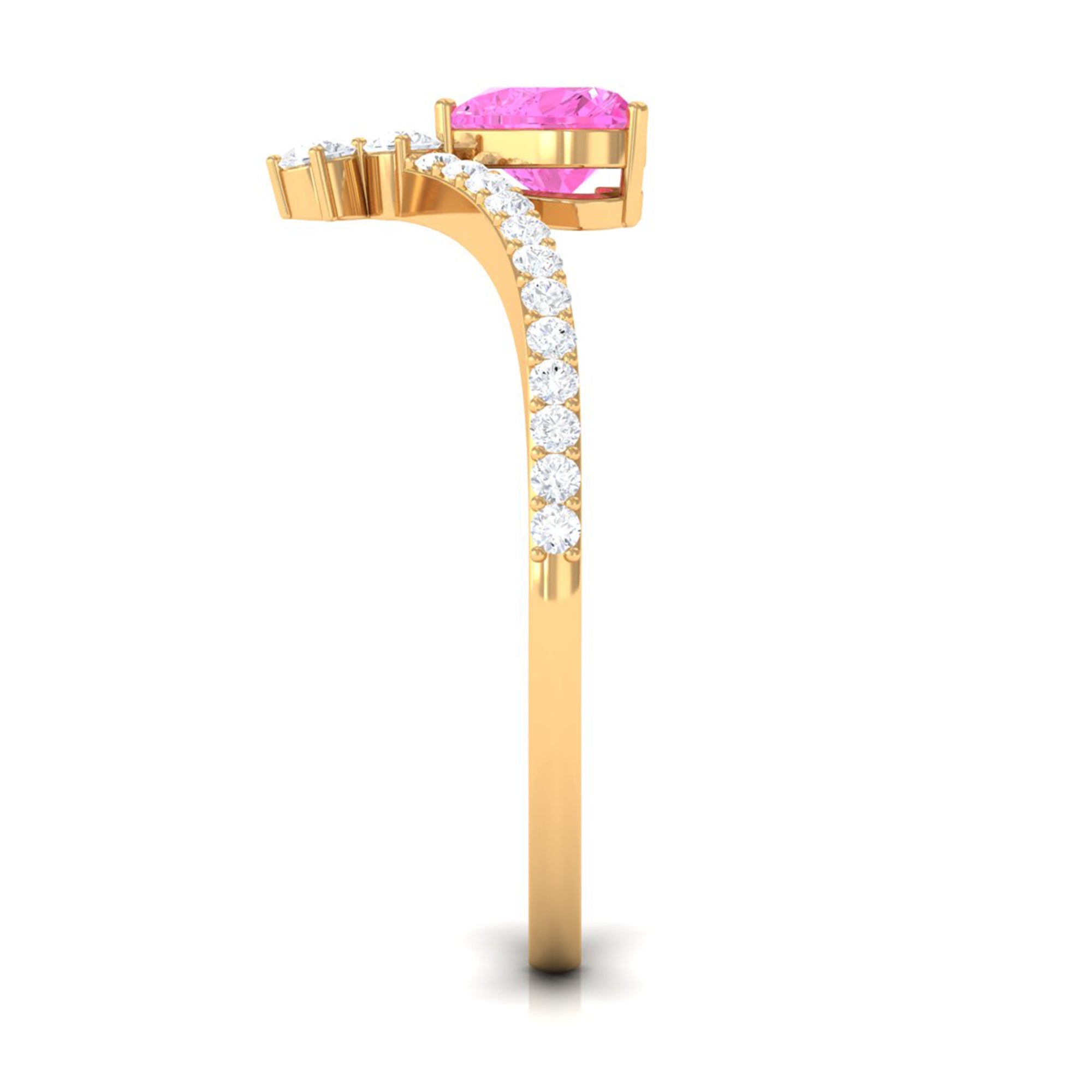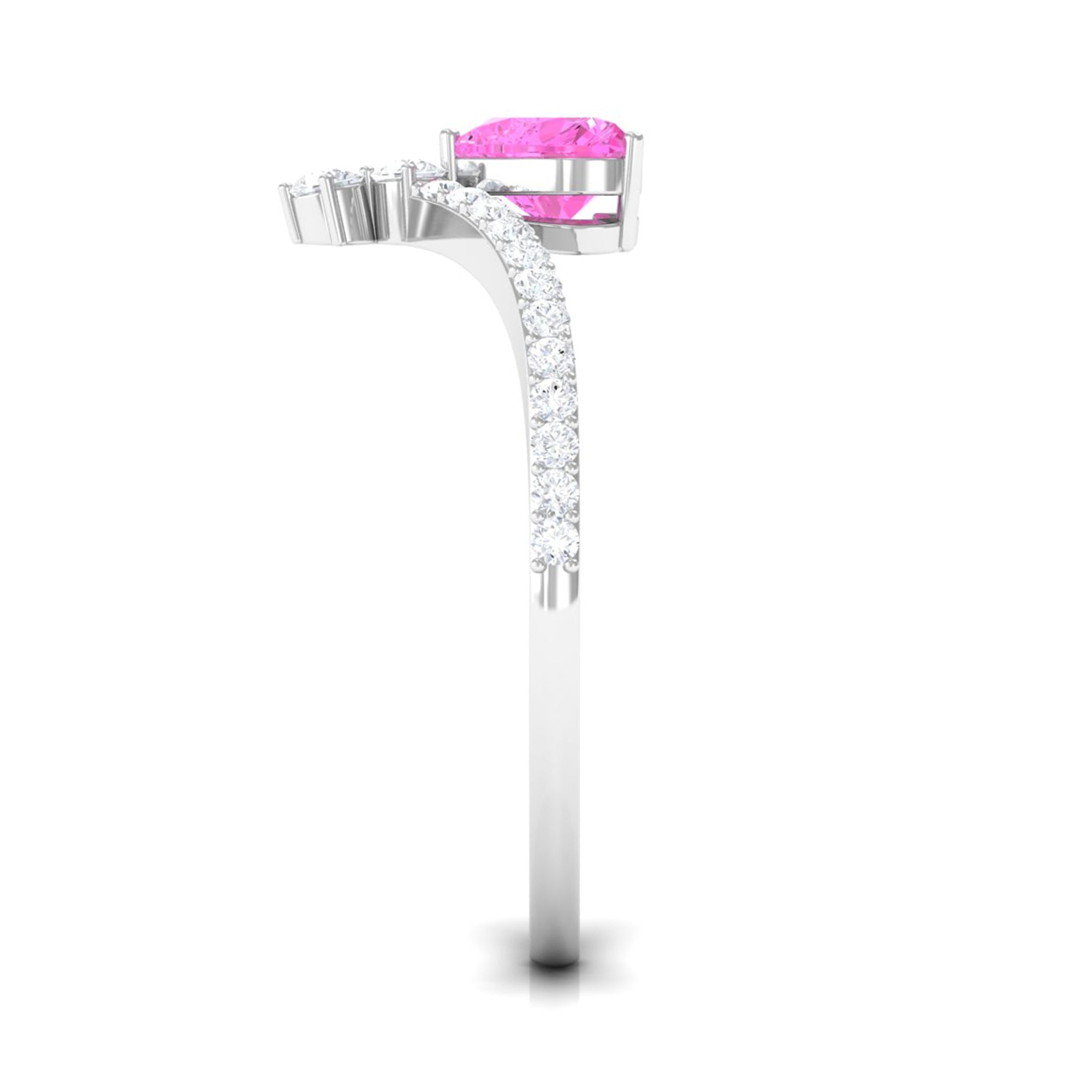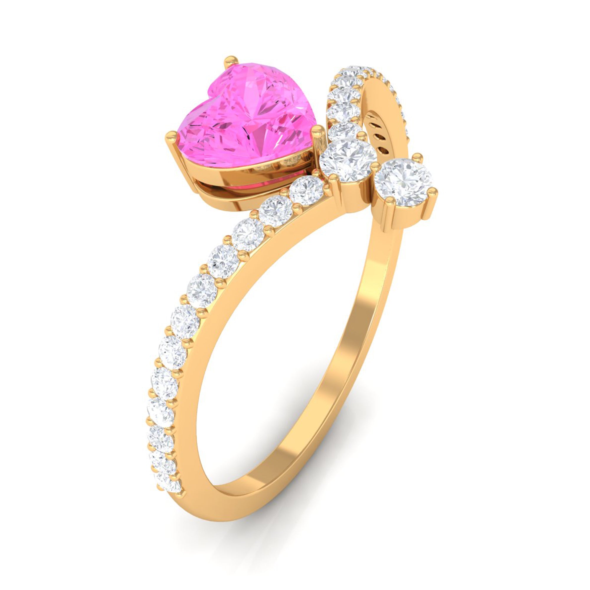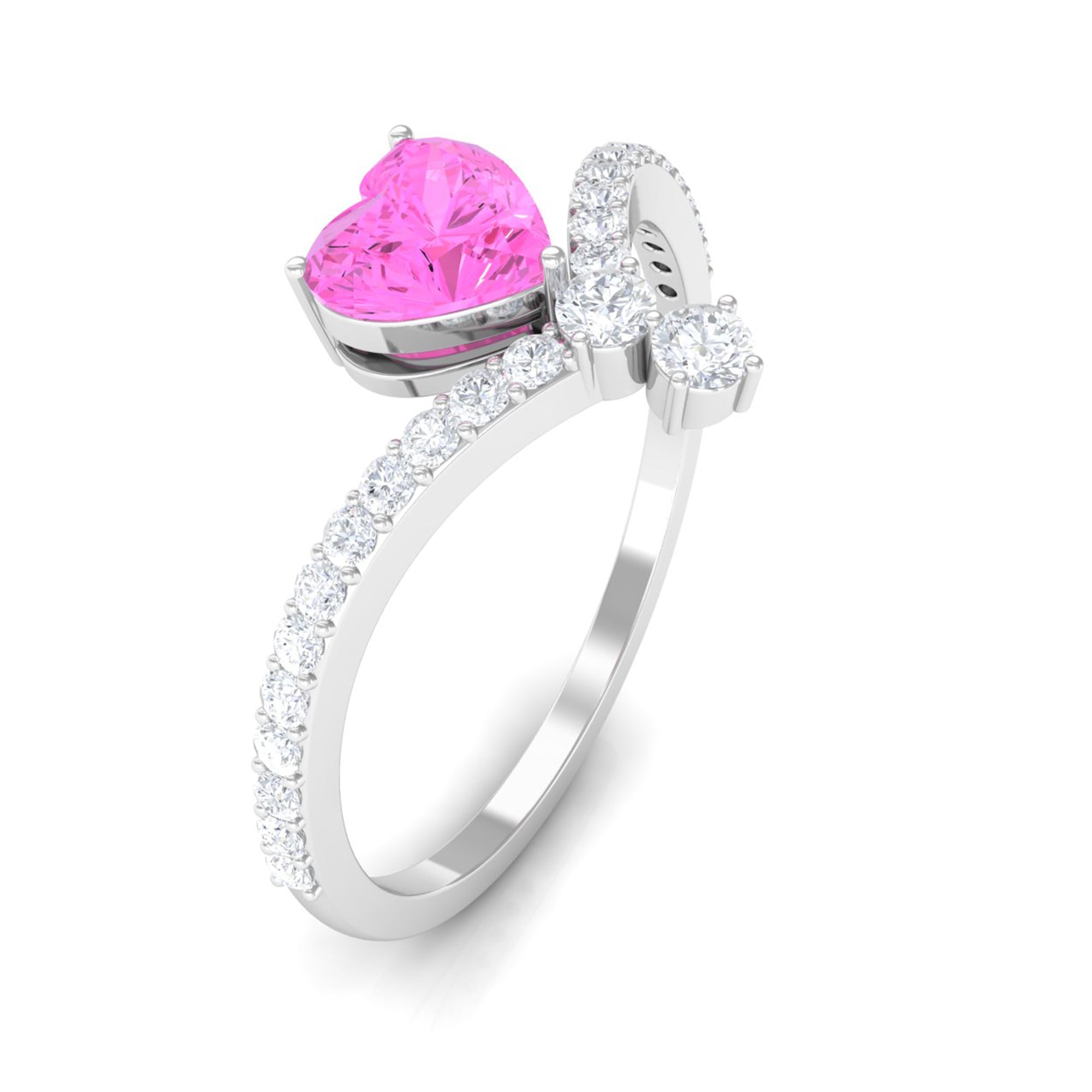 Heart Shape Pink Sapphire Solitaire Ring with Diamond