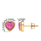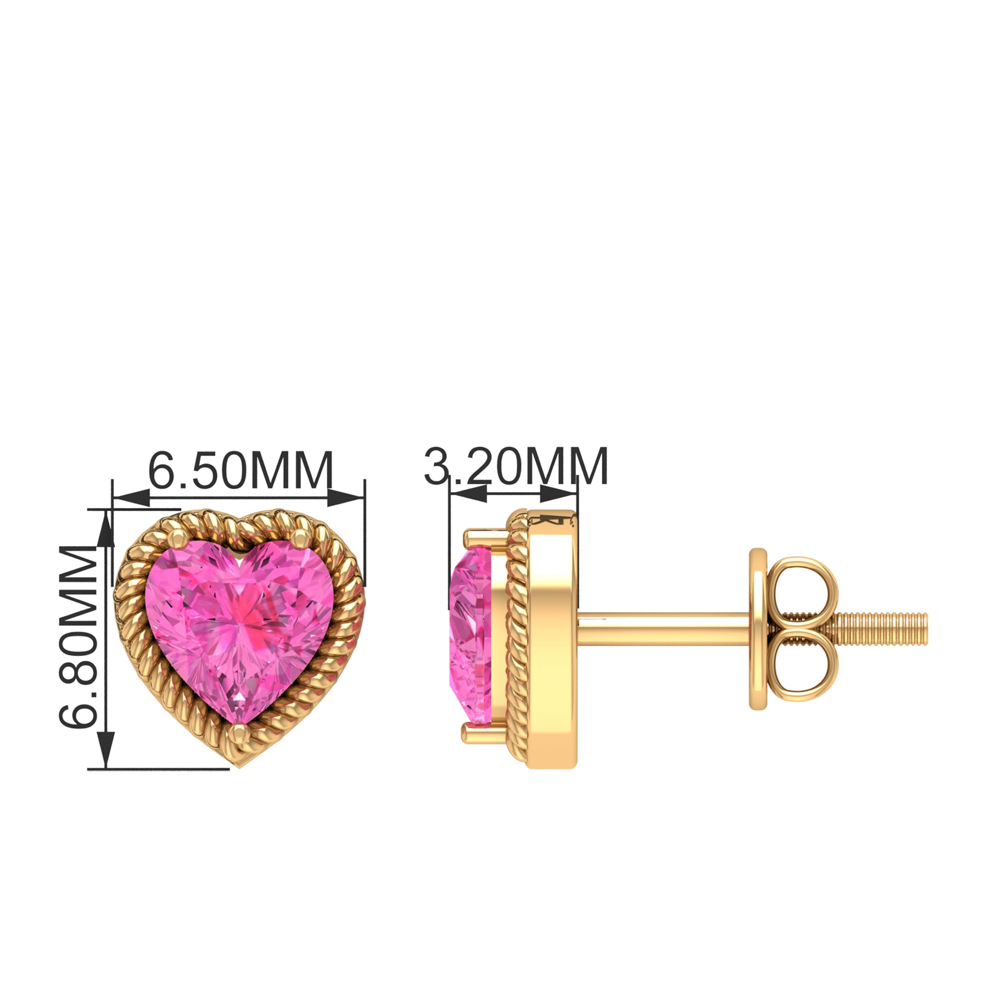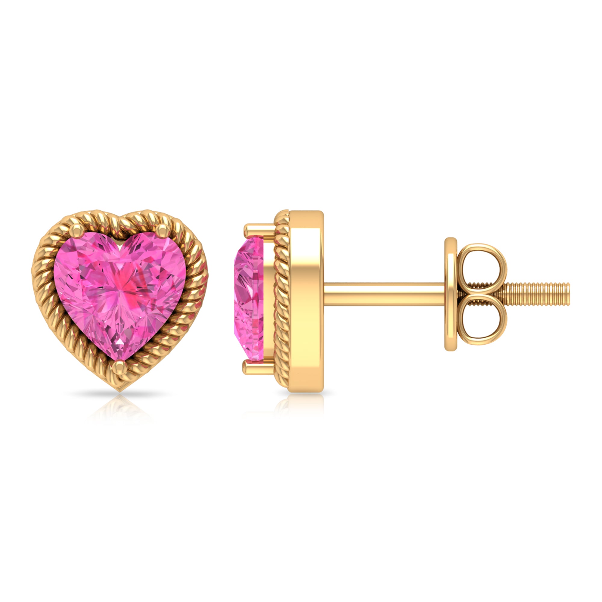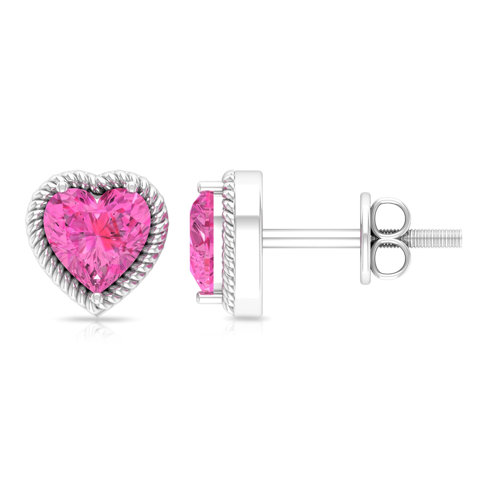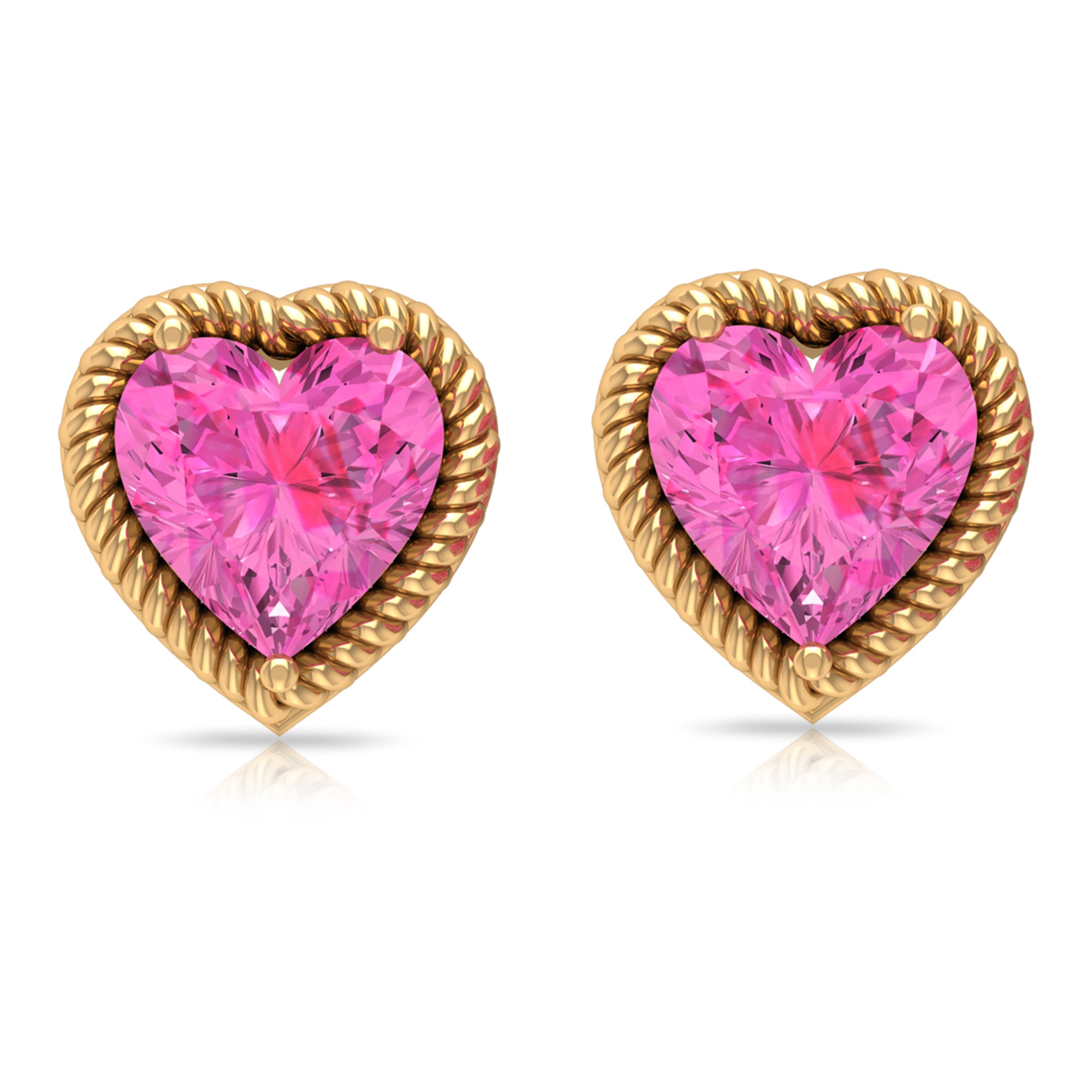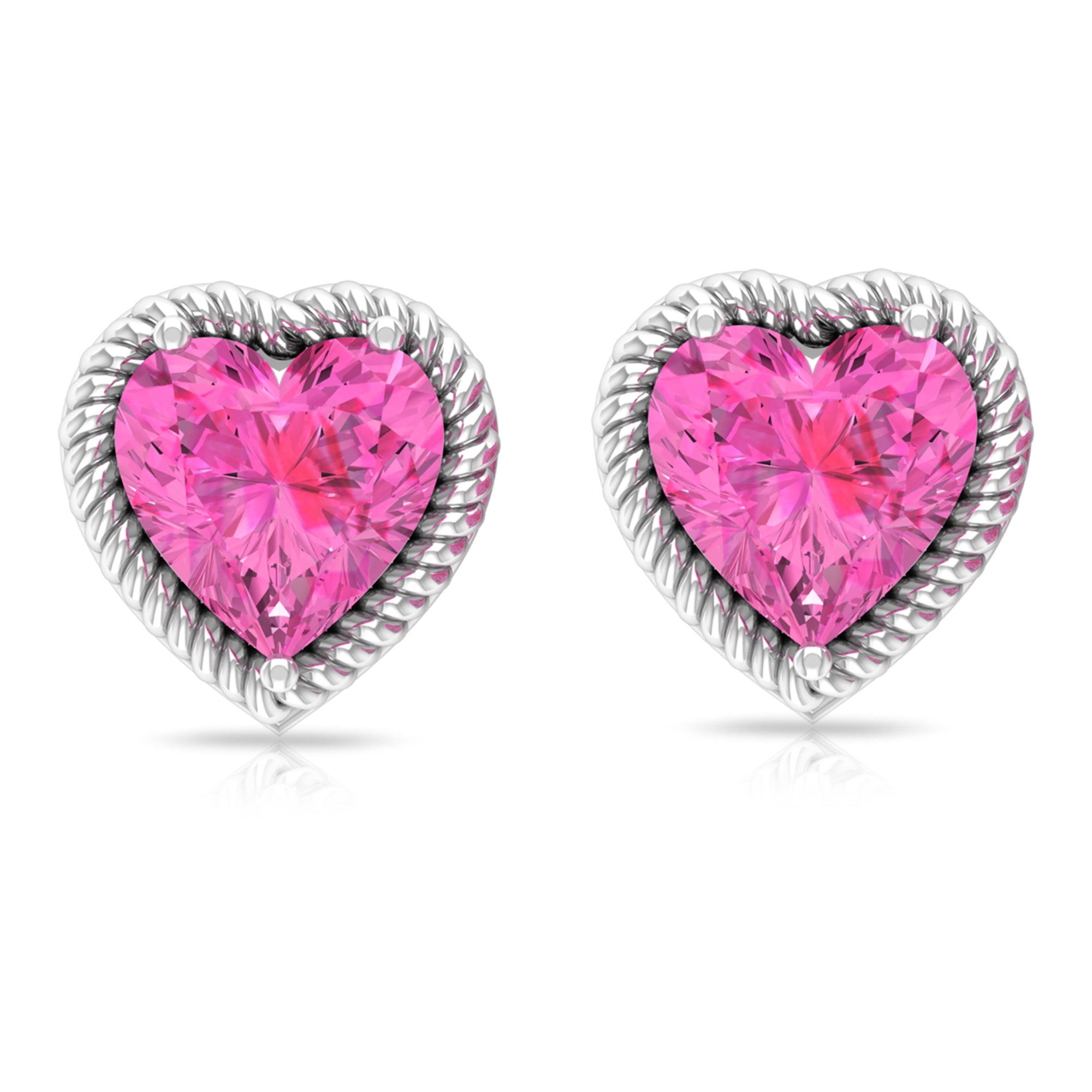 Heart Shape Pink Sapphire Solitaire Stud Earrings in Rope Frame