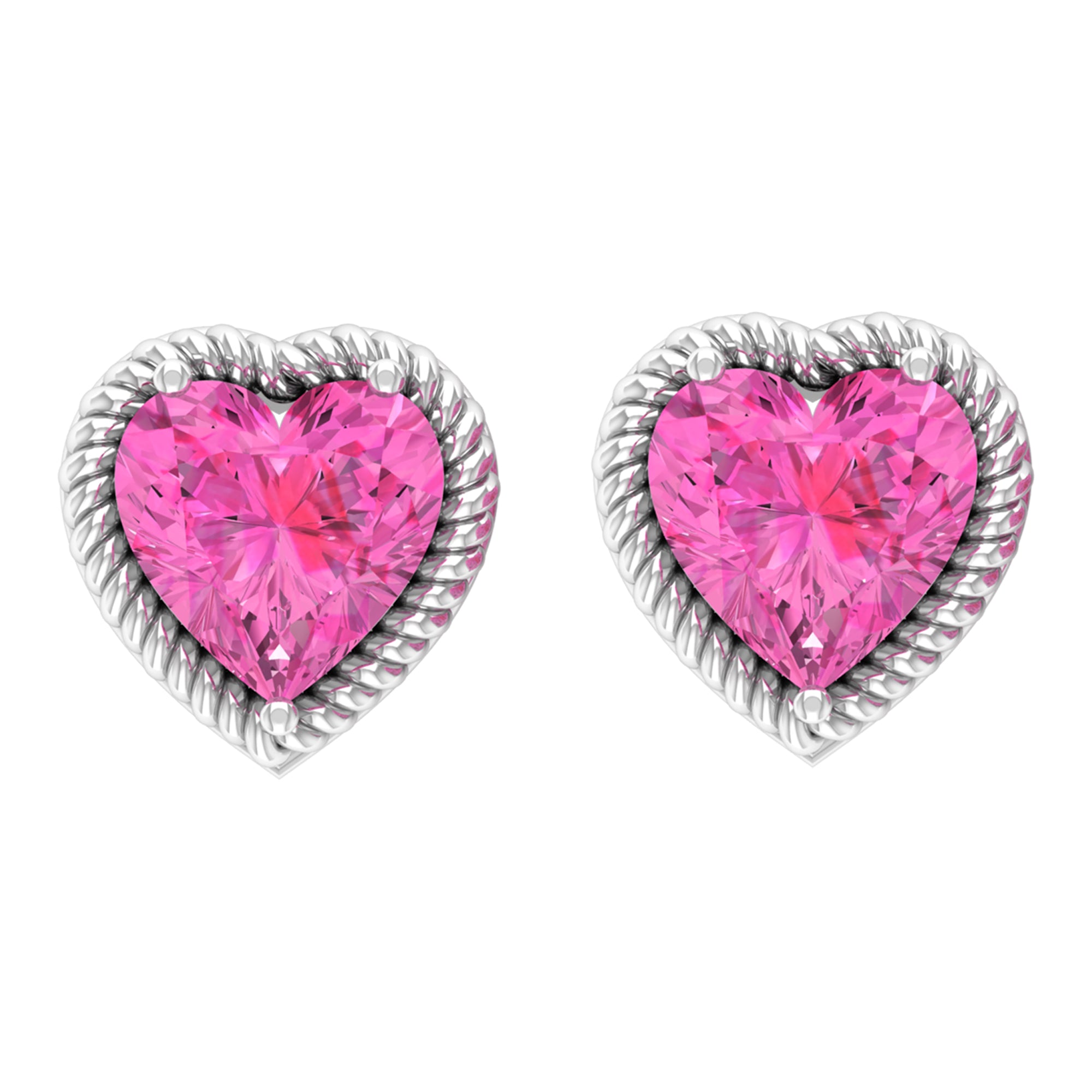Enchant her with these exceptional Solitaire Stud Earrings, a flawless embodiment of sophistication. These Rope Stud Earrings highlight a Heart Shape Pink Sapphire, elegantly nestled as a centerpiece within the intricately crafted Twisted Rope Detailing.