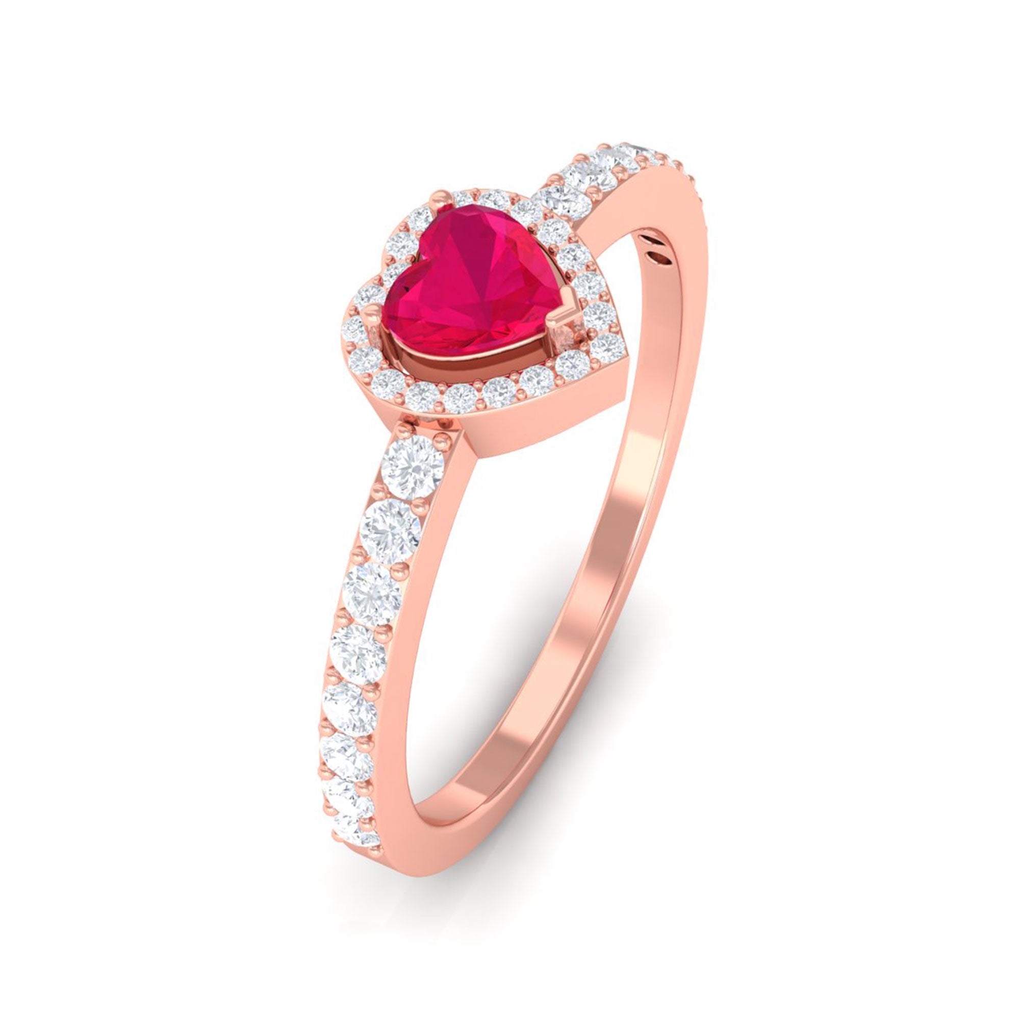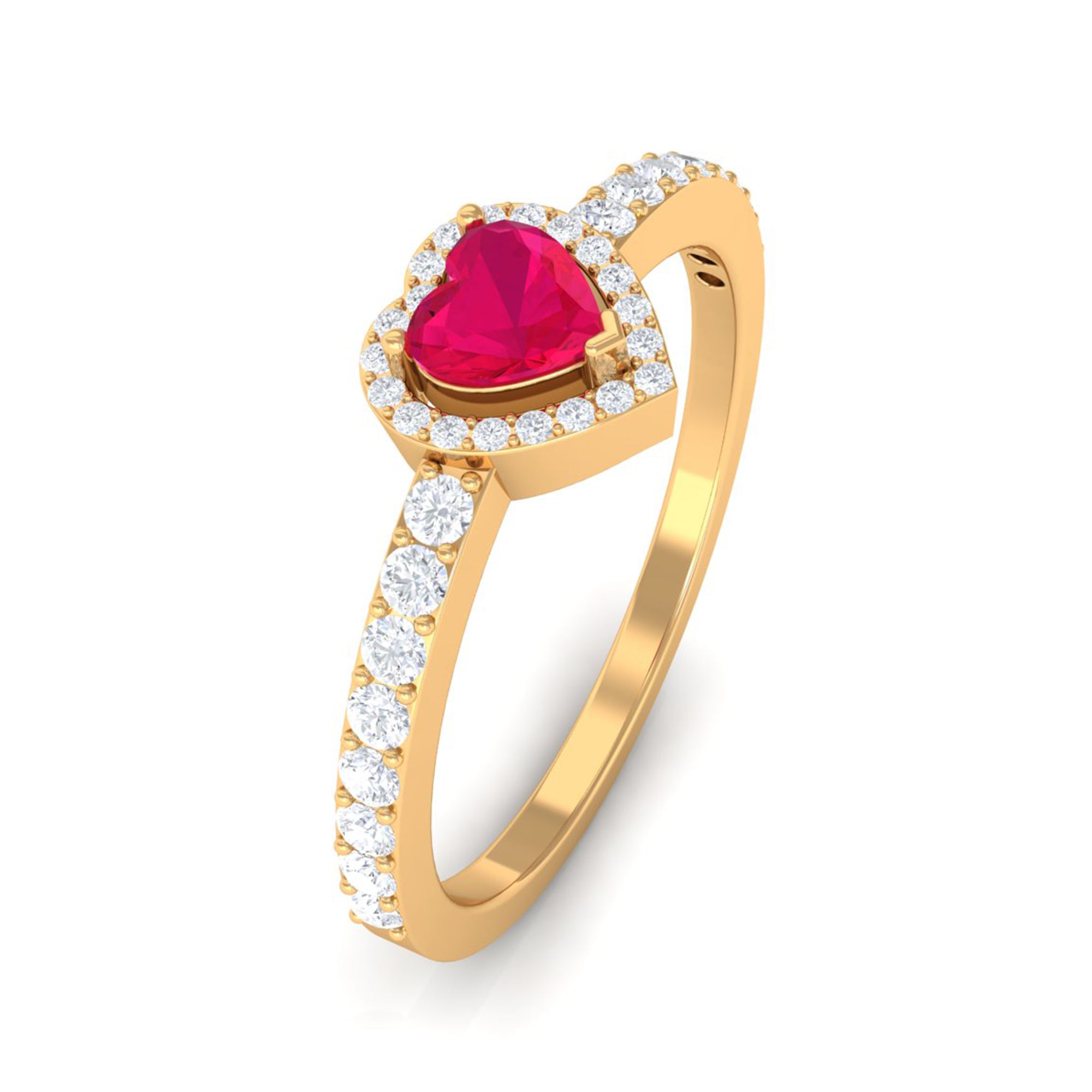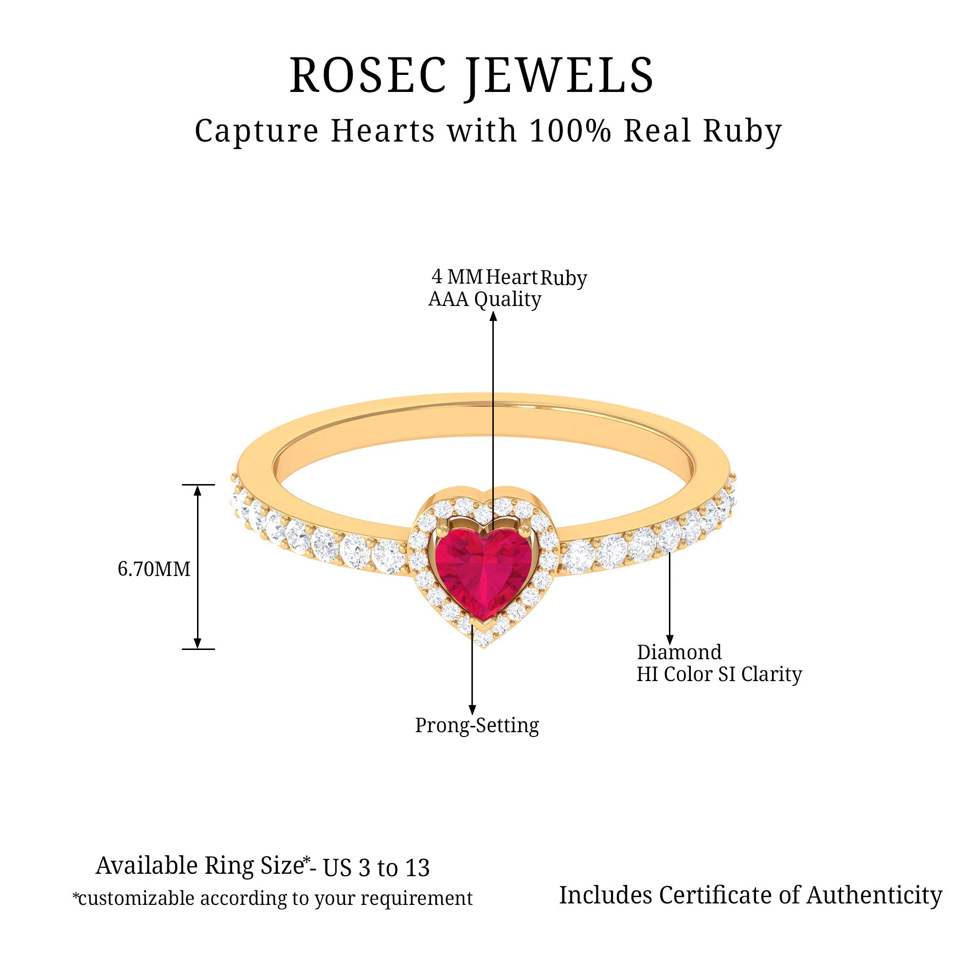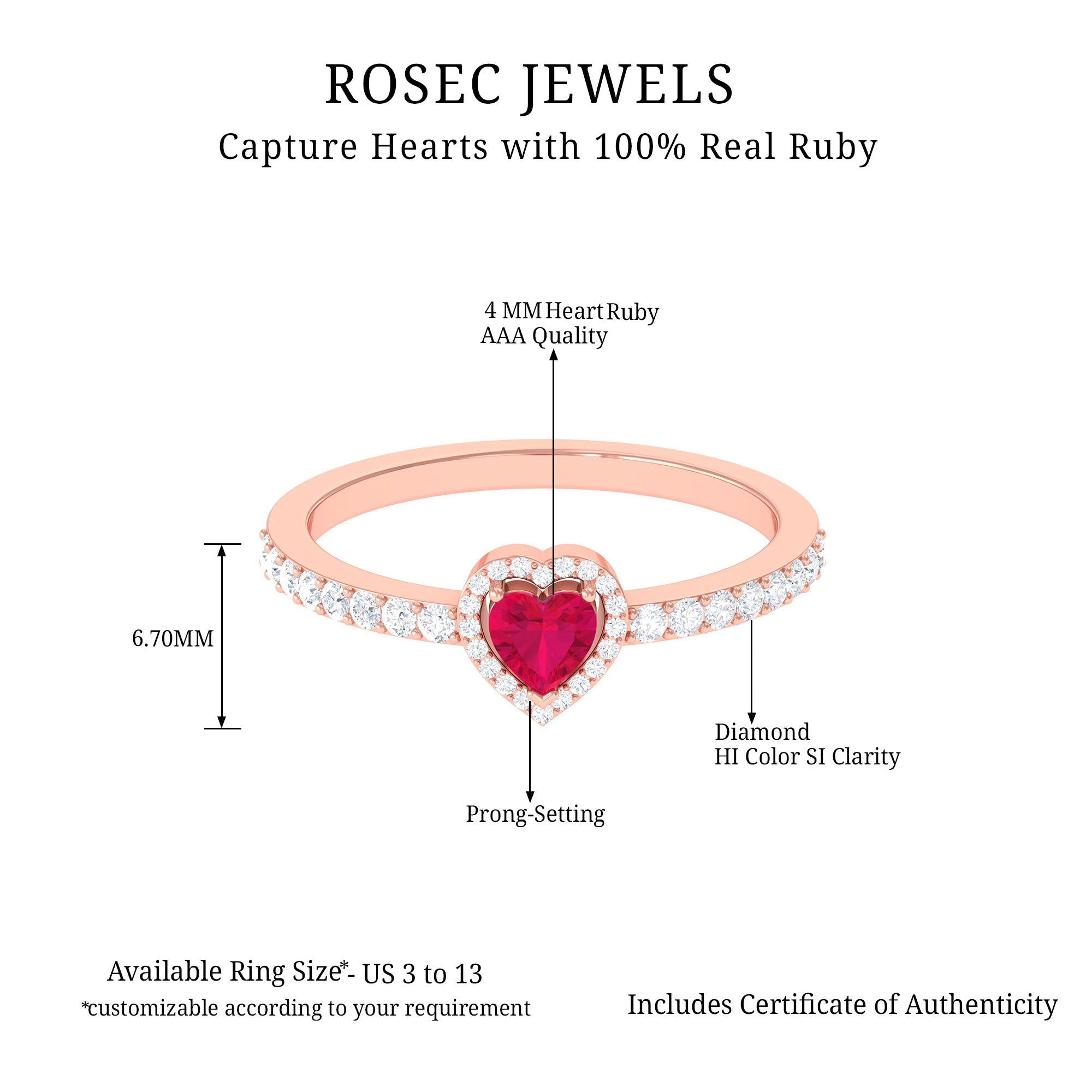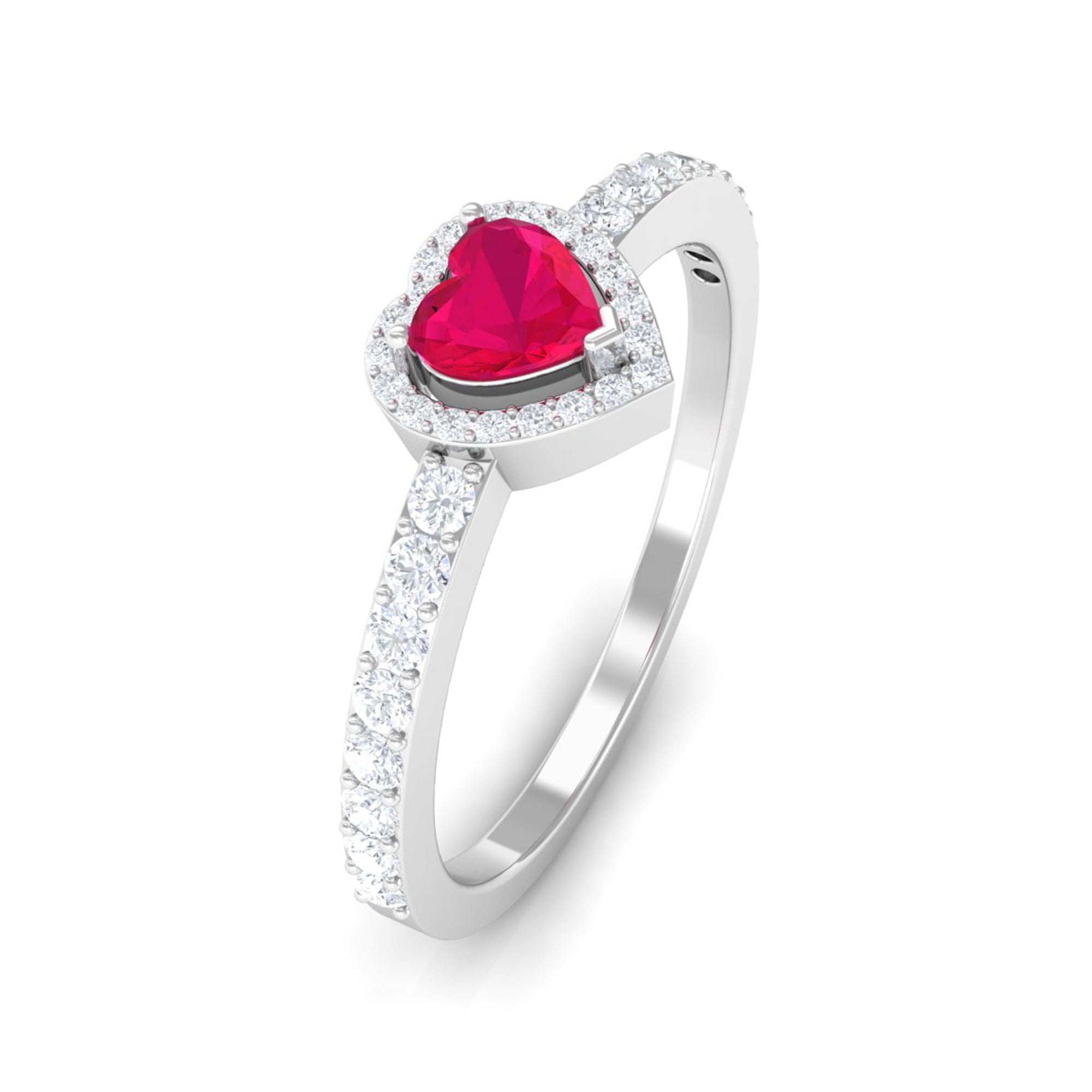 Heart Shape Ruby and Diamond Halo Engagement Ring