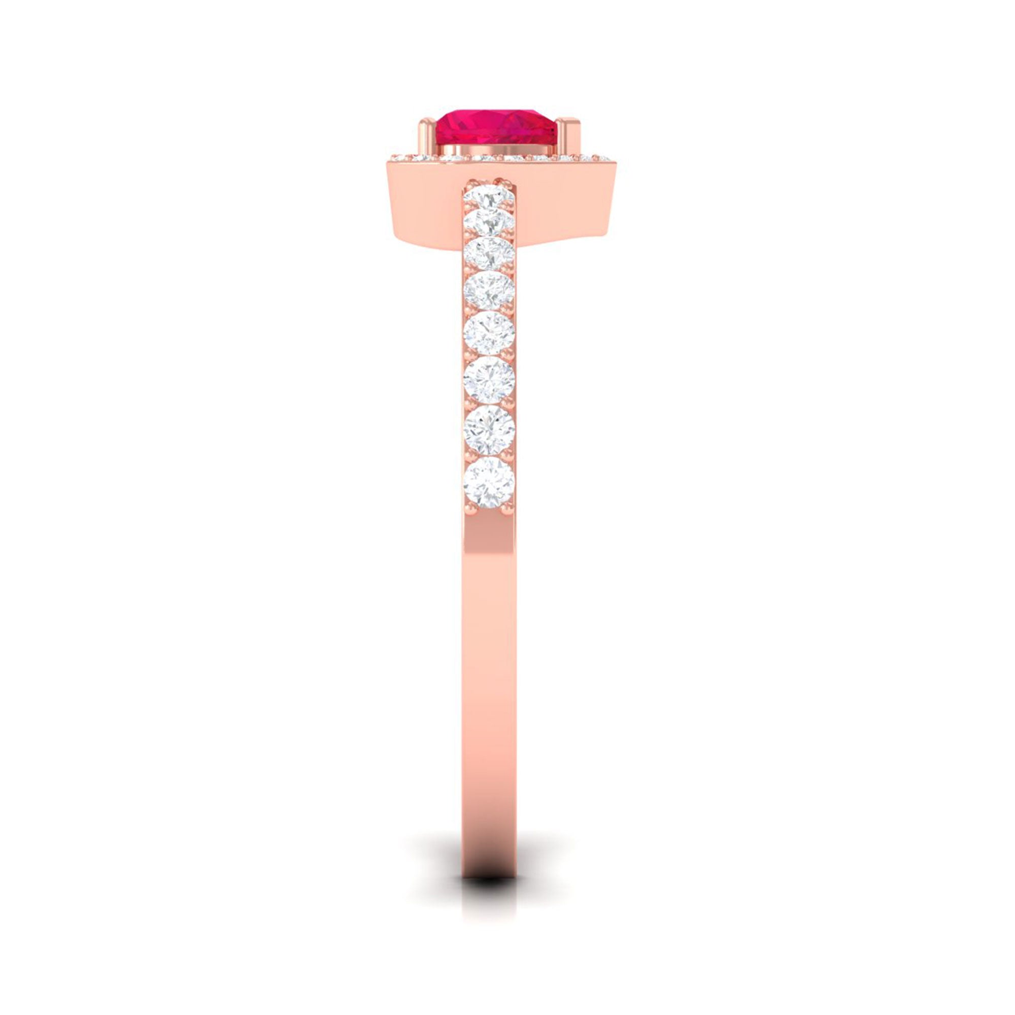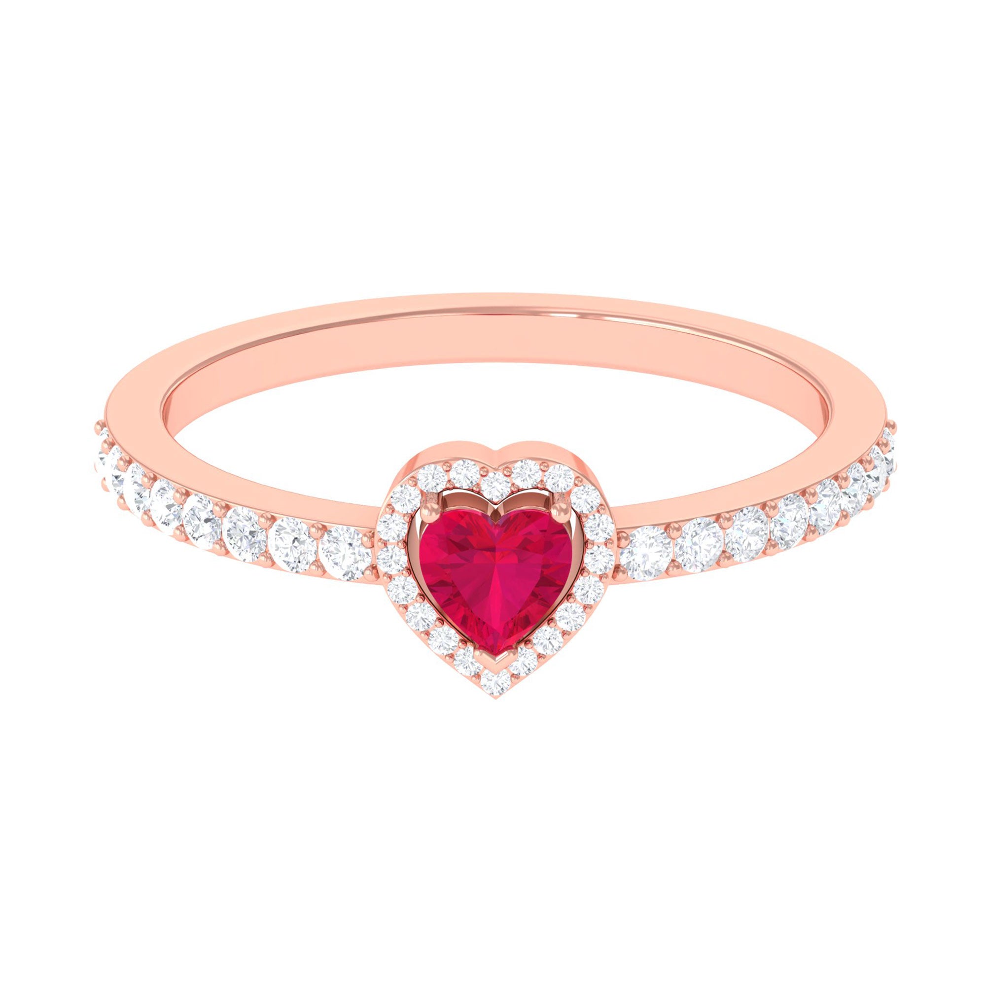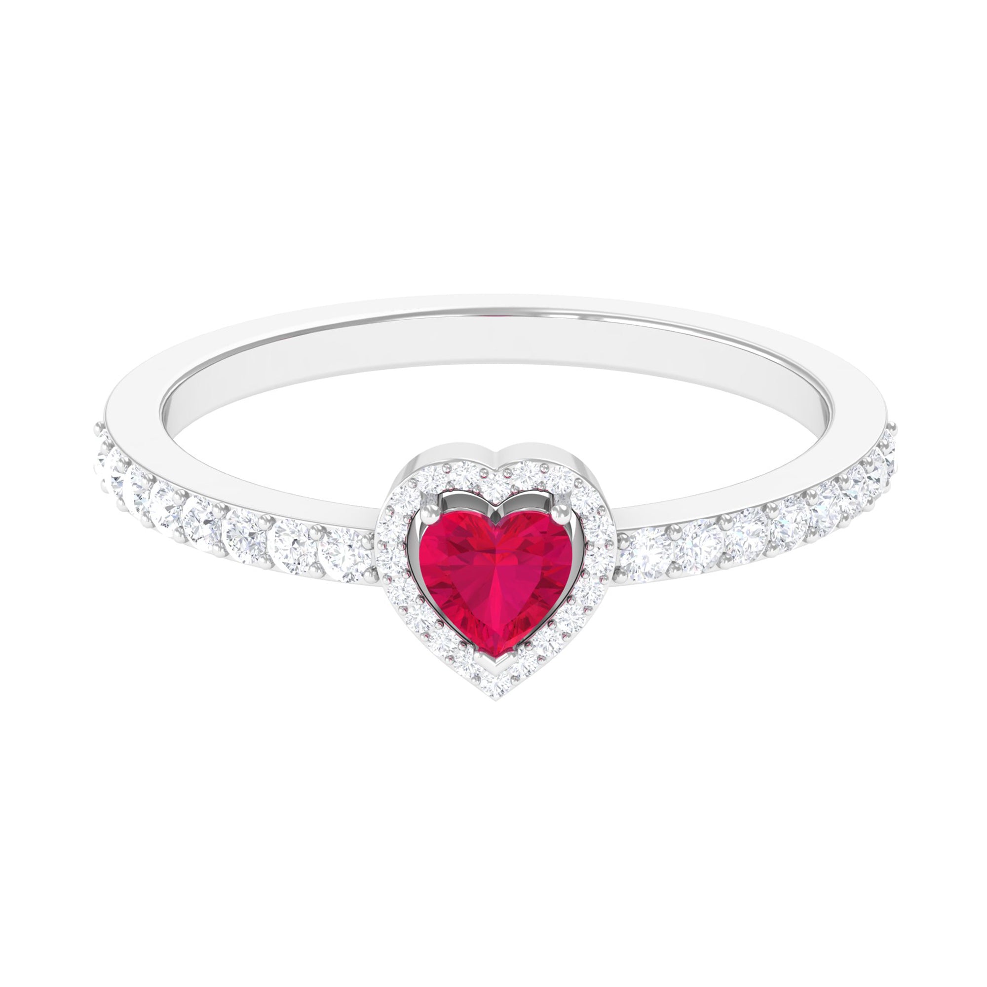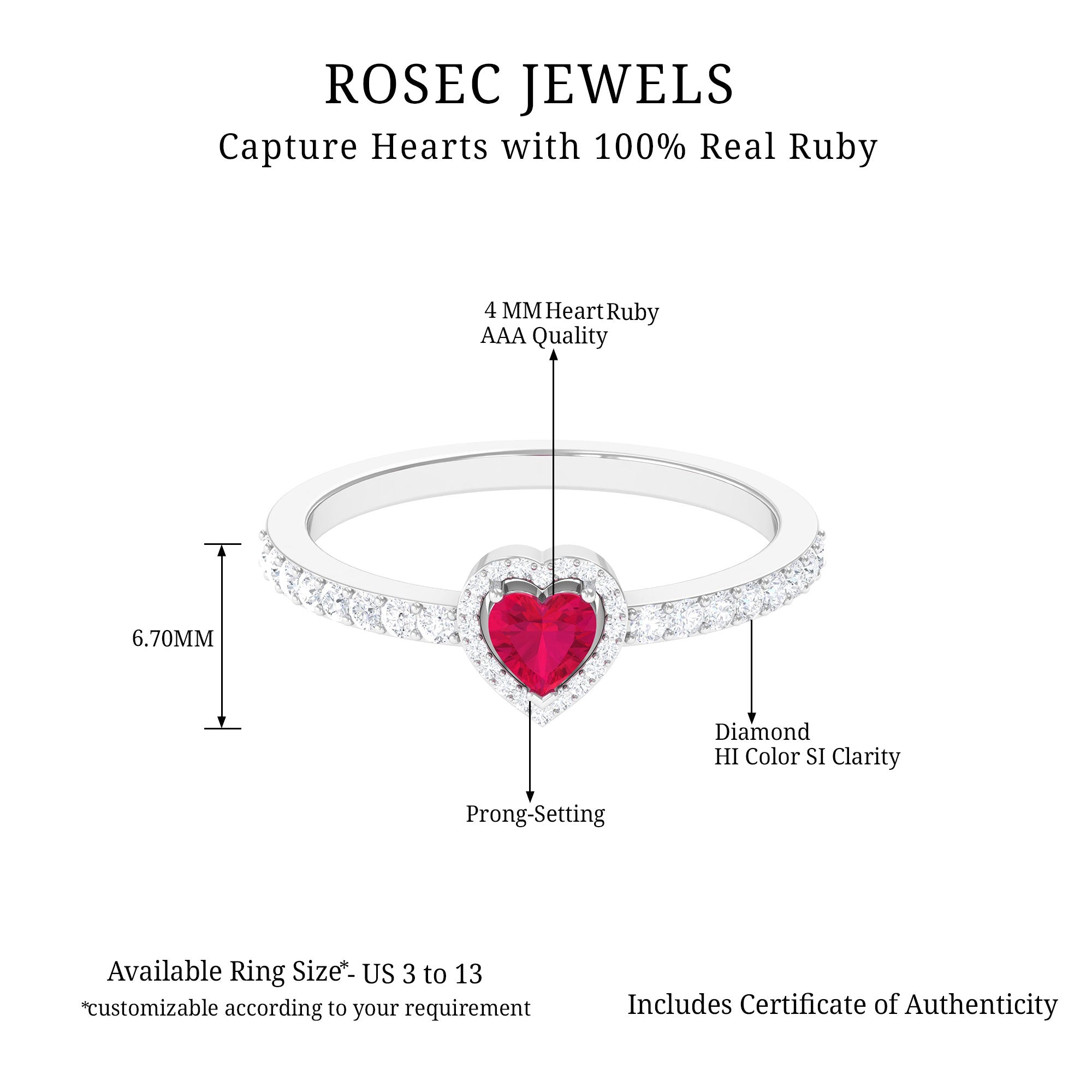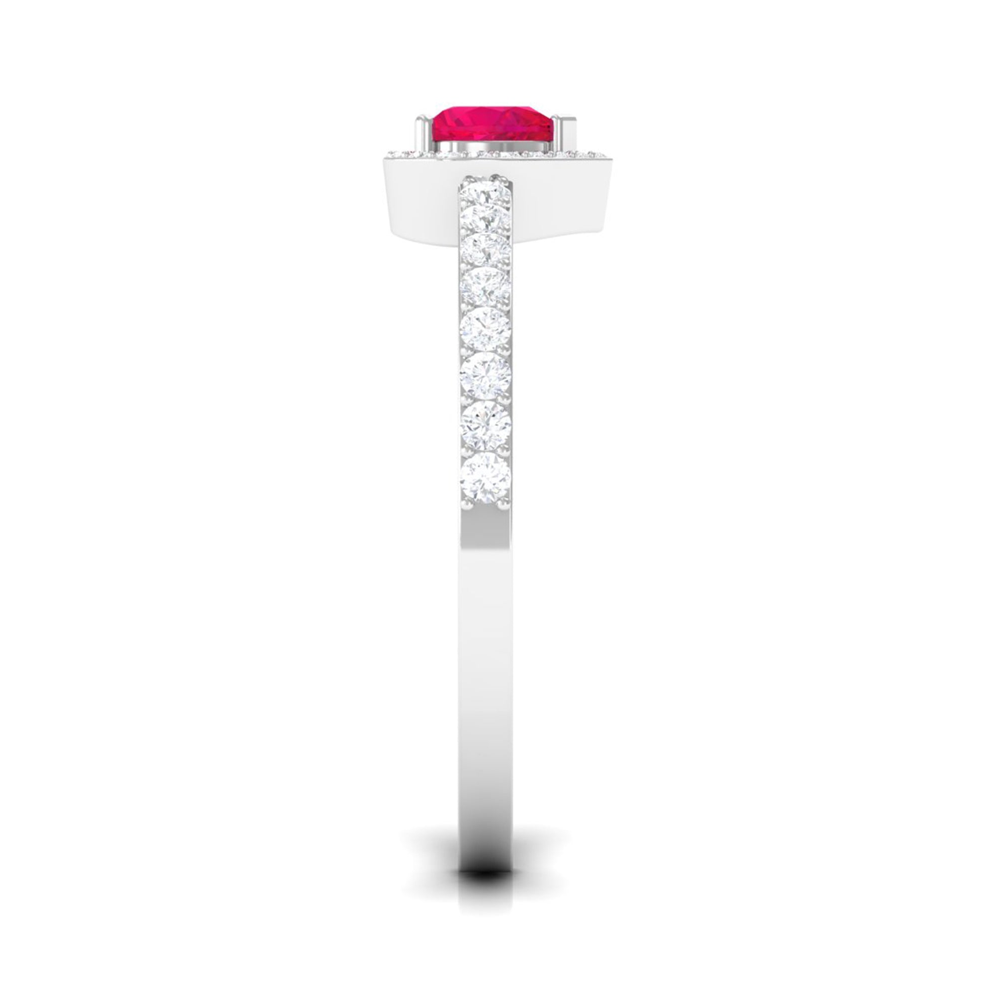 Heart Shape Ruby and Diamond Halo Engagement Ring