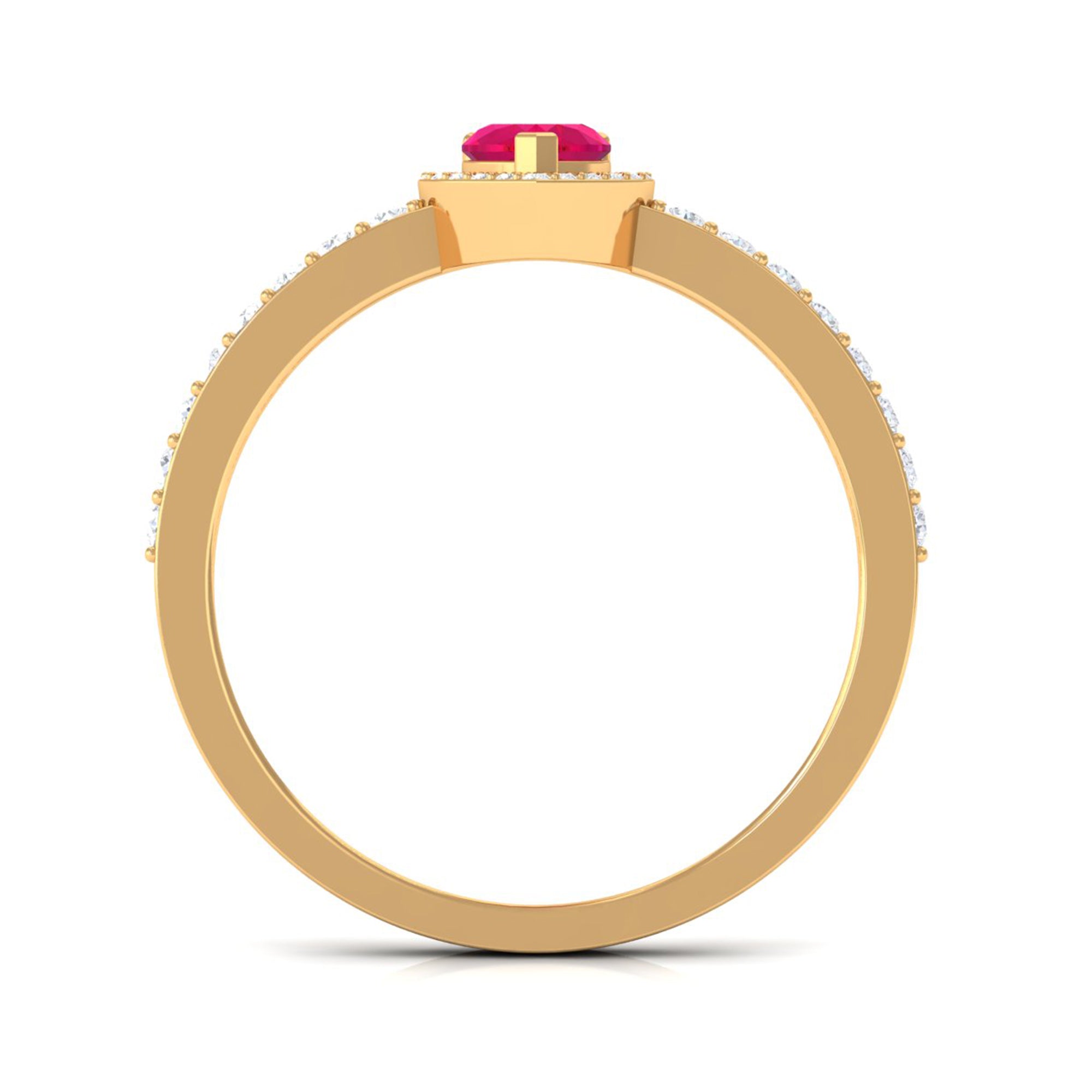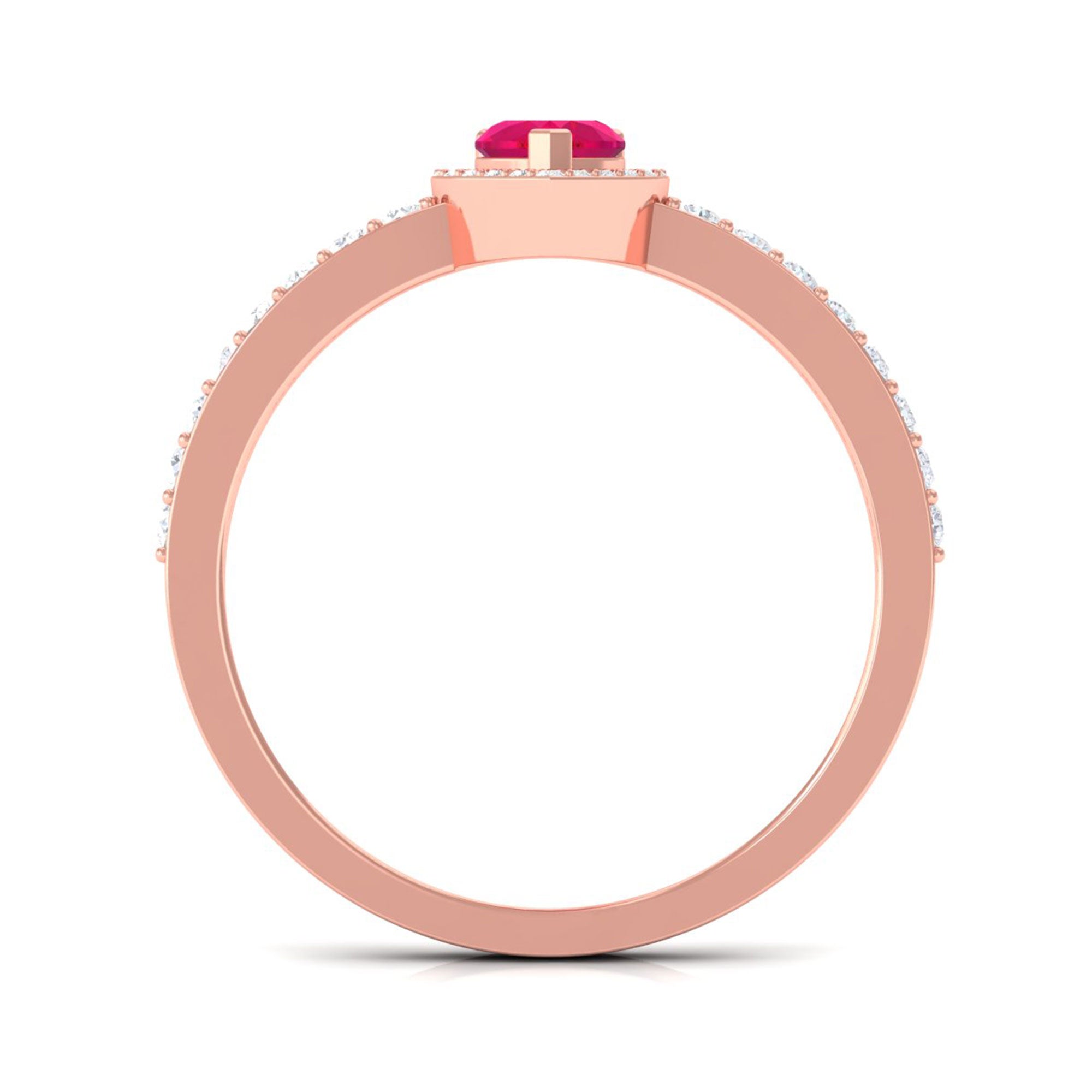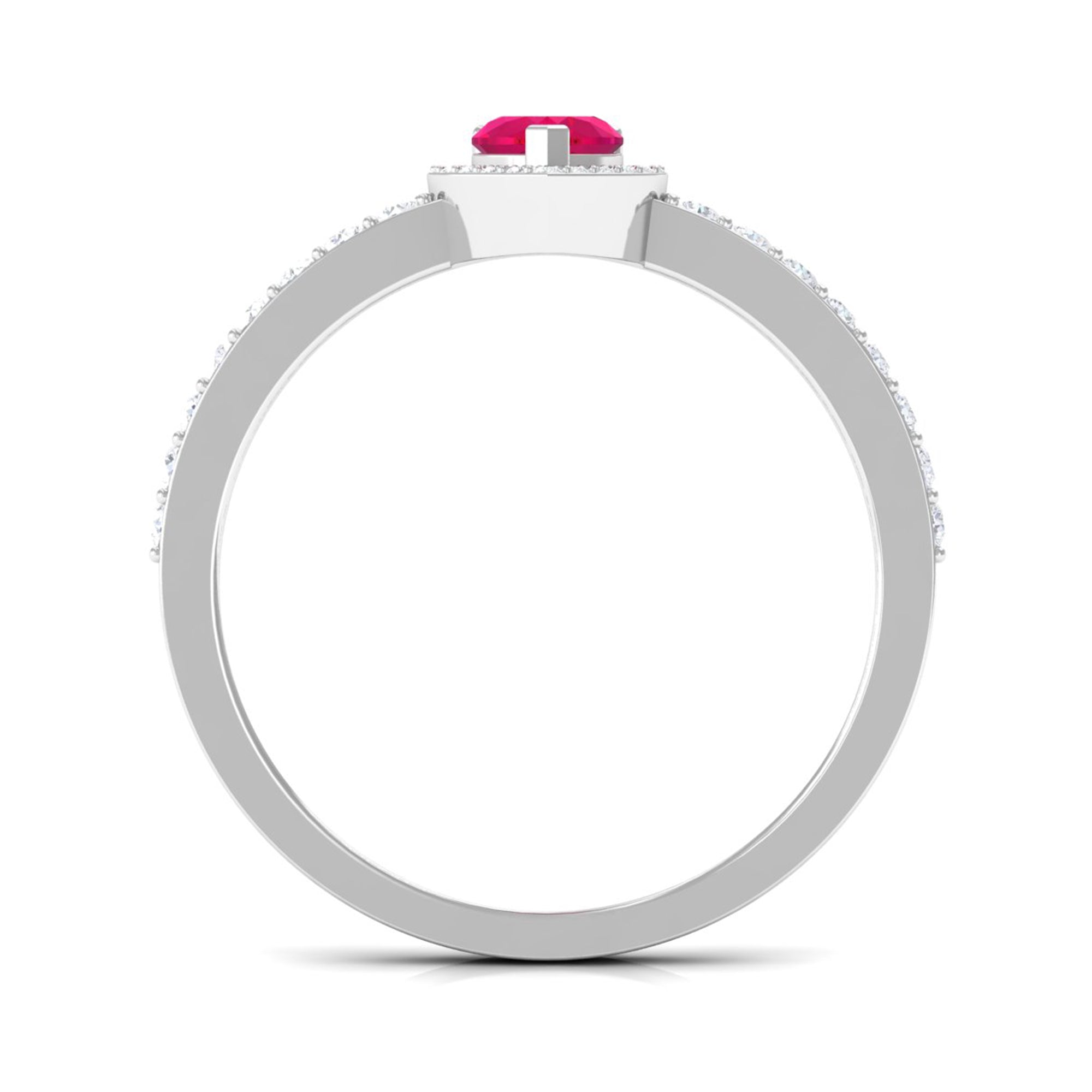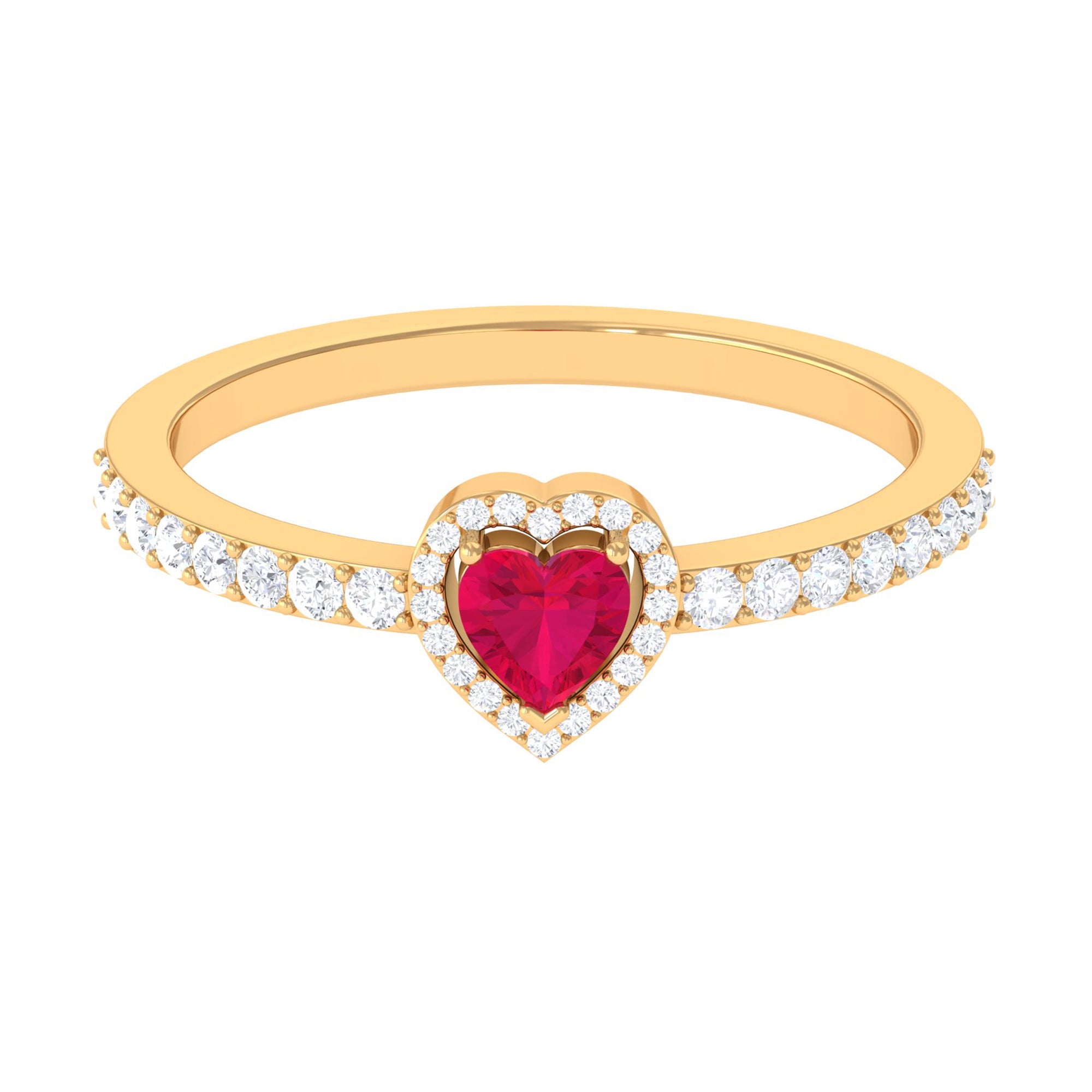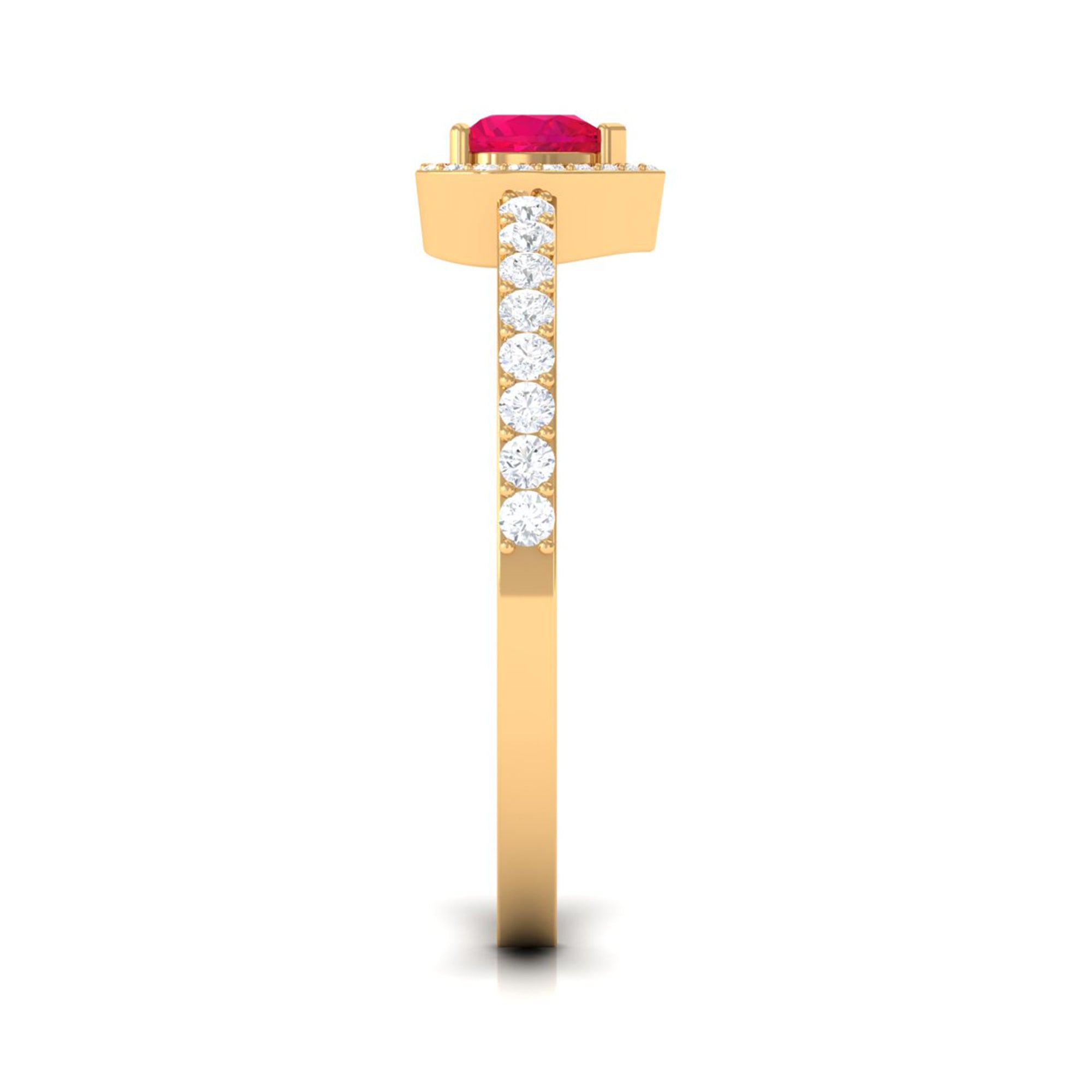 Heart Shape Ruby and Diamond Halo Engagement Ring