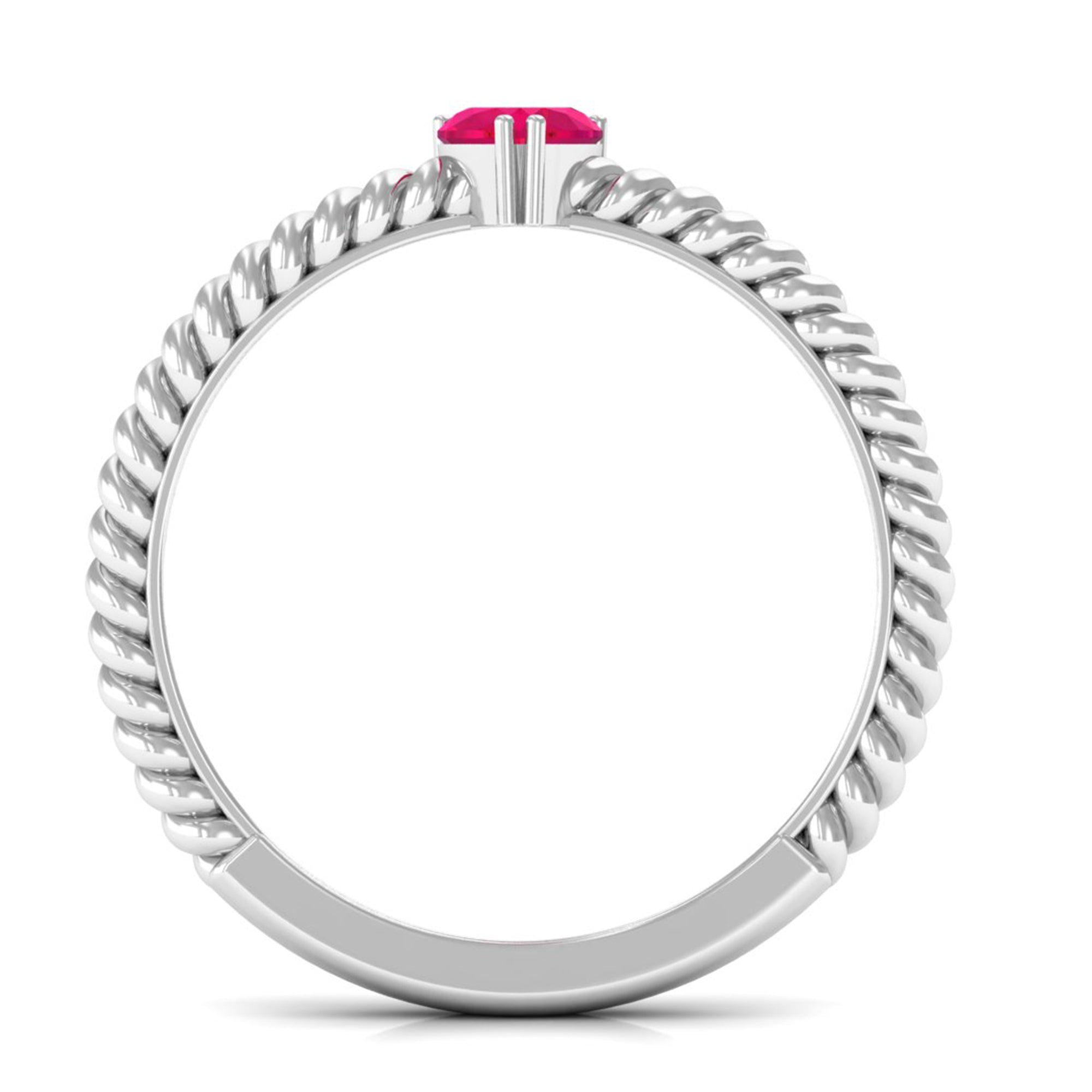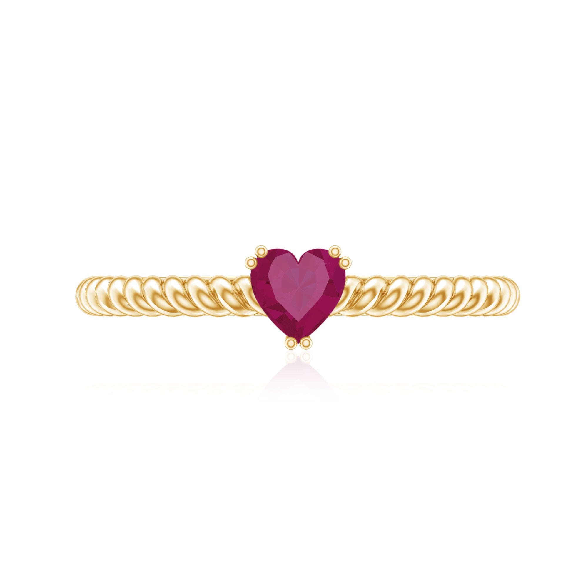 The beautiful dainty and striking Ruby Promise Ring represents an unconditional love for your special one. When modern meets stylish design with twisted rope details that add a special touch to your outfits. This Ring is adorned with a 4 mm Heart Shape Ruby in Double Prong Setting as Solitaire. This ring embodies simplicity and elegance, making it a meaningful symbol of love. Truly a versatile and beautiful Promise Ring for Her, representing a perfect anniversary, promise, or a July birthday. The center stone dazzles and sparkles with shine, symbolizing this sentiment. As a commitment symbol, this Heart Ruby Ring goes beyond just a pledge of love, creating the perfect symbol of your commitment and making a romantic gesture she will never forget.
