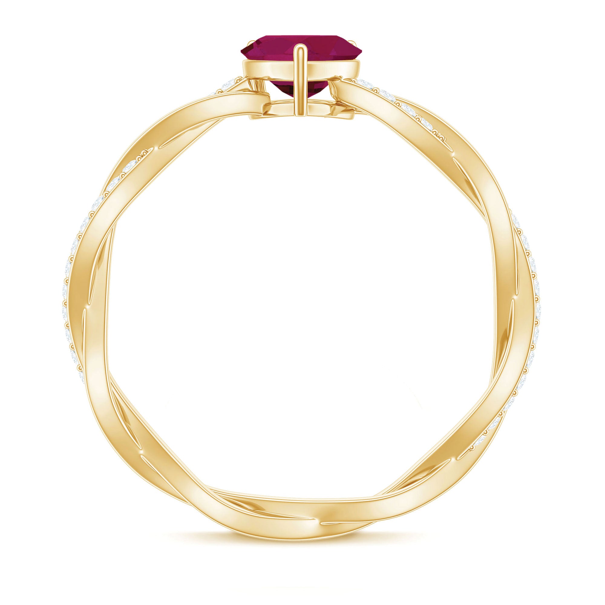 Heart Shape Solitaire Ruby and Diamond Braided Promise Ring