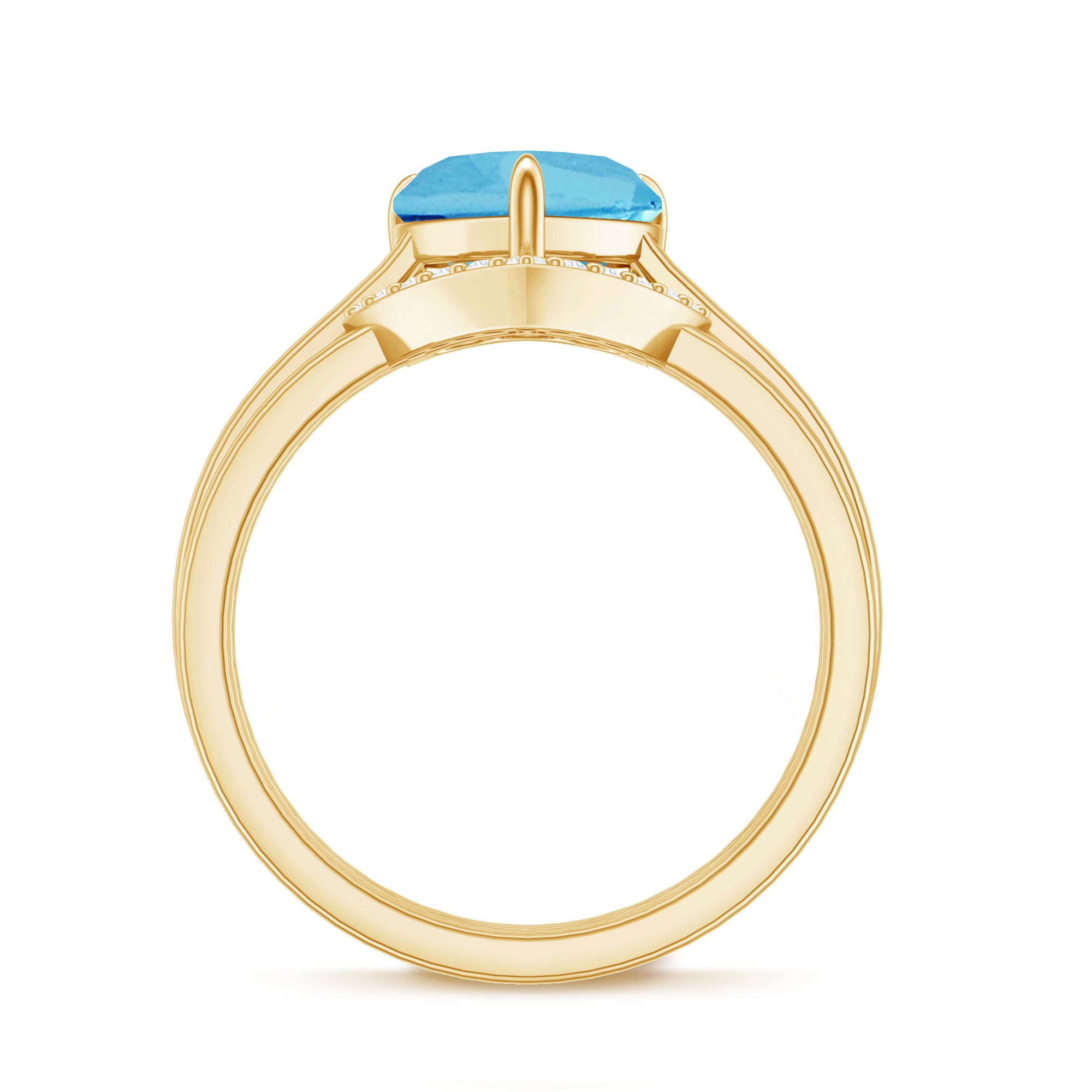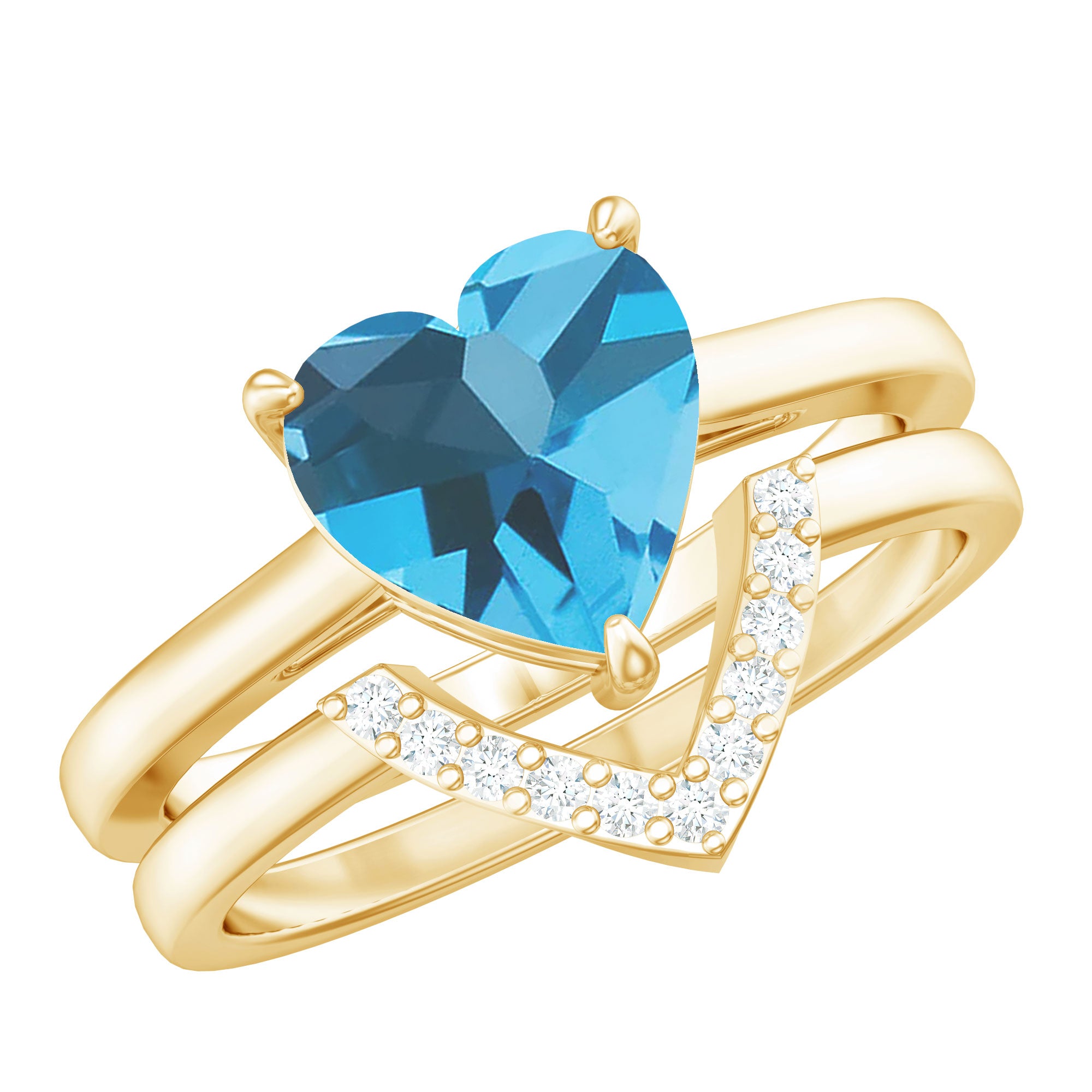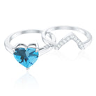 Heart Shape Swiss Blue Topaz Ring Set with Diamond
