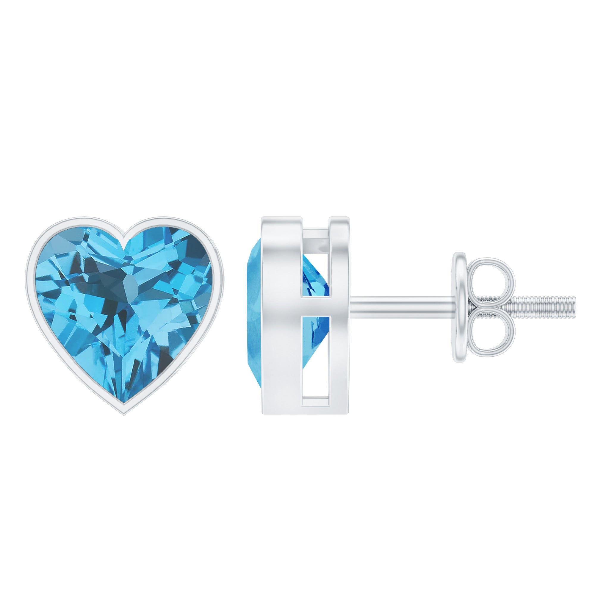 Bezel Set Swiss Blue Topaz Heart Stud Earrings