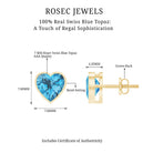 Explore the captivating allure of these Stud Earrings embellished with Heart Shaped Swiss Blue Topaz exquisitely set in bezel setting. Elevate your style effortlessly by pairing these Swiss Blue Topaz Earrings with your casual fit or evening ensemble. Adorned with Screw-Back Closures so you can flaunt them from day to night without any discomfort. The Swiss Blue Topaz Earrings are not just a stylish pair but also a versatile pair which make every occasion special.