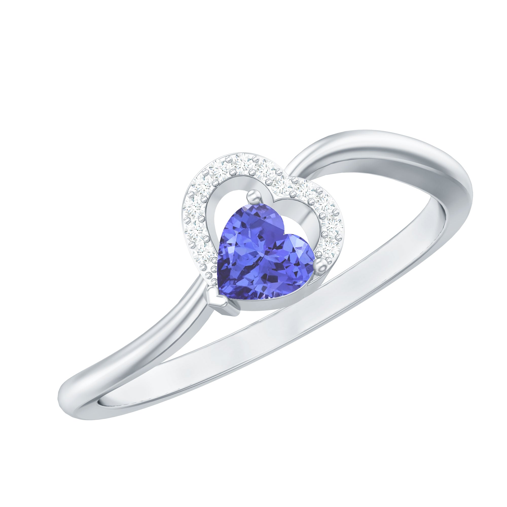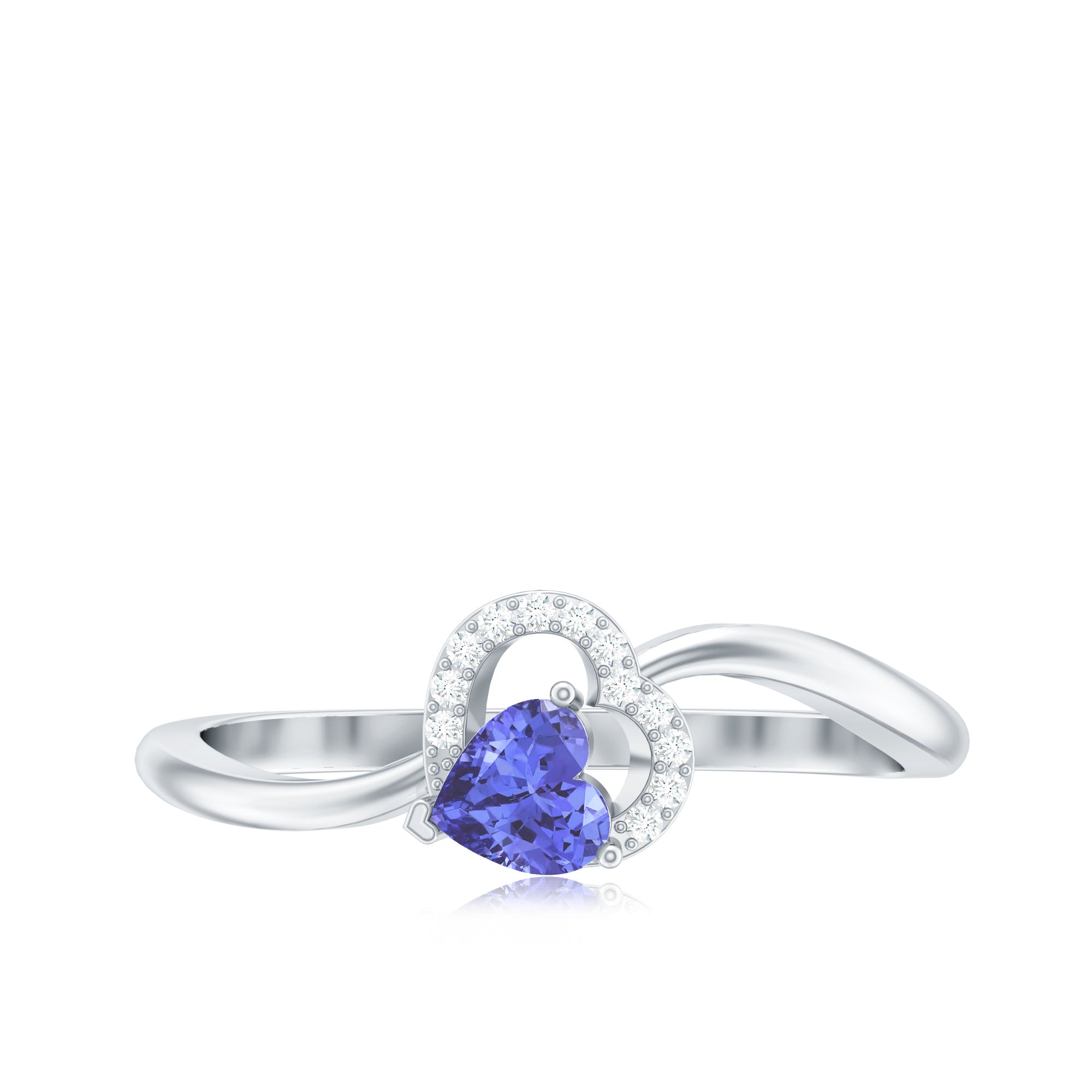 Heart Shape Tanzanite and Diamond Twisted Promise Ring