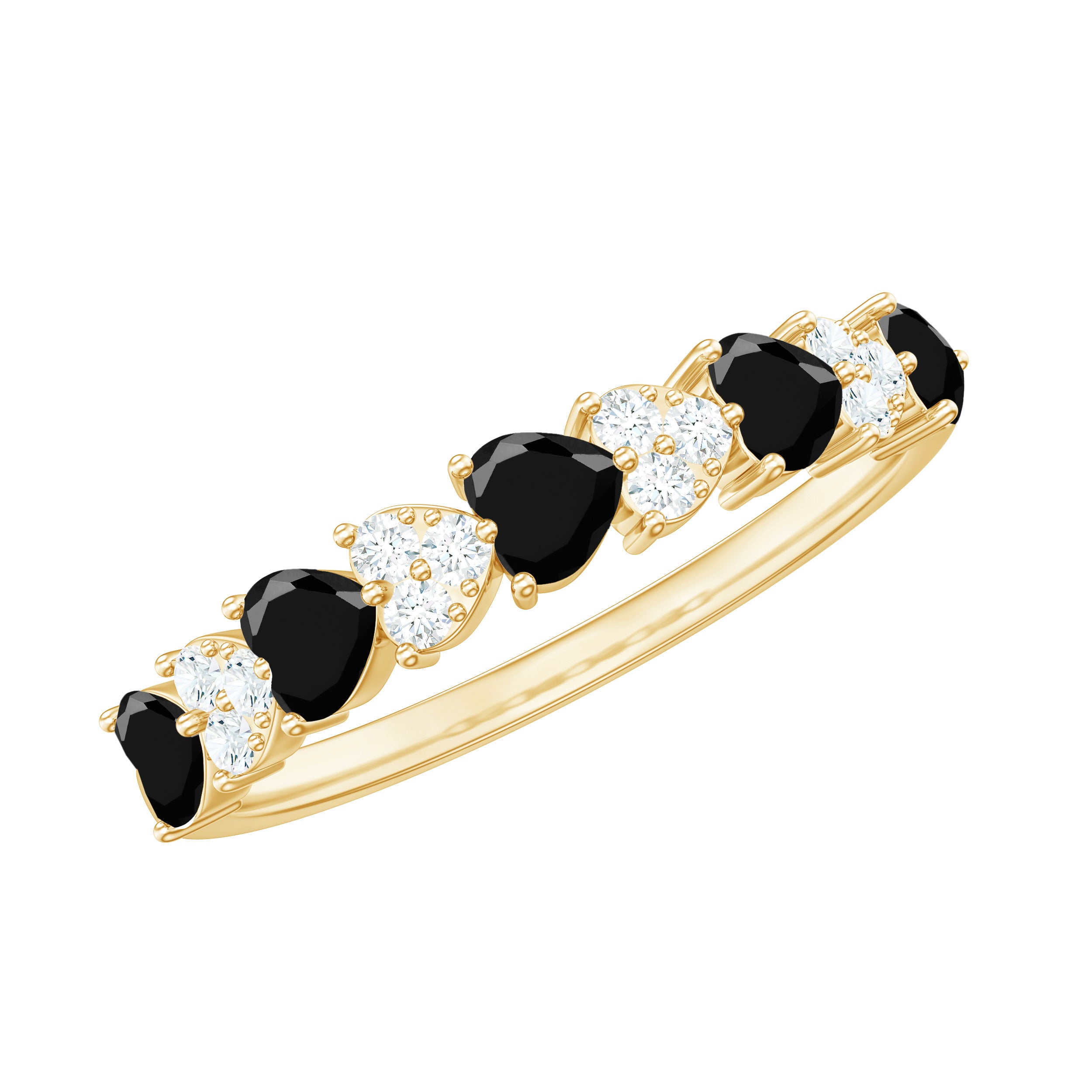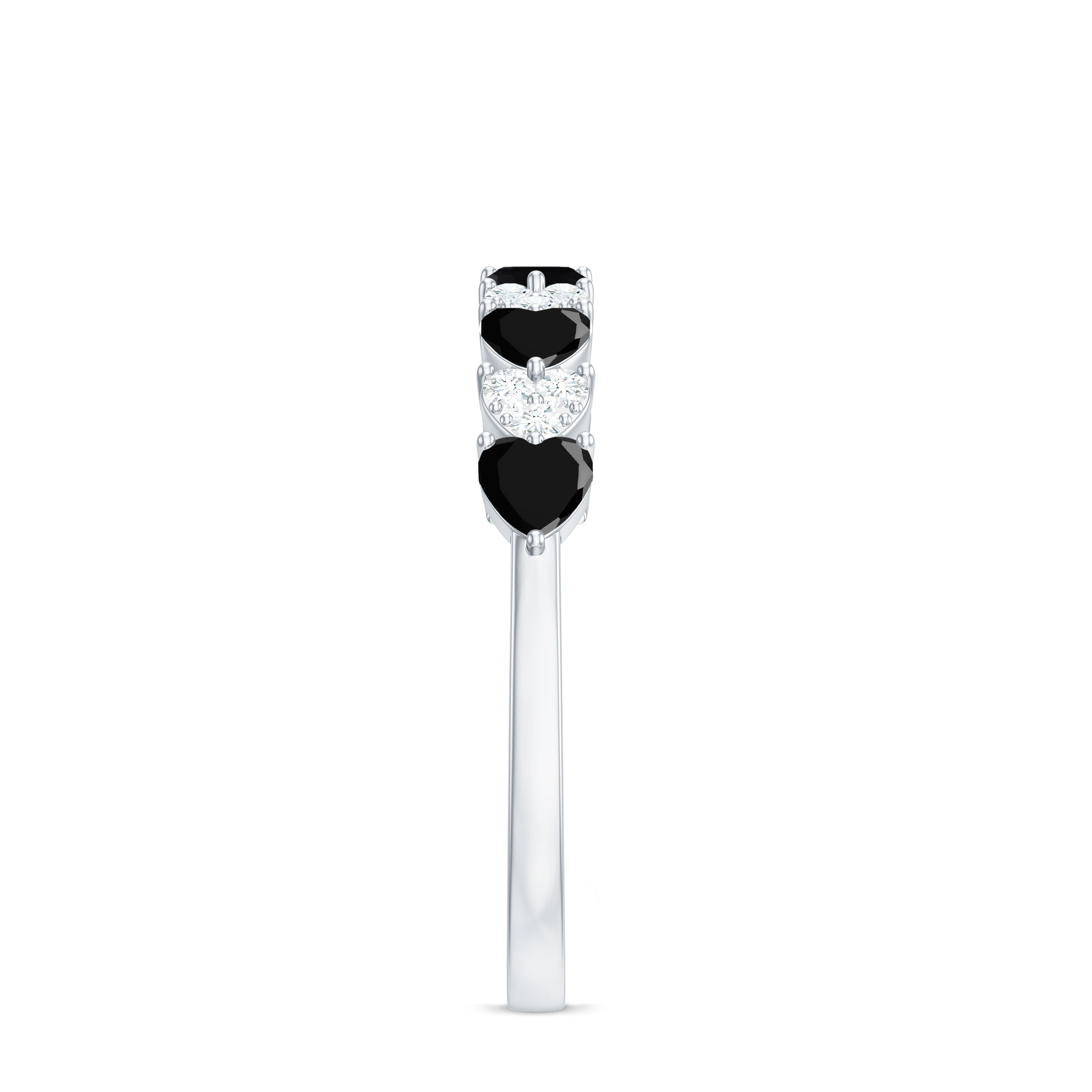 Heart Shaped Black Onyx and Diamond Half Eternity Ring