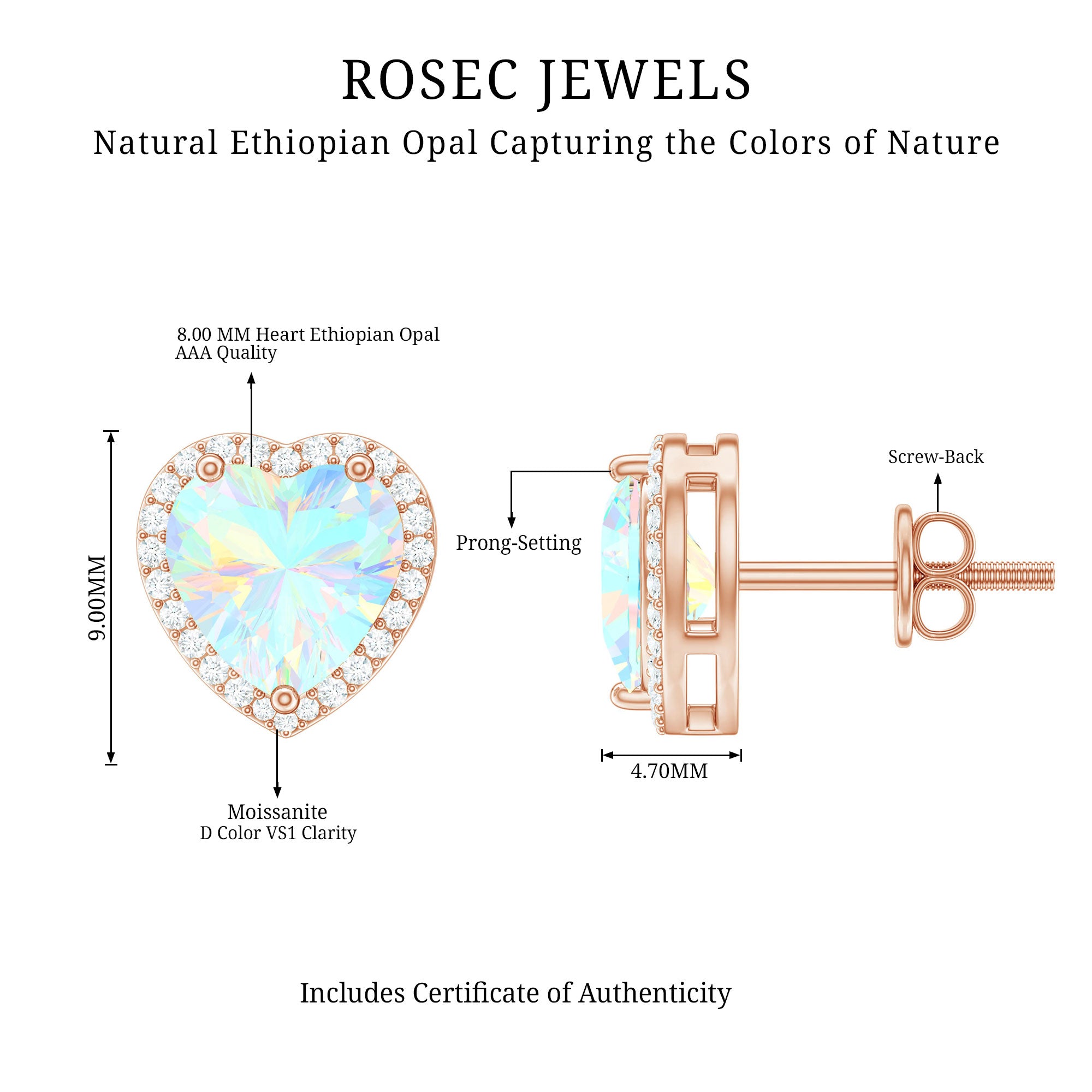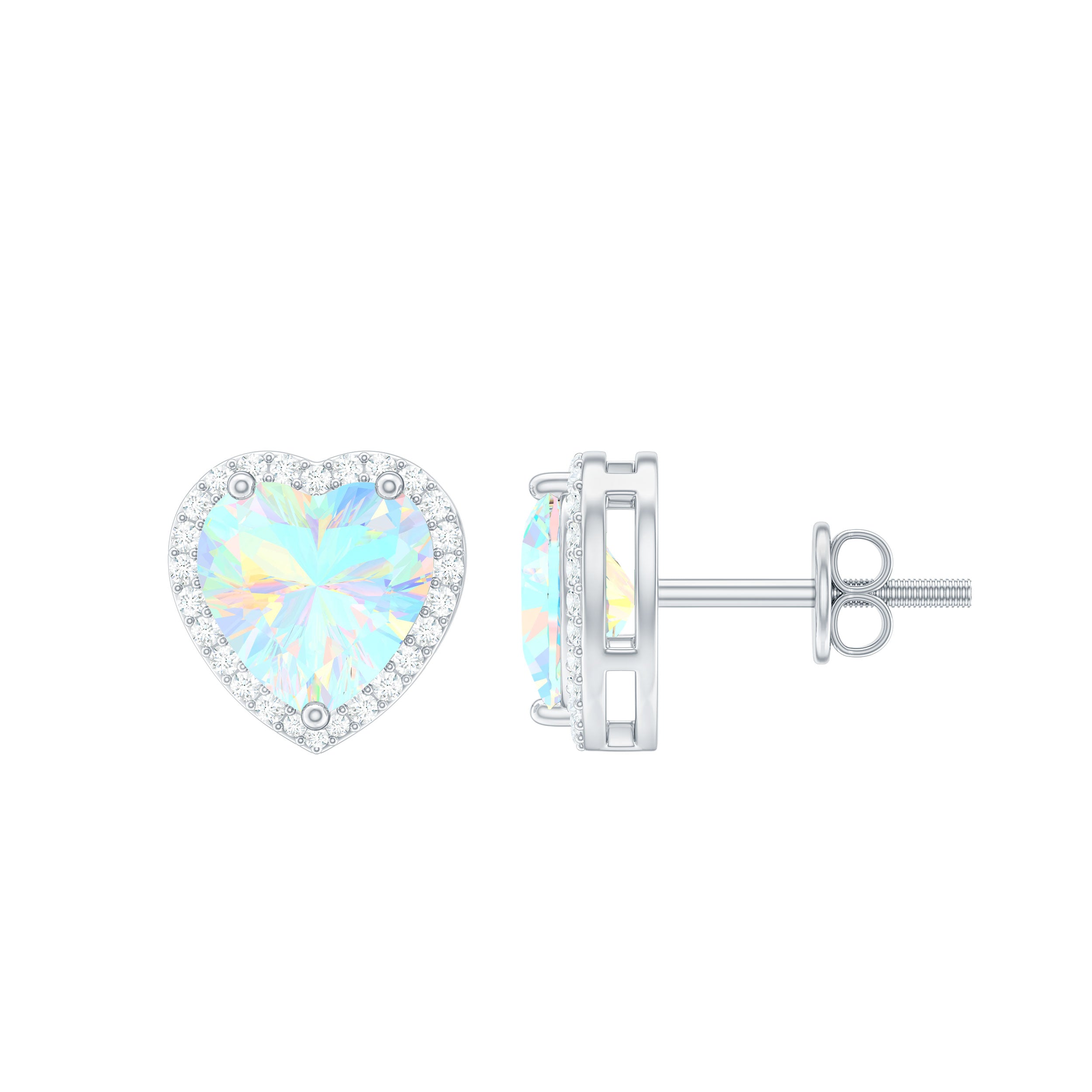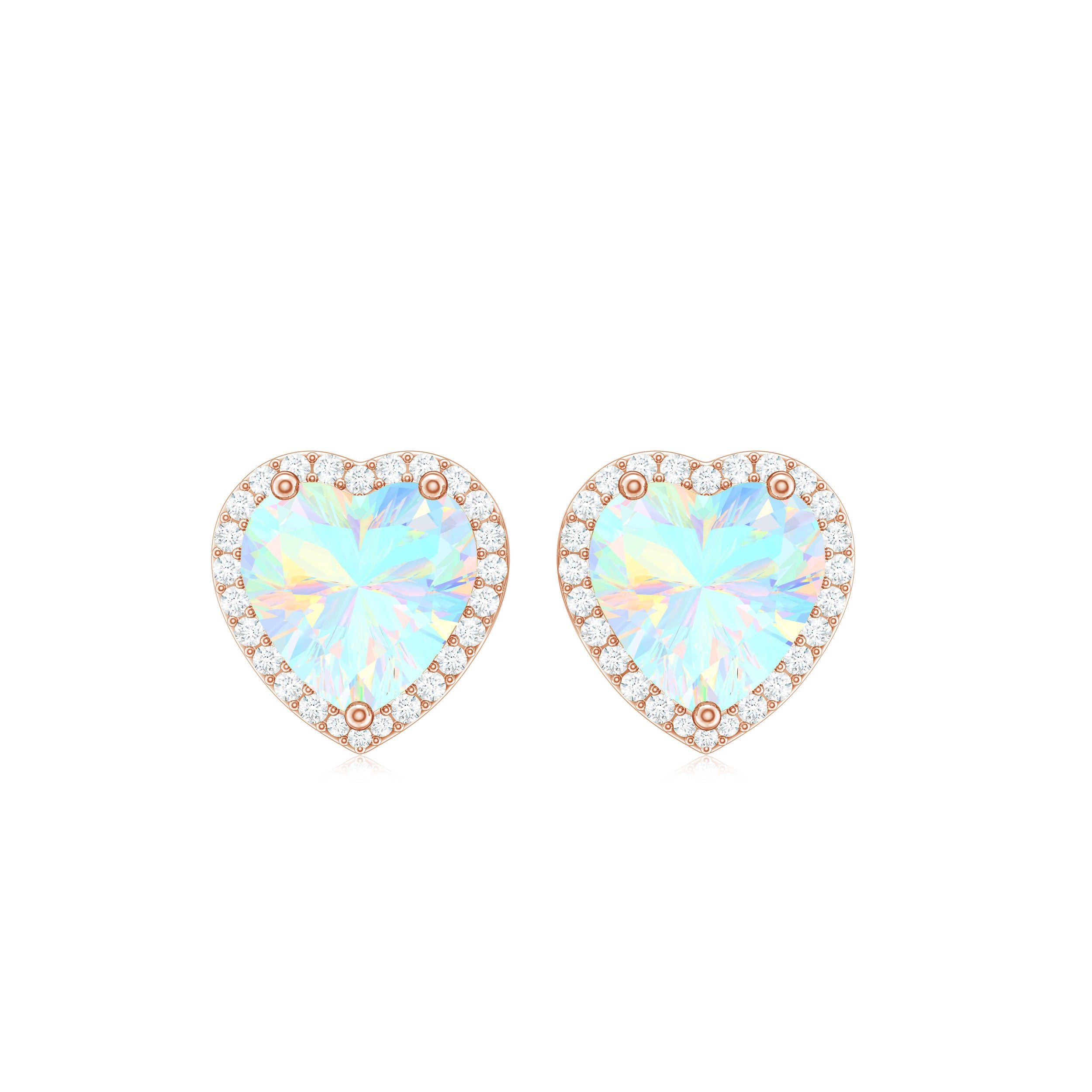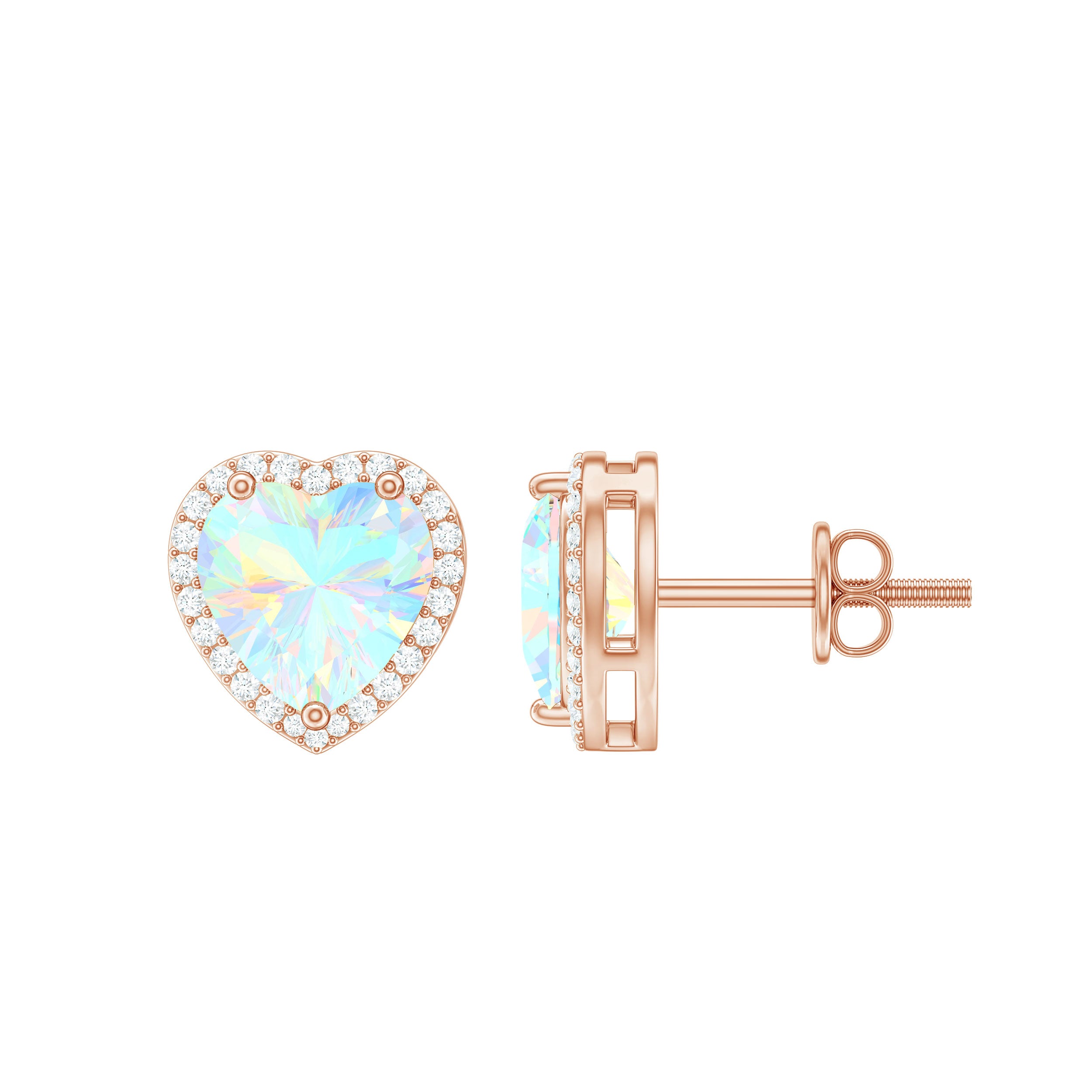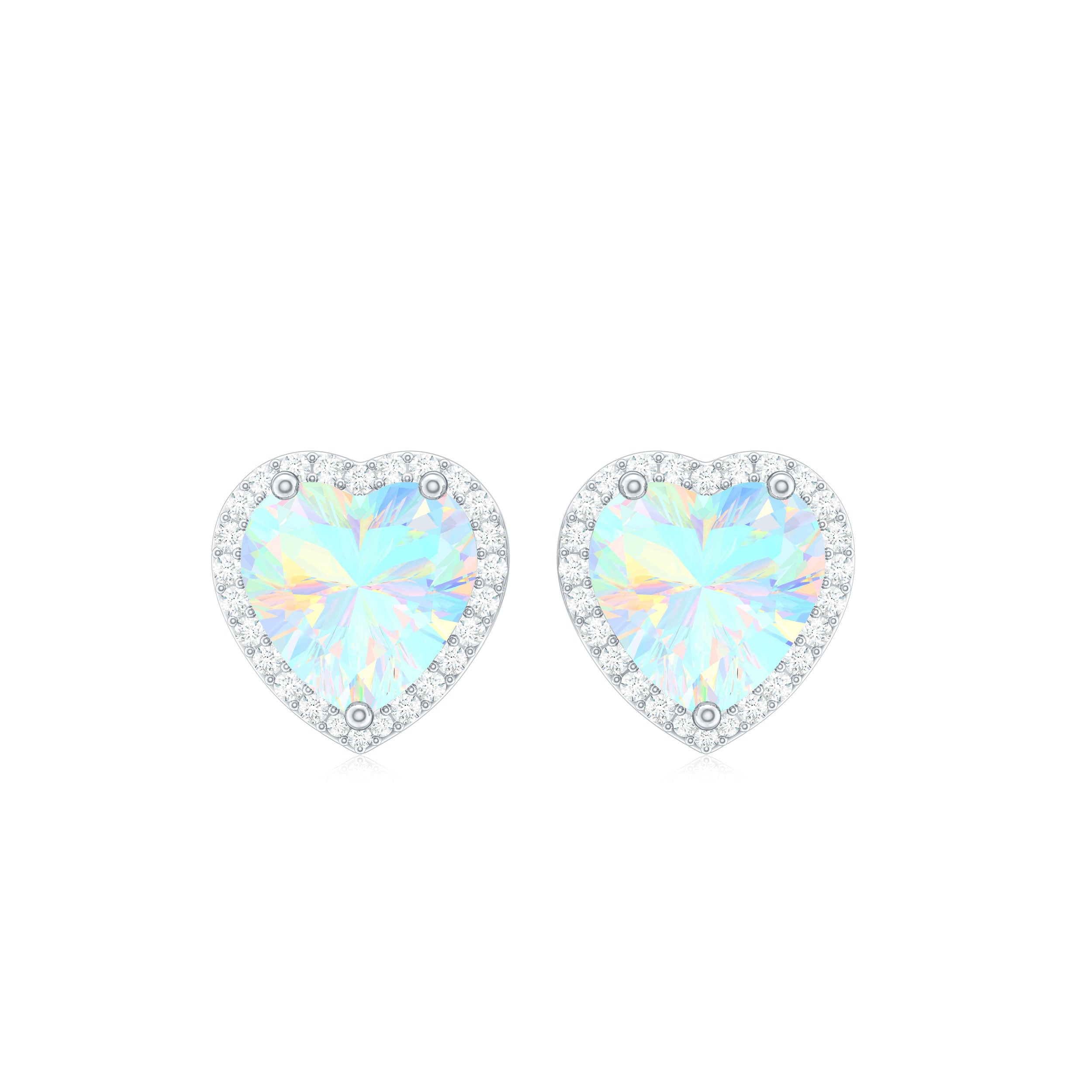 Heart Shaped Ethiopian Opal Stud Earrings with Moissanite Halo