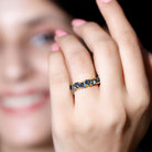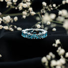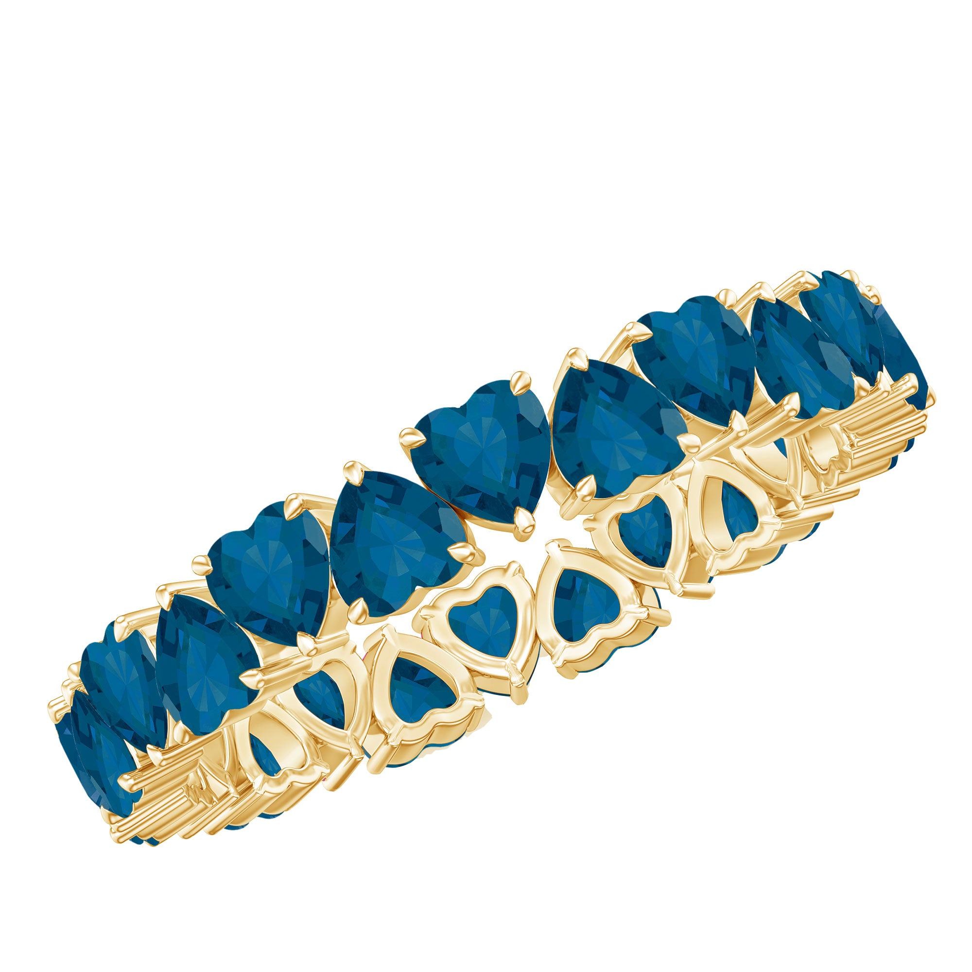 Enhance your jewelry collection with the timeless elegance of this London Blue Topaz Eternity Band. This wedding band is crafted to merge simplicity with a bold aesthetic, making it ideal for daily wear or significant occasions. A continuous circle of 4MM heart shape London Blue Topaz stones encircles the band, each stone securely held in a claw setting. The stones are arranged closely in a upside down style in an alternating pattern resulting in a refined appearance that embodies both modernity and tradition. This full eternity ring is distinguished by its royal blue hue, providing a graceful accent that complements any attire. You can wear it solo for a striking, sophisticated look, or layer it with other bands to express your individual style. Made with AAA quality natural london blue topaz, this Eternity Wedding Band guarantees enduring beauty and reliable craftsmanship. Its sleek design makes it a considerate gift for those born in December or for anyone who resonates with the strength and grounding properties of topaz. Whether commemorating a special occasion or simply enhancing your ring collection, this Heart Anniversary Band is both adaptable and significant. It is a favored choice for anyone who appreciates understated luxury and everyday assurance. Customers can choose from a variety of metal colors and types, enabling them to create a truly unique ring. This Topaz Eternity Ring is offered in US sizes 3 to 13, ensuring a comfortable and precise fit. With its stunning stones and unique design, it is a beloved piece that can be worn every day or stacked with other rings for a customized look.