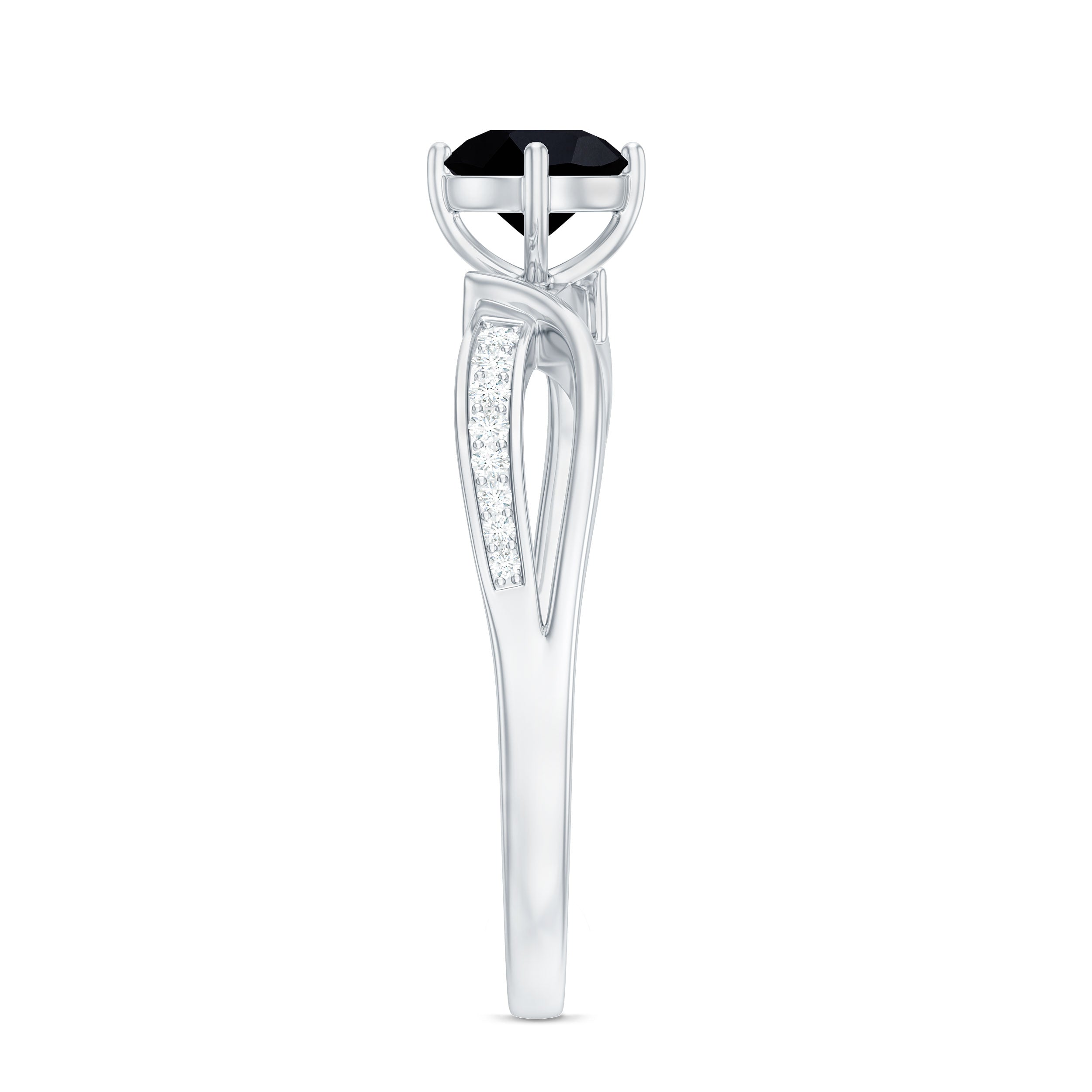 Infinity Shank Round Black Diamond and Diamond Solitaire Engagement Ring