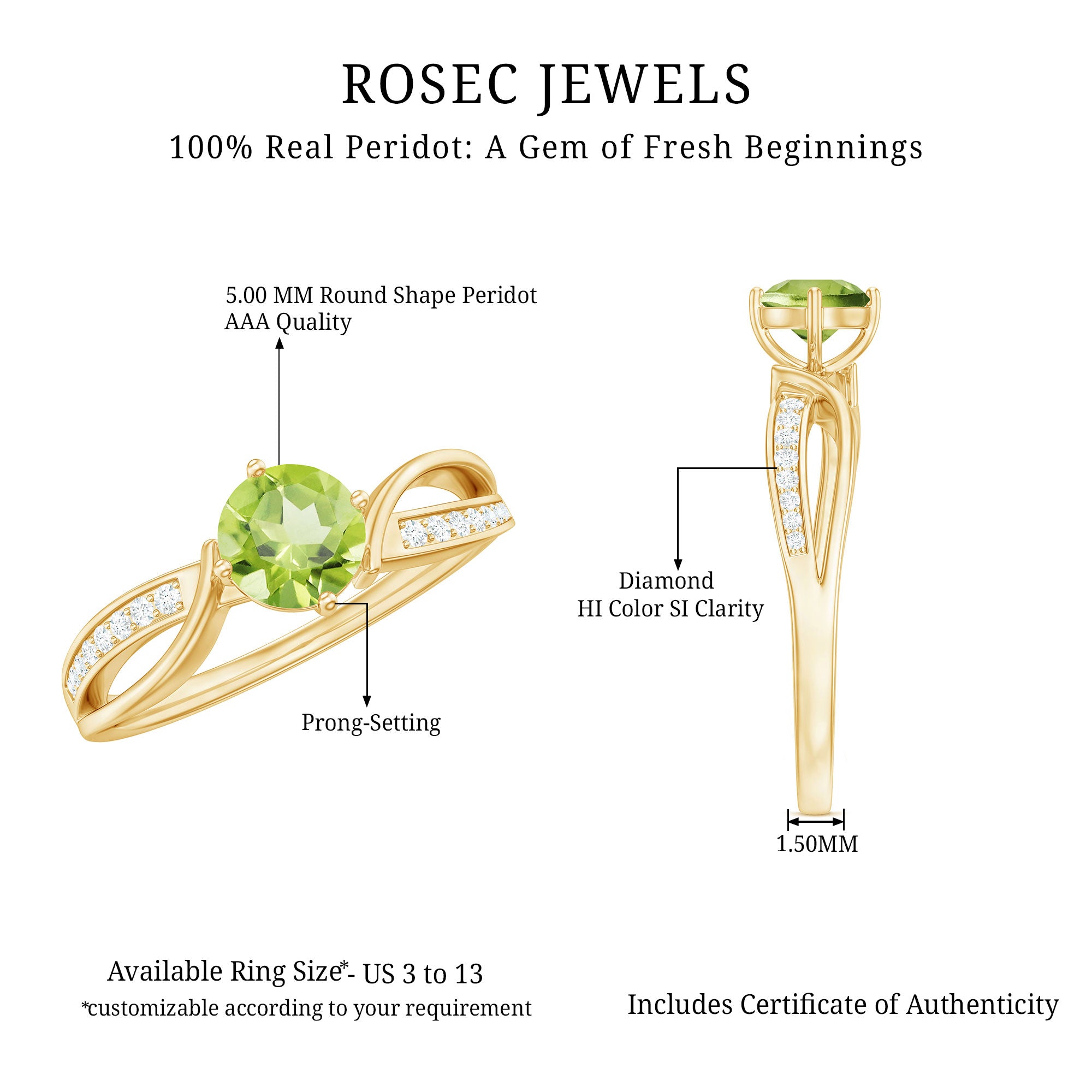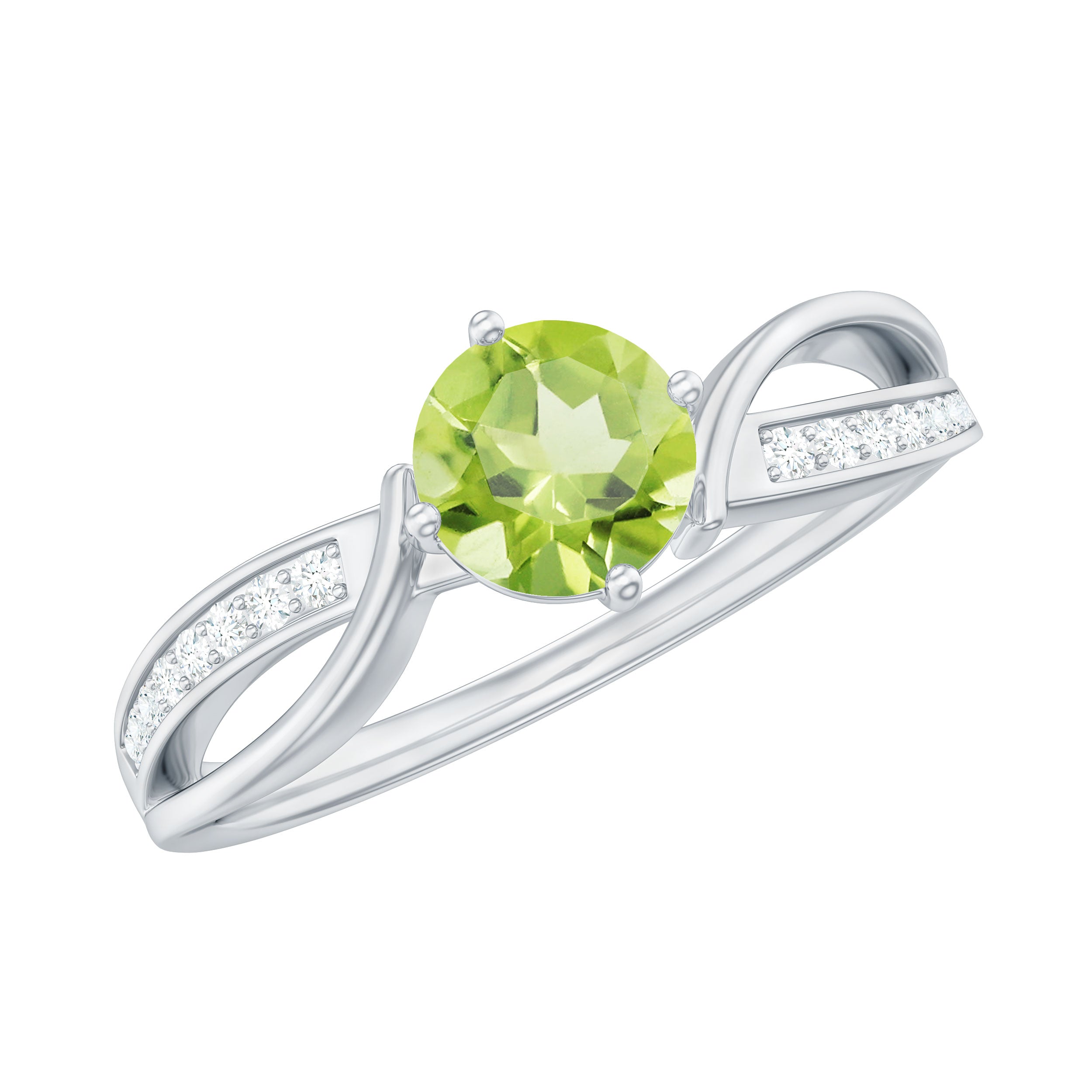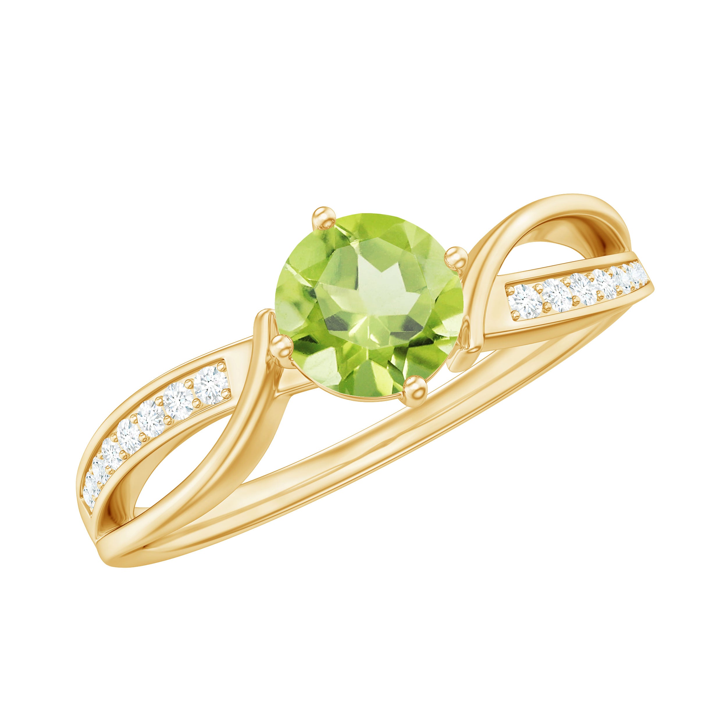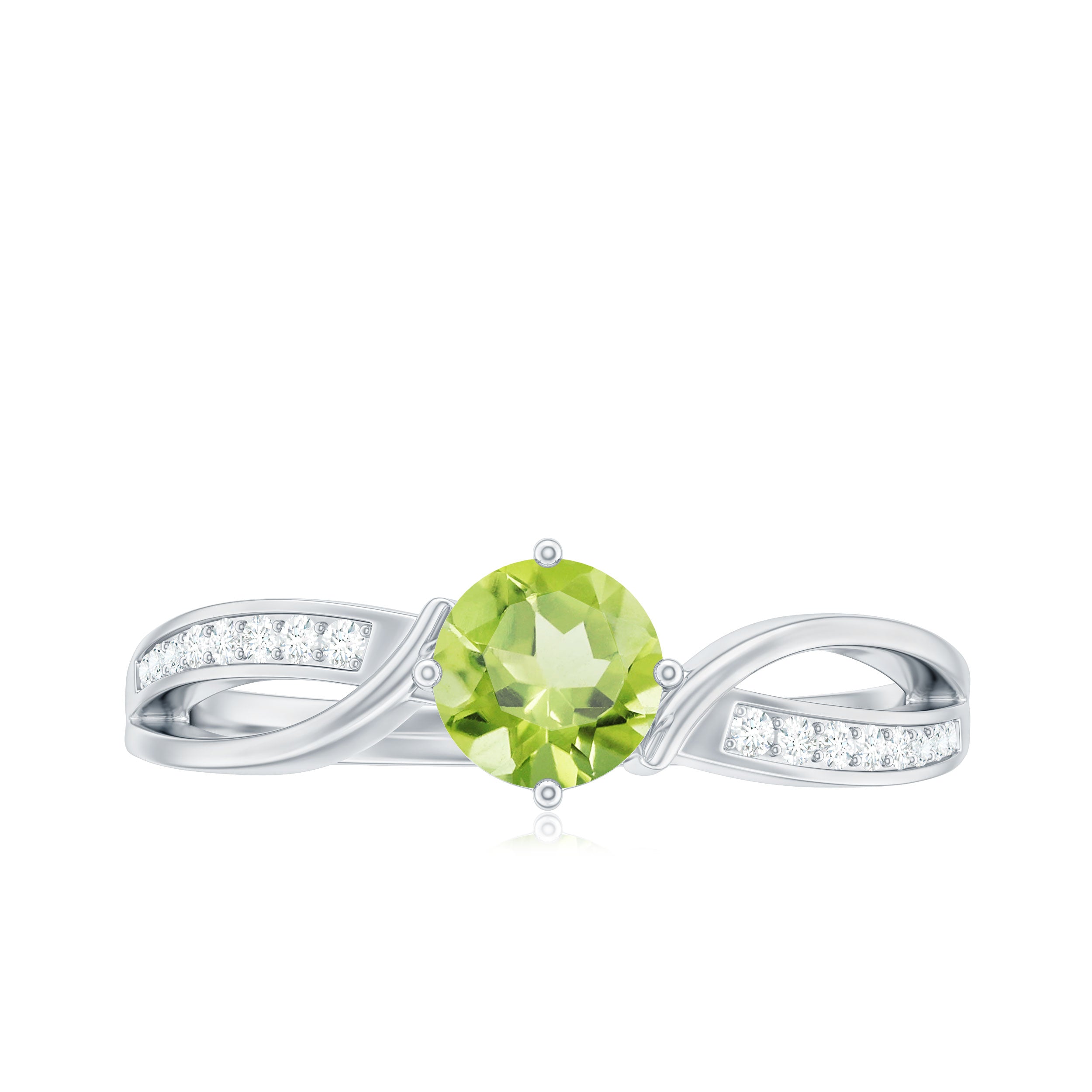 Infinity Shank Round Peridot Engagement Ring with Diamond