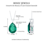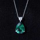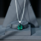 This Lab Grown Emerald Pendant is all you want to complete your look for the special day. The pendant features an 18X13 MM Pear Shape Lab Cultured Emerald of AAAA Quality securely placed in Prong Setting and topped with a heart shape smaller Moissanite of D-VS1 Quality. The Teardrop Pendant Necklace hangs in a silver cable chain, which lets you adjust the length of the necklace as per your style. This Pear Shape Pendant can be presented as a gift for your bride-to-be. The necklace pendant will be delivered to you in a premium quality packaging with the certificate of authenticity.