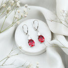 Lab Created 8X10 MM Ruby Moissanite Oval Drop Earrings
