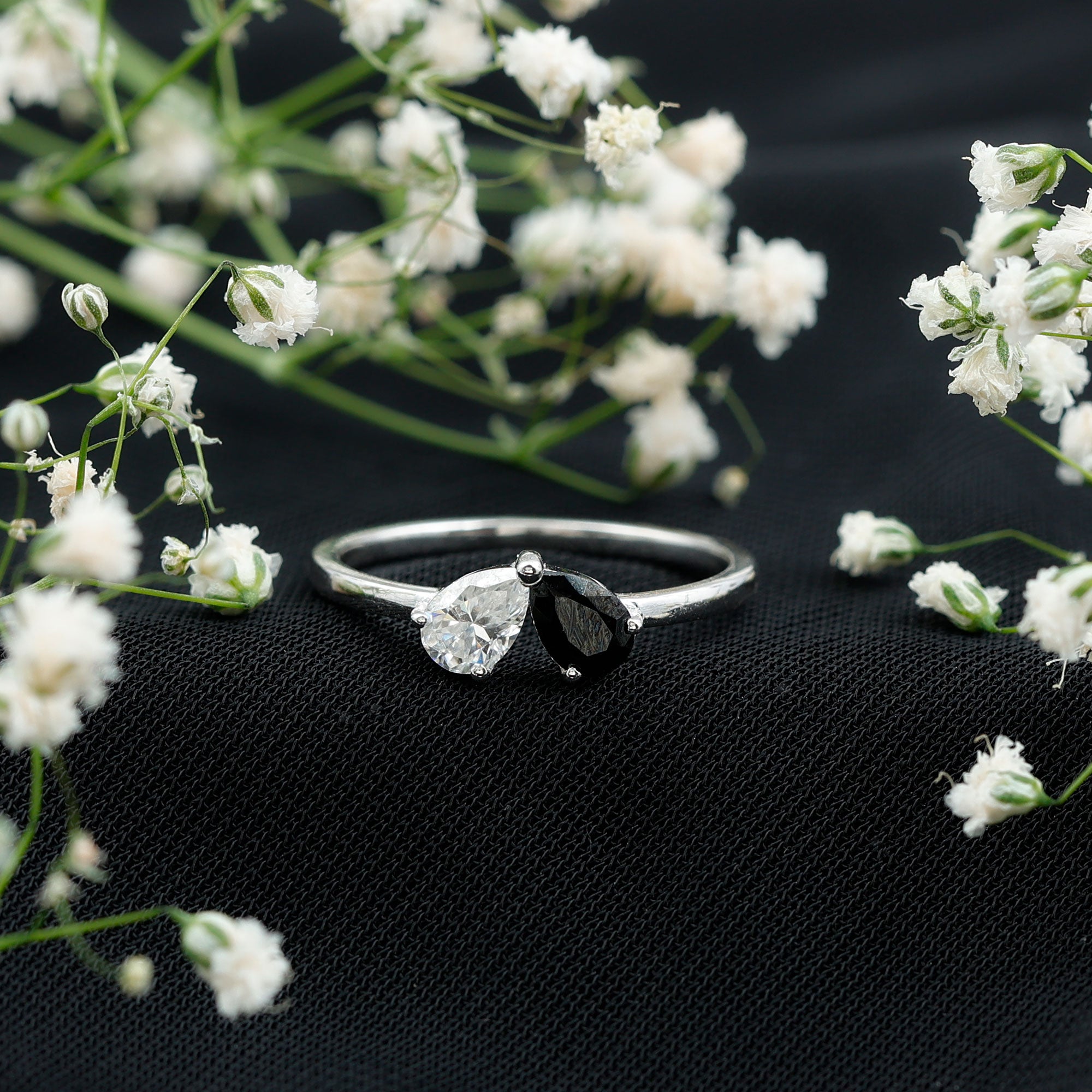Lab Created Black and White Diamond 2 Stone Ring