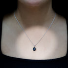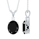 Lab Created Black Diamond Oval Necklace with Silver Chain