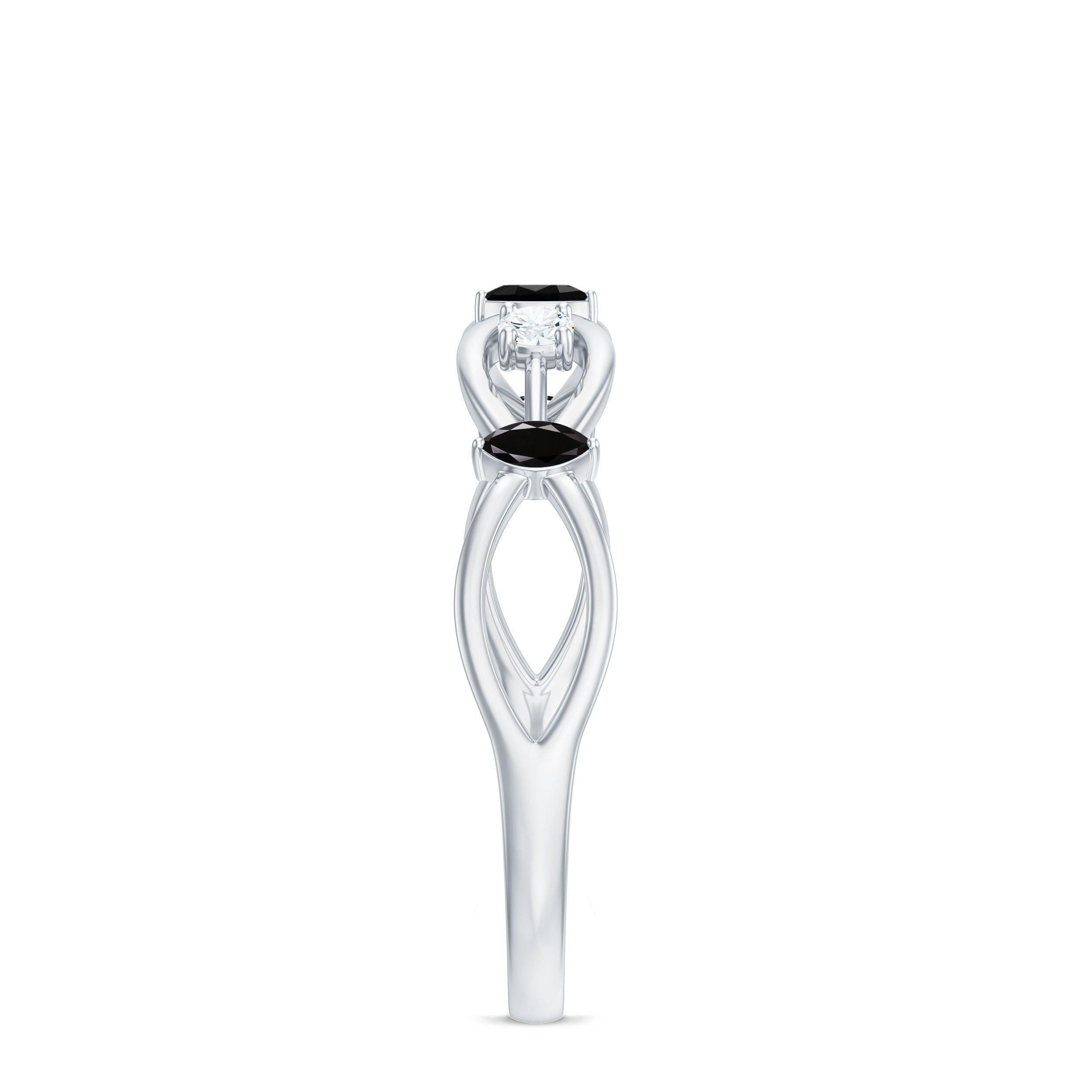 Elevate your style with the classy Created Black Diamond Minimal Promise Band. It features marquise cut lab created Black Diamonds and real white Moissanite on a designer shank. Snag this versatile piece for a hassle-free, simple, and classic look.