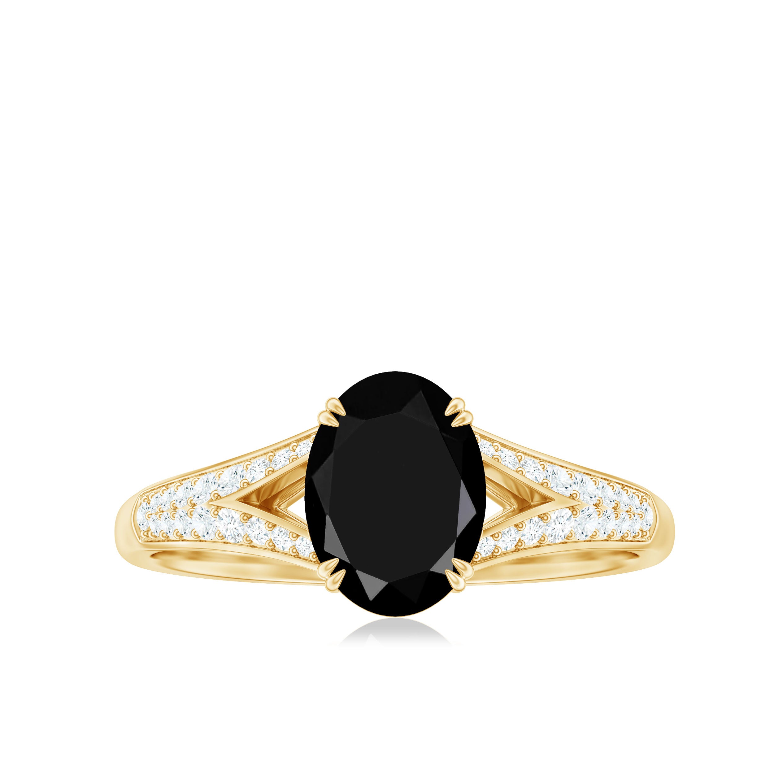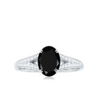 Shine like a beacon of hope with this lab created black diamond solitaire engagement ring with diamond, a symbol of eternal love and commitment. The ring features a 6X8 MM oval-shaped lab created black diamond center stone surrounded by small sparkling diamonds encrusted over a split shank. It is a ring that is meant to be cherished for a lifetime, a reminder of the love that binds two people together.