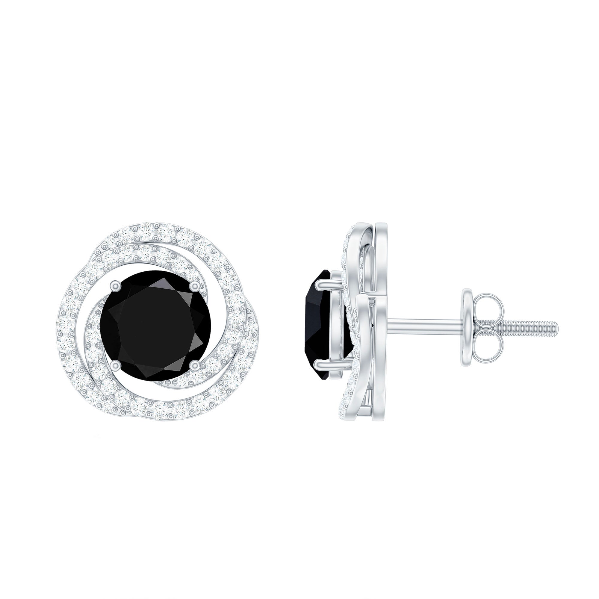 Graceful curves meet timeless sparkle in the Swirl Stud Earrings, a stunning design that brings elegance and sophistication together in perfect harmony. At the center of each earring sits a brilliant 6 MM round shaped lab created black diamond, securely held in prong setting. The center stone is beautifully complemented by delicate rows of shimmering white diamonds that swirl around it in a captivating spiral design. The contrast between the black and white stones creates a striking look that draws attention with every turn of the head. Carefully crafted with fine detailing, these Black and White Diamond Earrings showcase modern beauty while retaining a timeless charm that makes them suitable for both everyday wear and special occasions. Designed with secure screw back closures, the Black Diamond Stud Earrings offer comfort and peace of mind, allowing you to wear them effortlessly throughout the day or evening. Their elegant and bold design makes them an ideal gift for an anniversary, birthday, or any special moment worth remembering.