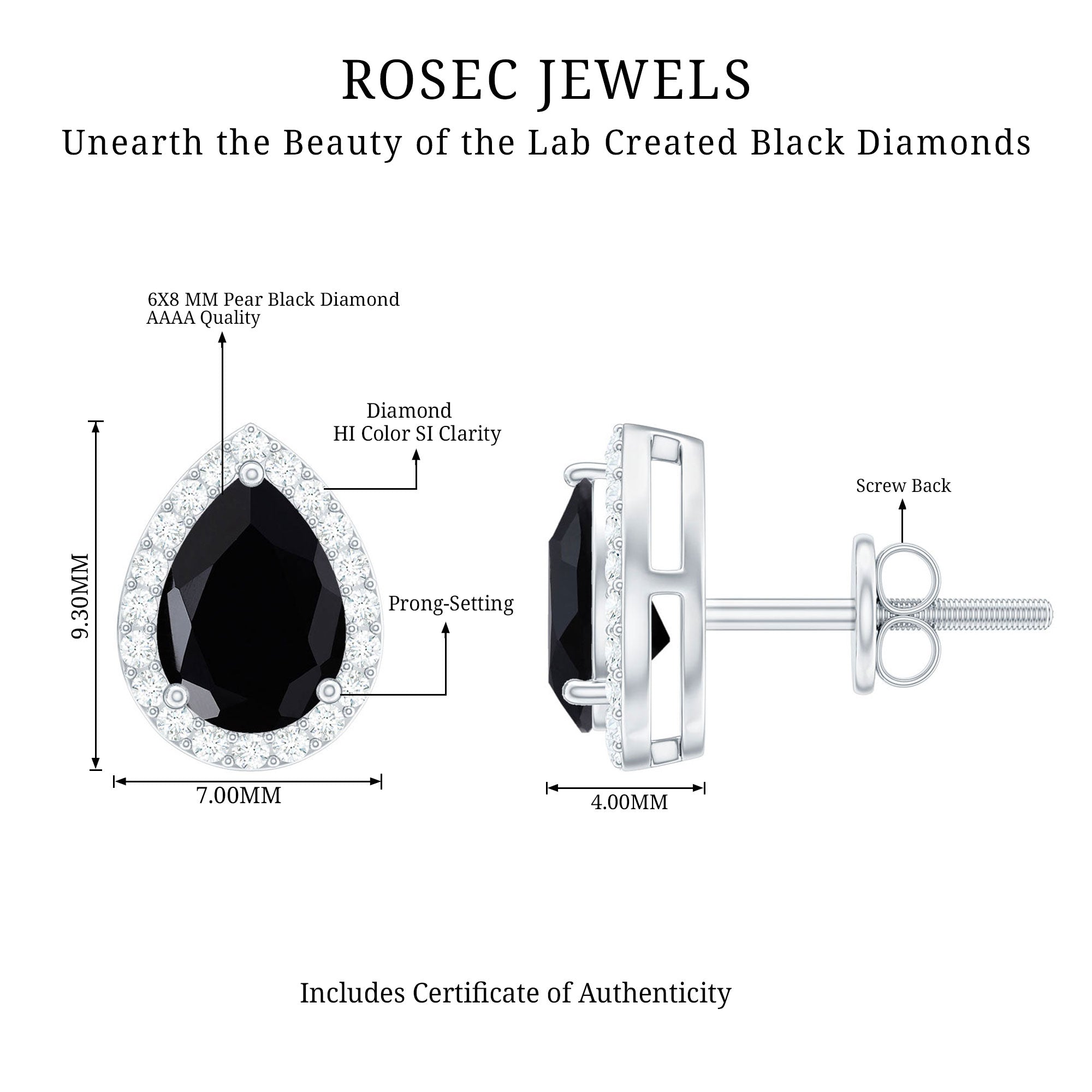 Lab Created Black Diamond Teardrop Stud Earrings with Diamond Halo