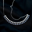 This Lab Grown Blue Sapphire Pendant is the perfect symbol of elegance, which is precisely crafted with 14K White Gold Plated Silver. This Curved Bar Necklace features Princess Cut Synthetic Blue Sapphire and Round Shape Cubic Zirconia secured in Bezel Setting. The pendant dangles with a sturdy cable chain that perfectly makes it sit on the neckline. This Layering Necklace will dazzle with the adorable shine of AAAA quality Synthetic Blue Sapphire and AAAAA Quality Zirconia. This necklace will be delivered to you in a premium quality velvet pouch with a certificate of authenticity.