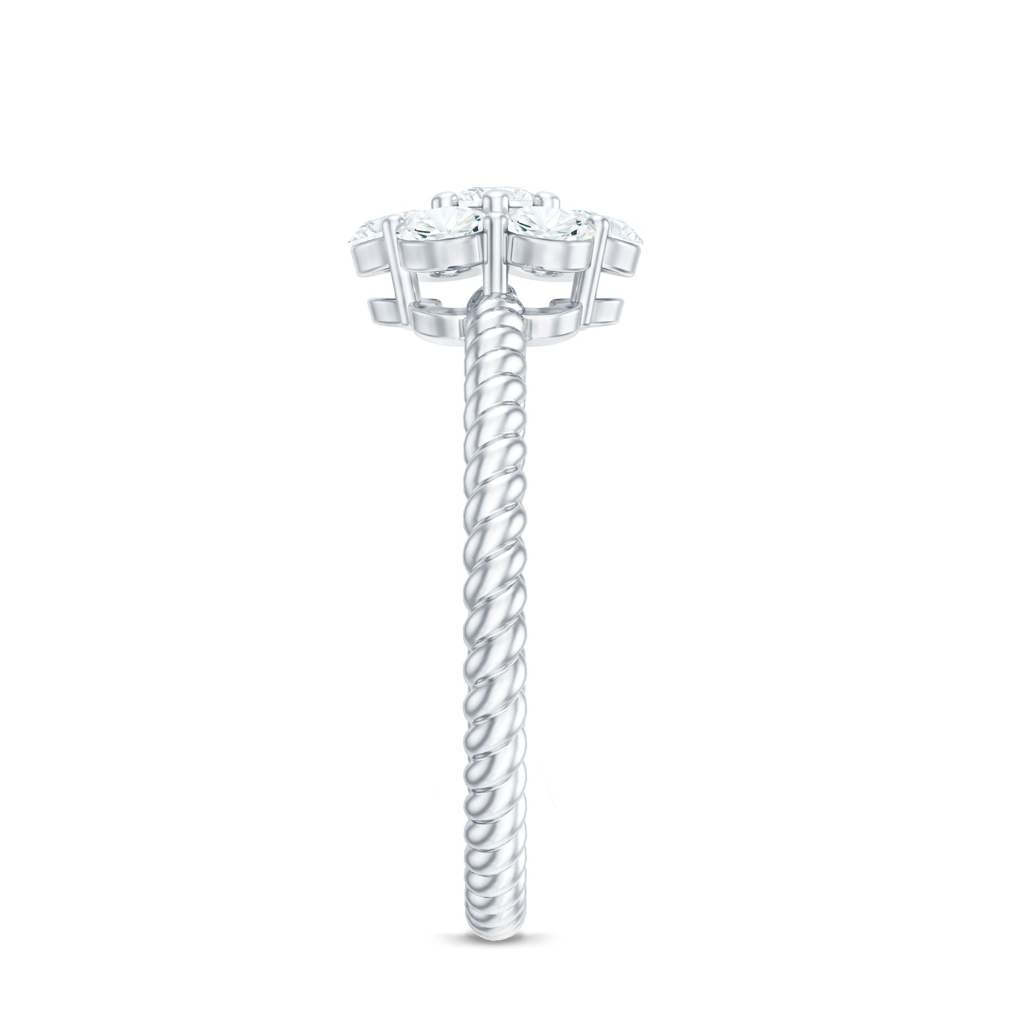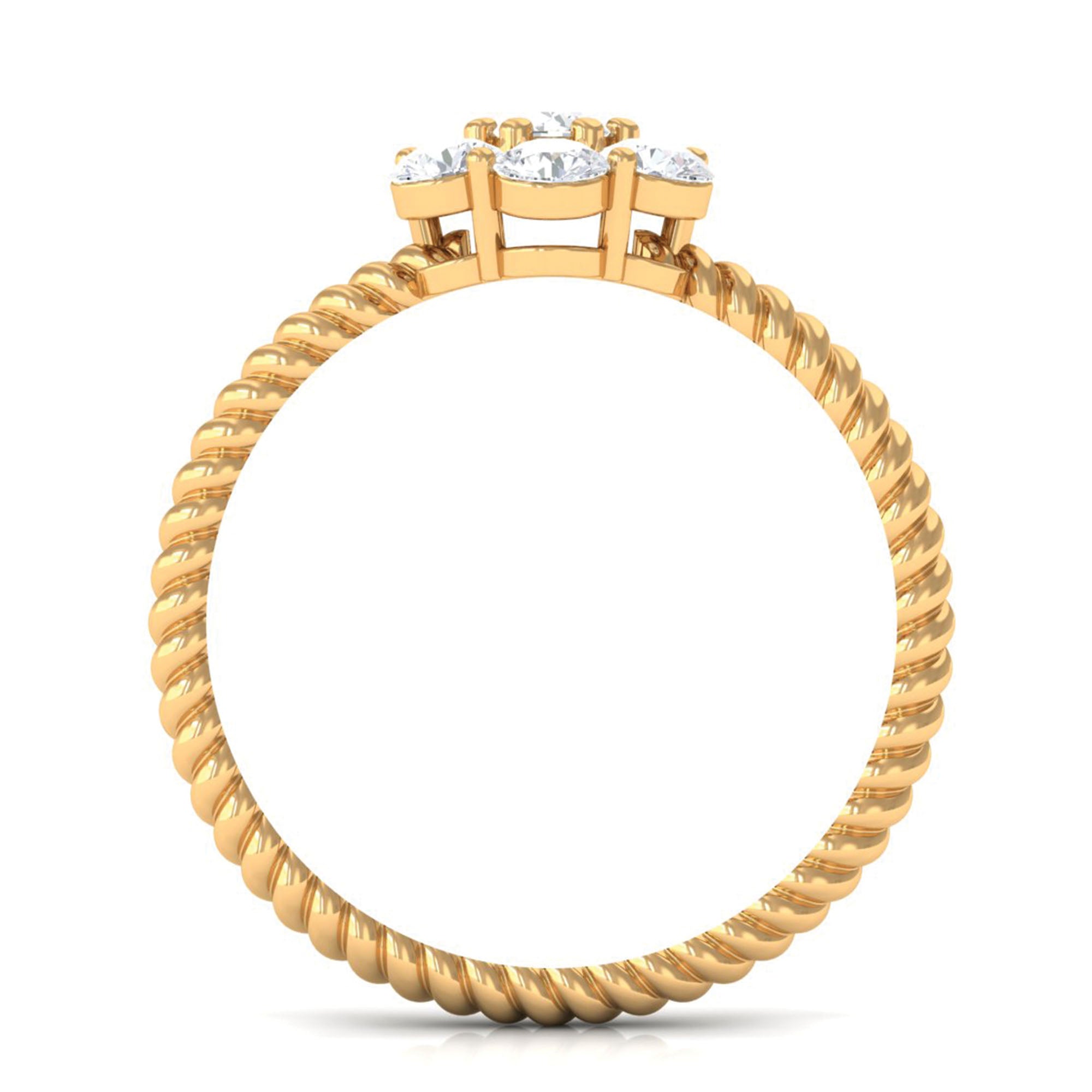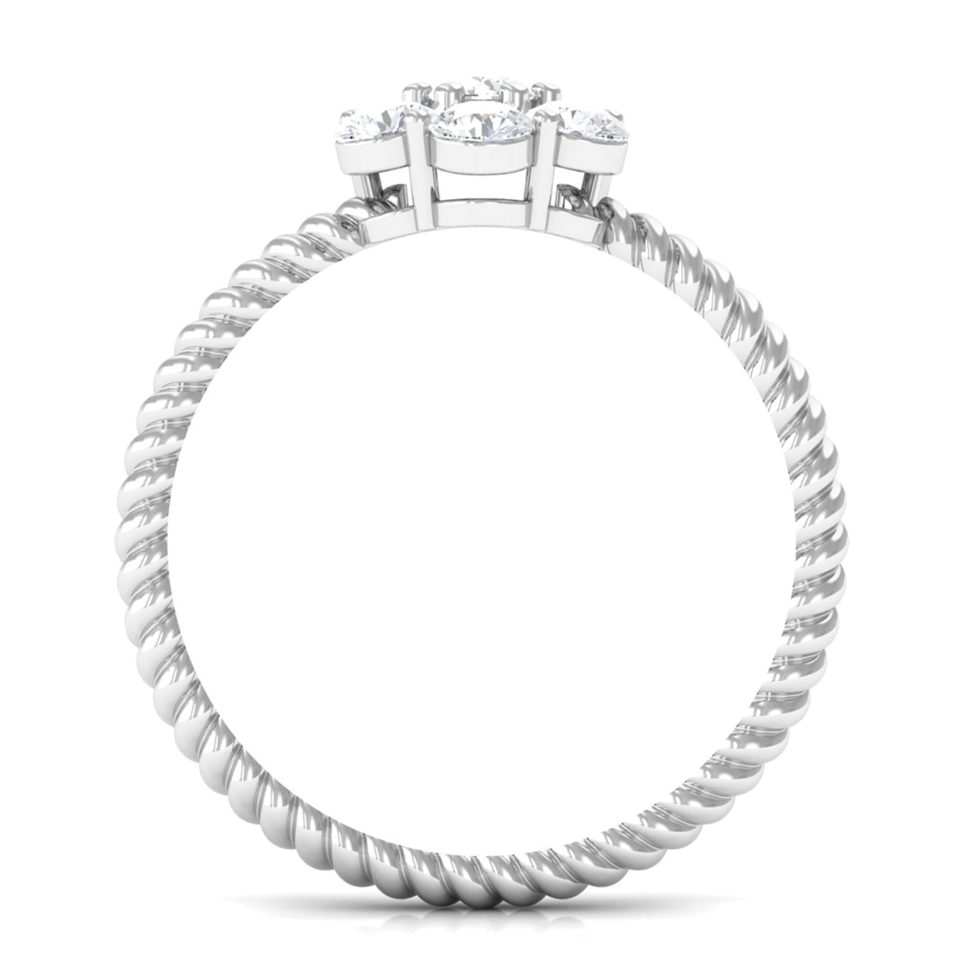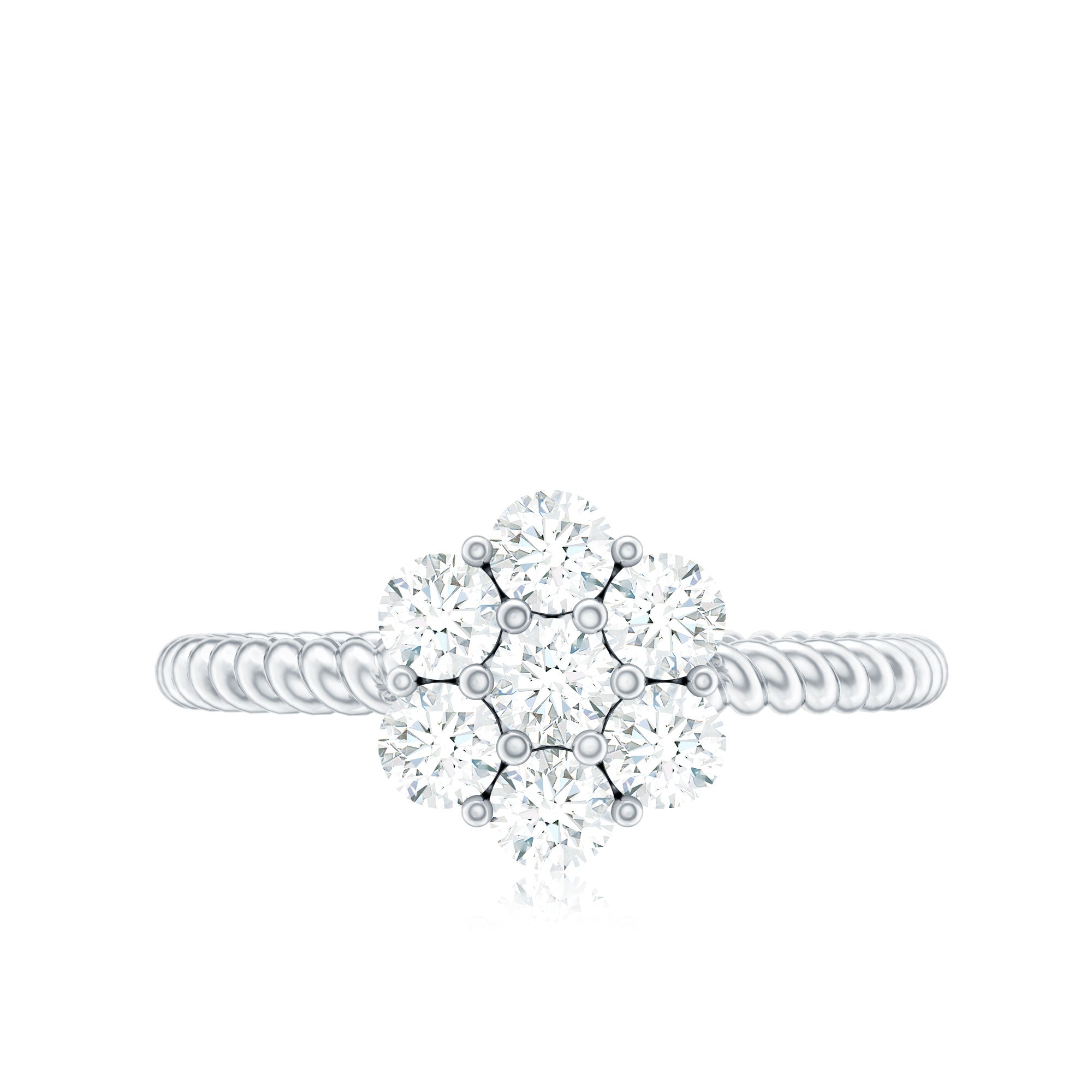 Our Lab Grown Diamond Engagement Ring exudes elegance - it is simple, timeless, and filled with meaning, just like your love for her. This Flower Engagement Ring showcases 3 MM round cut lab-created diamonds arranged in a cluster design that creates a stunning floral pattern. Each stone is meticulously set in prong setting, crafted with both precision and passion. The band of this nature-inspired beauty features a twisted rope-like design, offering a unique perspective from every angle and making it a true designer piece of jewelry. Gift her a flower that will last forever with this gorgeous Diamond Cluster Ring. This nature-inspired ring captures the essence of romance and is an essential jewelry item for anyone who appreciates timeless charm. Snag this Diamond Flower Ring now and let her experience the joy that brings happy tears. The sparkle and brilliance of EF-VS Lab Grown Diamonds are beautifully crafted for those who admire intricate designs. This Lab Created Diamond Ring offers a unique take on the classic engagement ring, drawing inspiration from floral elements. Every gemstone in this Cluster Engagement Ring is lab-grown and comes with a certificate of authenticity, ensuring you have complete peace of mind with your purchase.