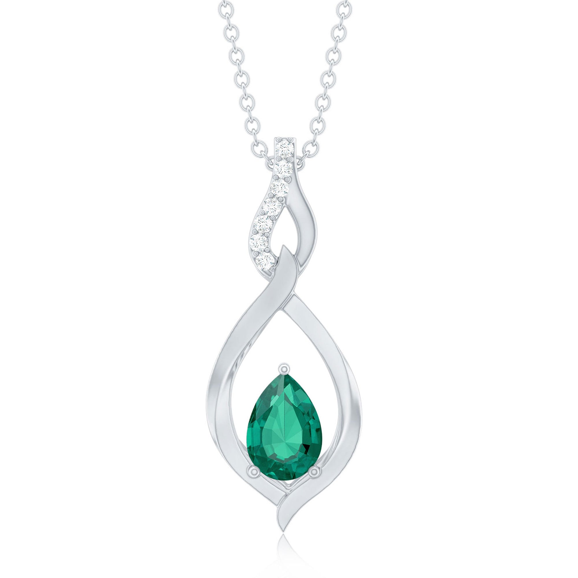This Lab Grown Emerald Necklace showcases a stunning color and shine. Crafted from gold plated silver, this Infinity Symbol Necklace symbolizes love and enduring connections, making it a truly exceptional piece of jewelry for someone dear to you. It features a lovely 5X7 MM pear-shaped lab-created emerald gemstone set in prong setting, framed by an infinity sign adorned with a hint of round cut moissanite stones, adding just the right amount of sparkle. It is a classic and eye-catching accessory, reflecting elegance with its incredible brilliance and vibrant hue that glimmers with every ray of light. Suspended from a simple yet durable chain, this Wedding Necklace for Bride is both versatile and breathtaking, resting beautifully on your neckline. This Emerald Drop Pendant is understated enough for daily wear, yet special enough to be cherished for a lifetime. Incorporate this Green Gem Necklace into your everyday outfit and select a piece of jewelry that holds significance for you and remains with you throughout your life. Like a true and everlasting love, it is carefully crafted to embody a sophisticated style that captures the essence of romance.