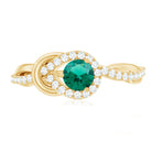 Let your love know no bounds with our Minimal Emerald Ring (Lab Cultured Emerald), where timeless elegance meets infinite affection. This exquisite Infinity Ring features a 6 mm Round Shaped Lab Created Emerald at its core, embraced by a dazzling array of Round Synthetic Diamonds that amplify its beauty. Its not just jewelry; its a captivating expression of the heart. The mesmerizing green hue of Aaaa Quality Emerald and Ef-Vs Quality Diamond adds sparkle to this Knot ring making it a cherished adornment on her fingers. At Rosec Jewels, we excel in crafting breathtaking Lab Grown Gemstone pieces that illuminate your world with love and sophistication.