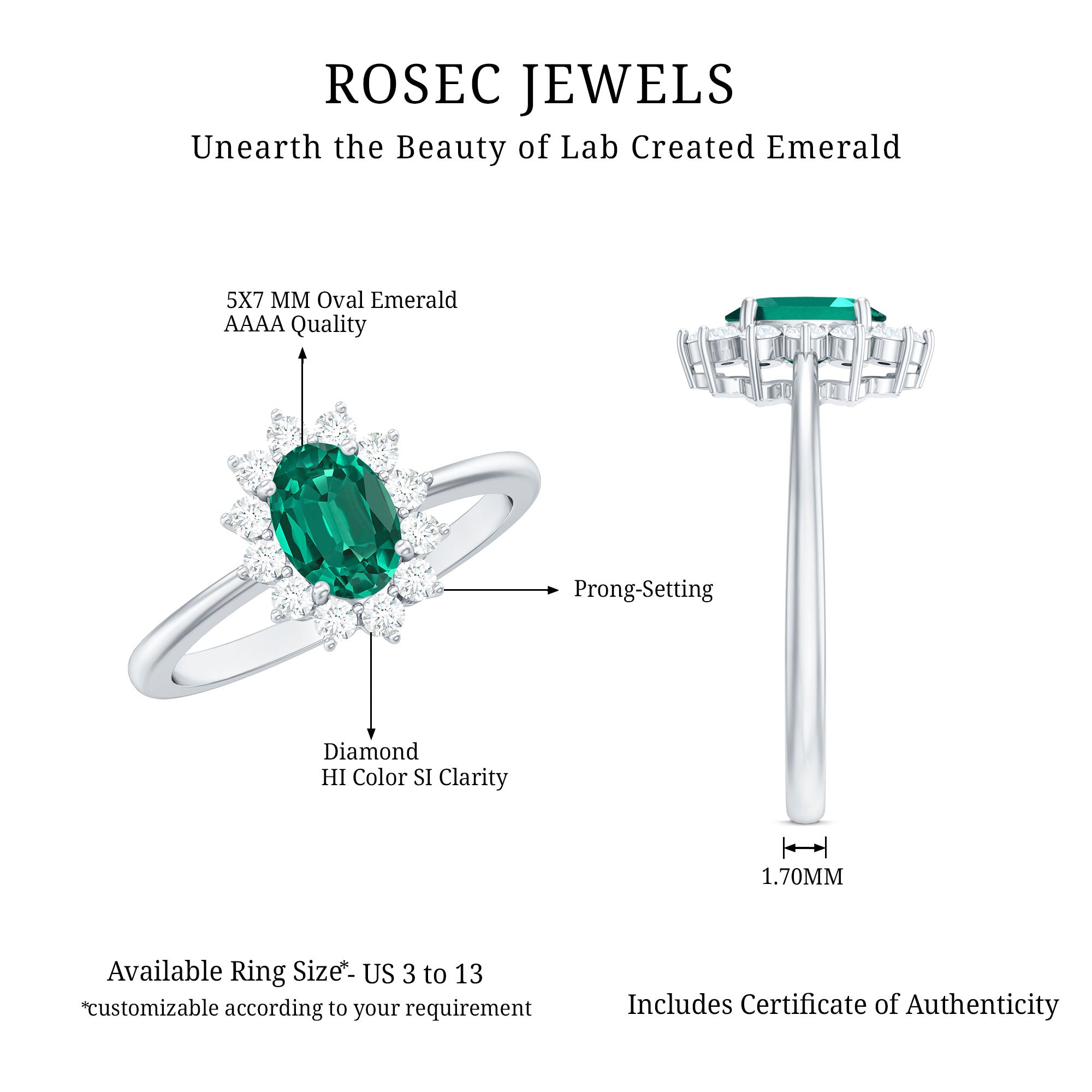 Lab created emerald is produced without traditional mining. As with all lab-created gemstones, environmental impact can vary depending on production processes and energy sources.