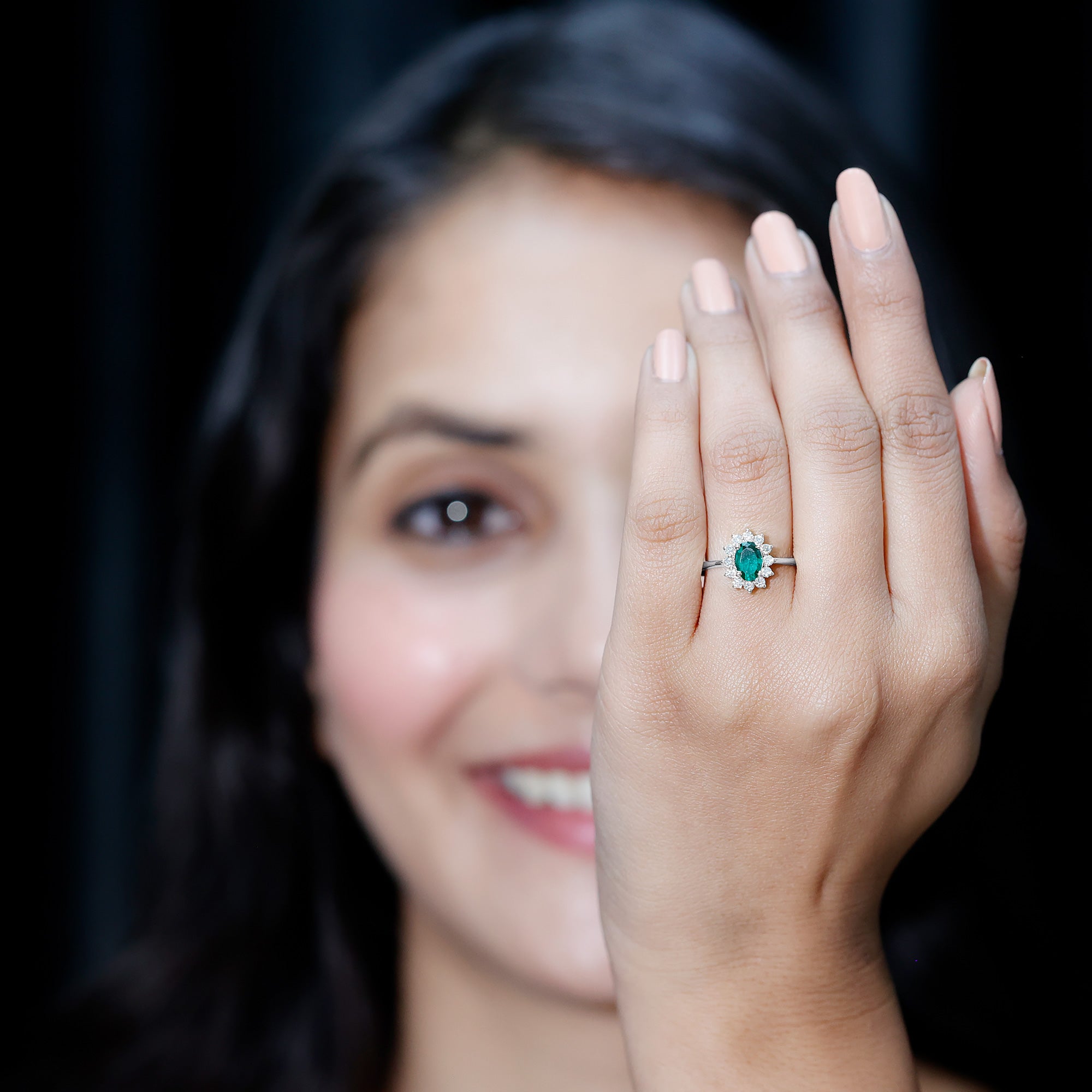 A Timeless Emerald Engagement Ring with Diamond Halo