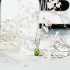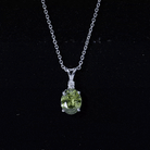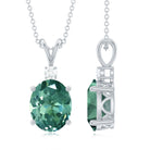 Lab Created Oval Shaped Green Sapphire Solitaire Pendant Necklace